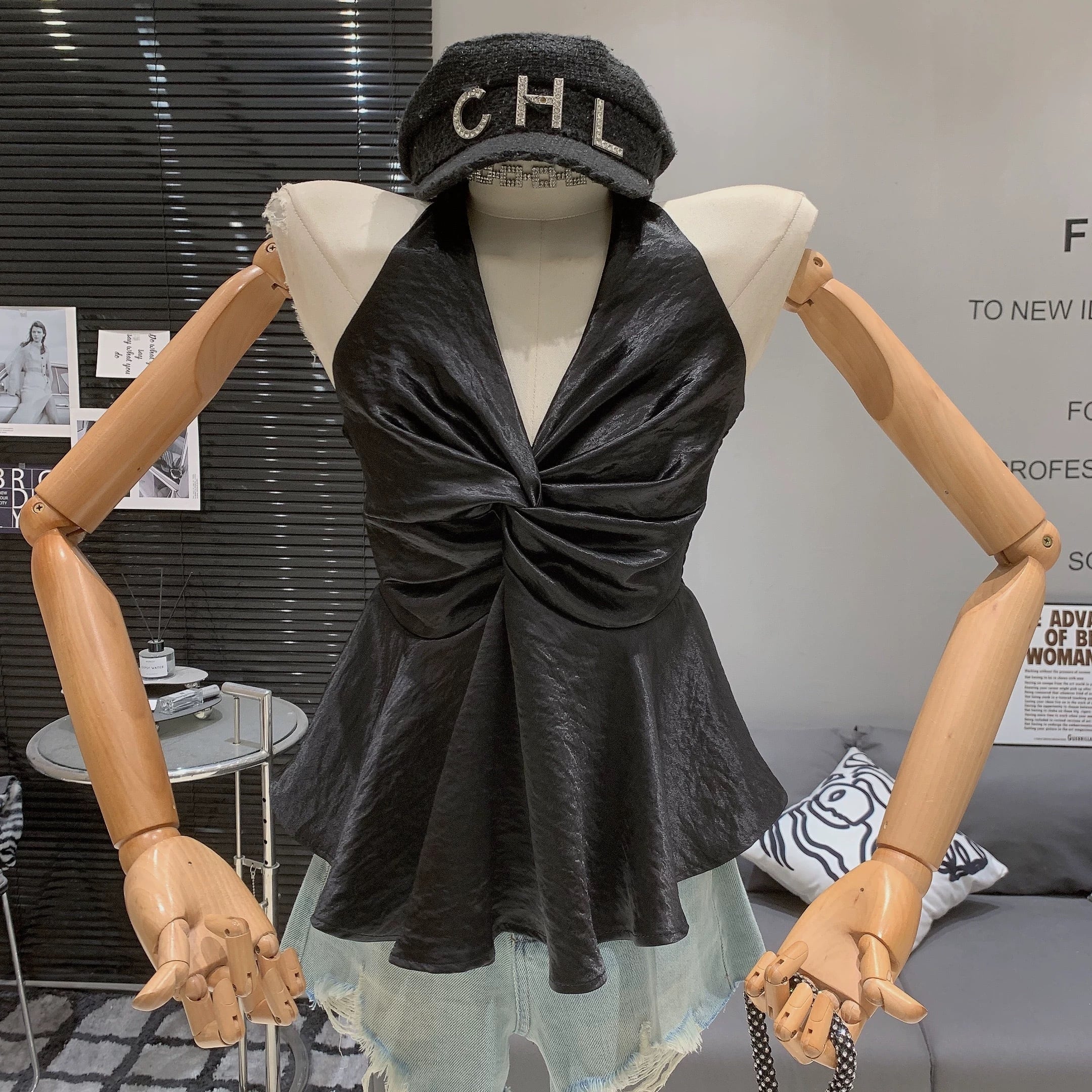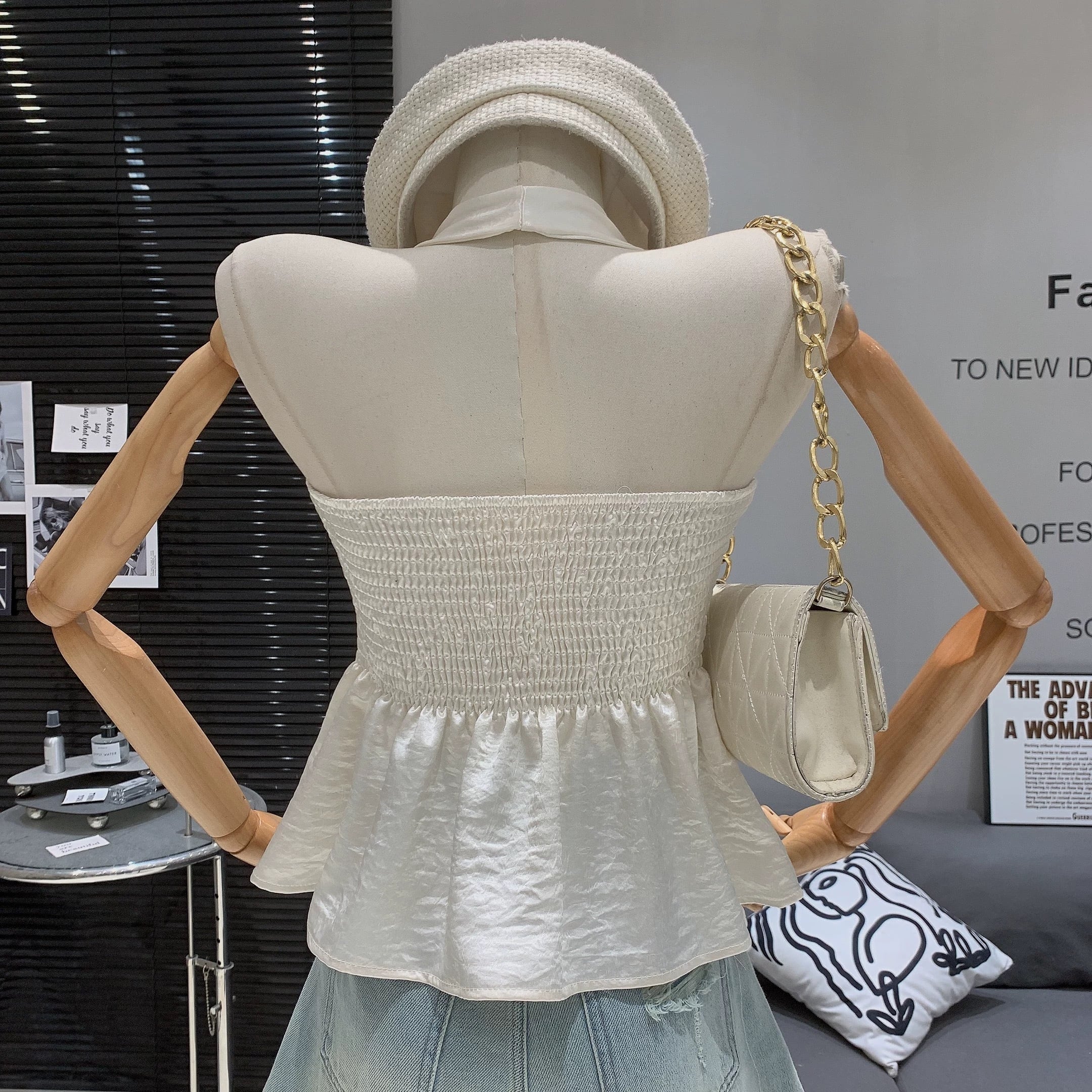 【tops】バックシャーリングぺプラムトップス2色 RK3003