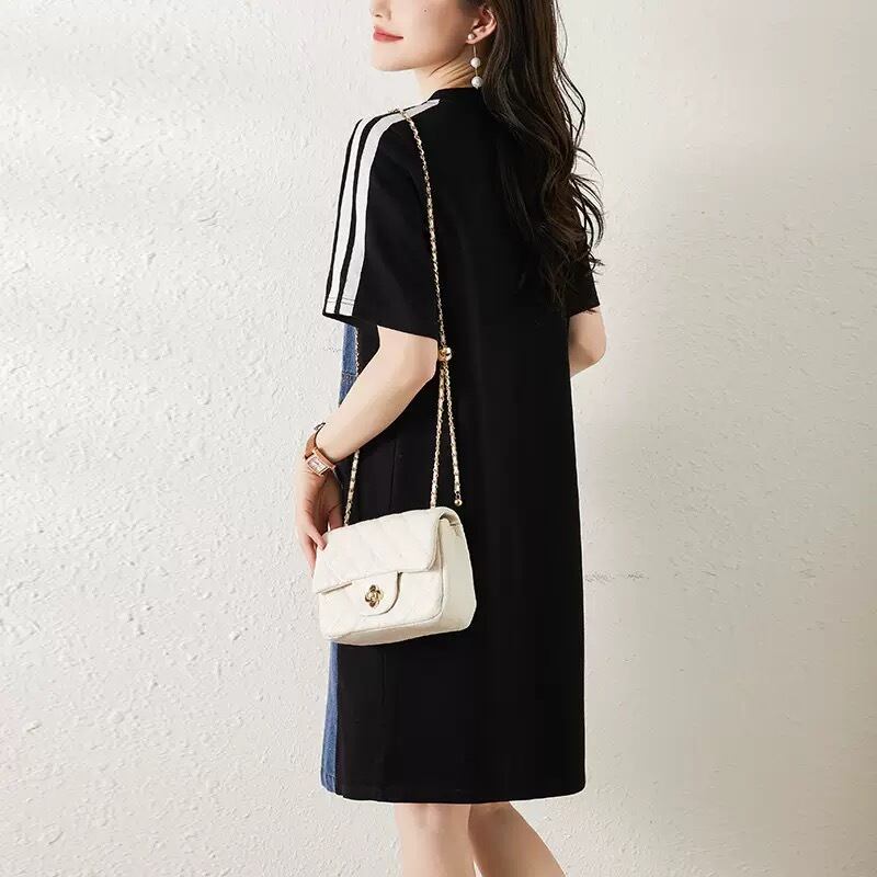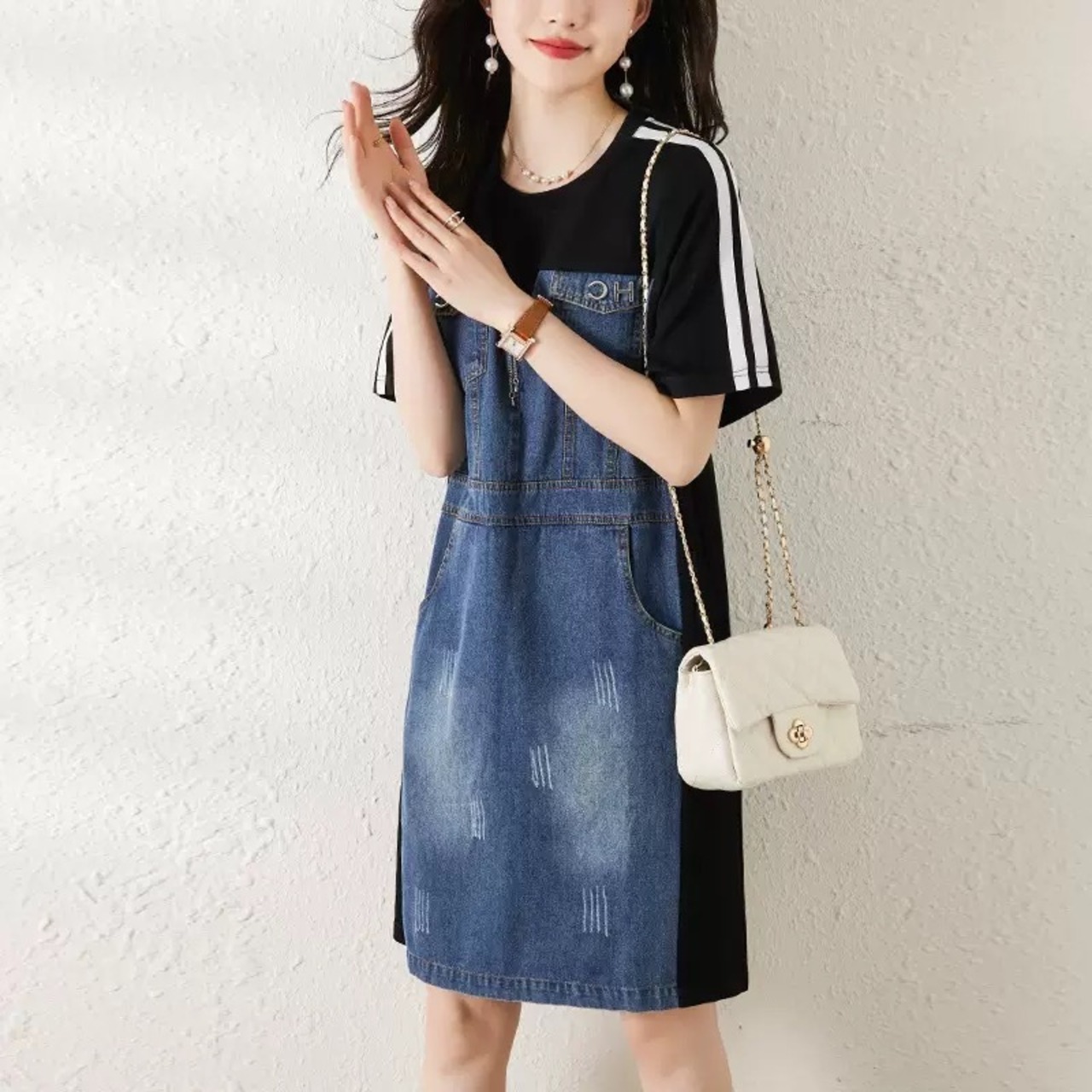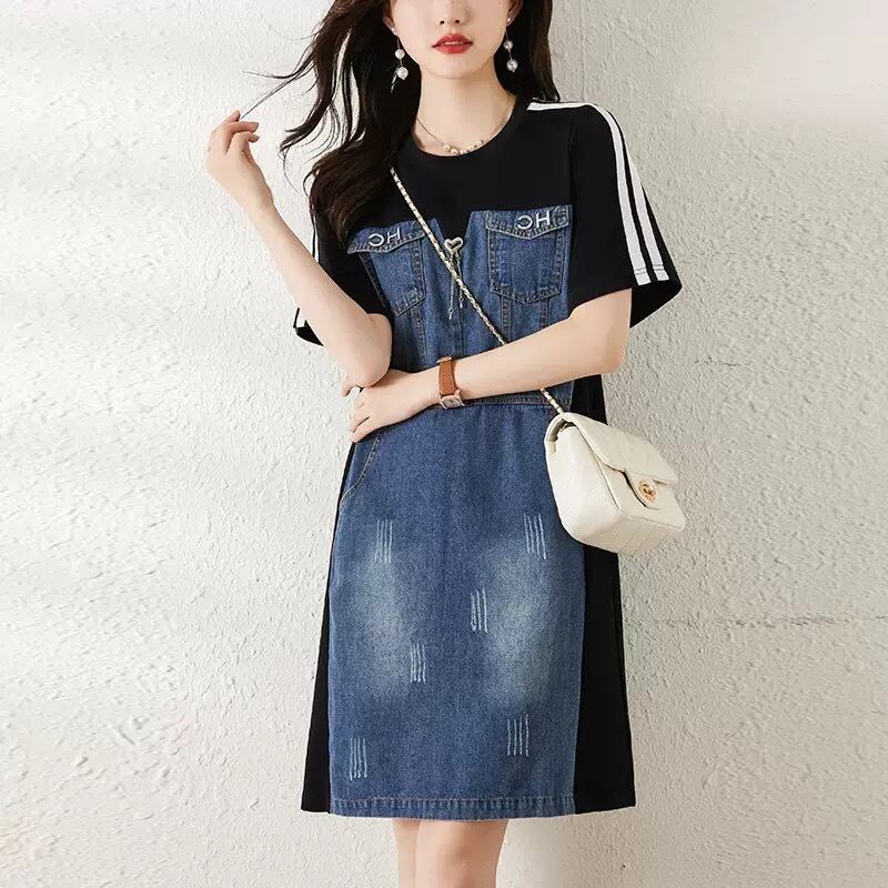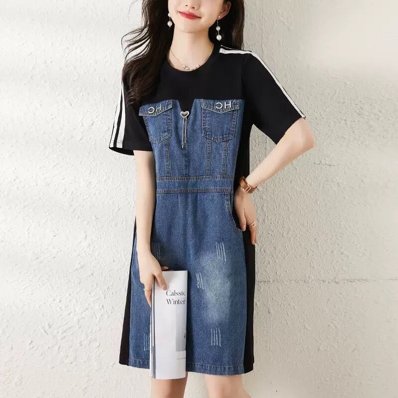 【dress】M〜2XLデニムドッキングワンピース RK0401