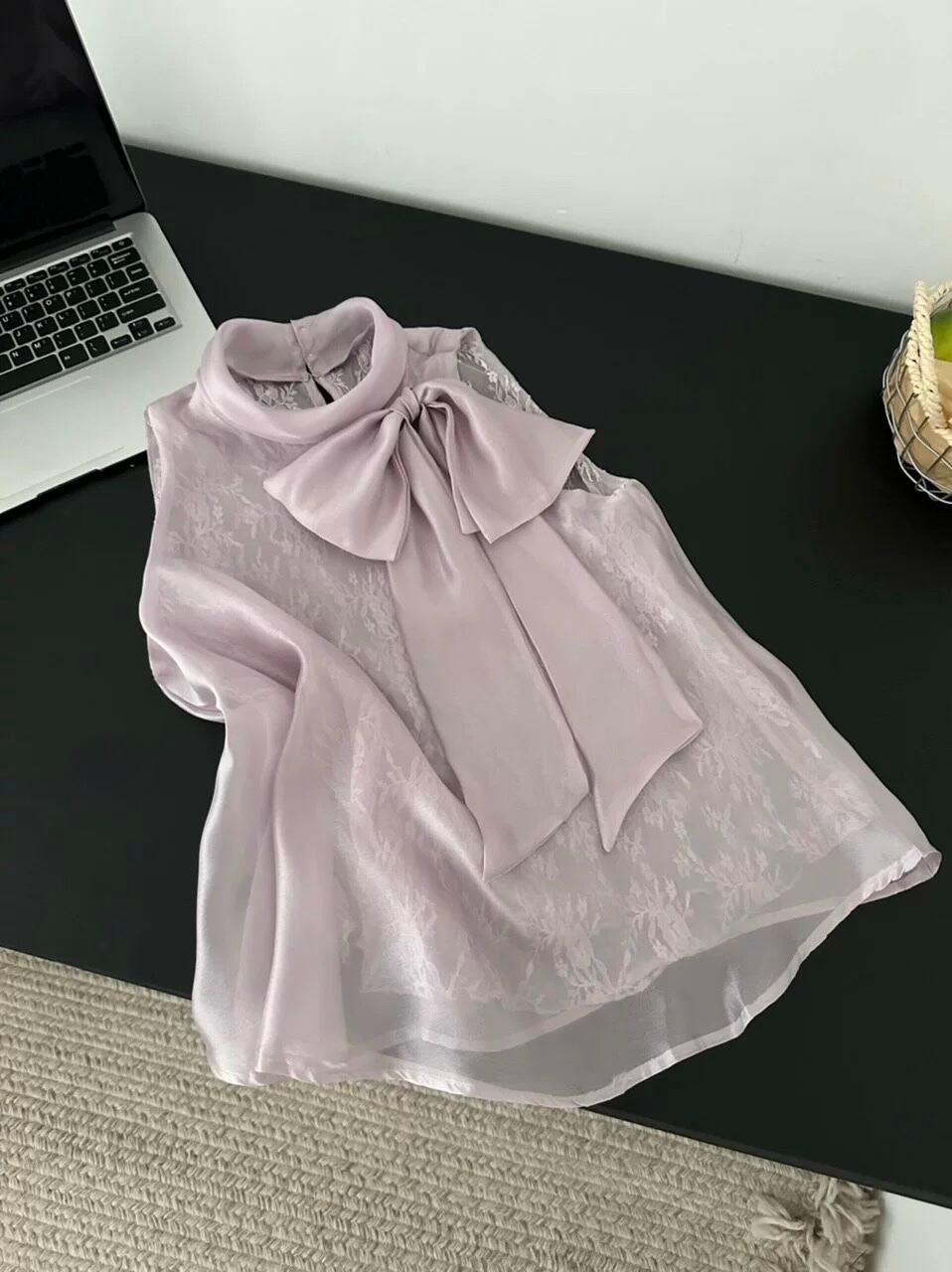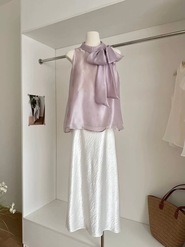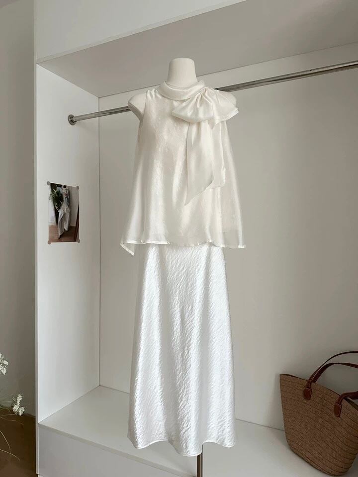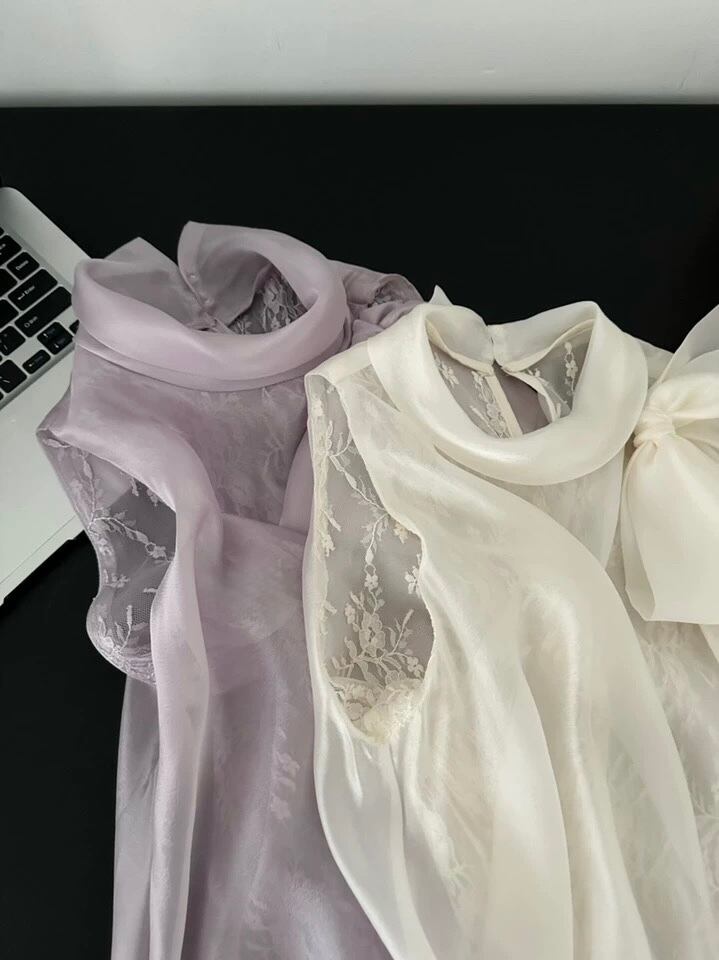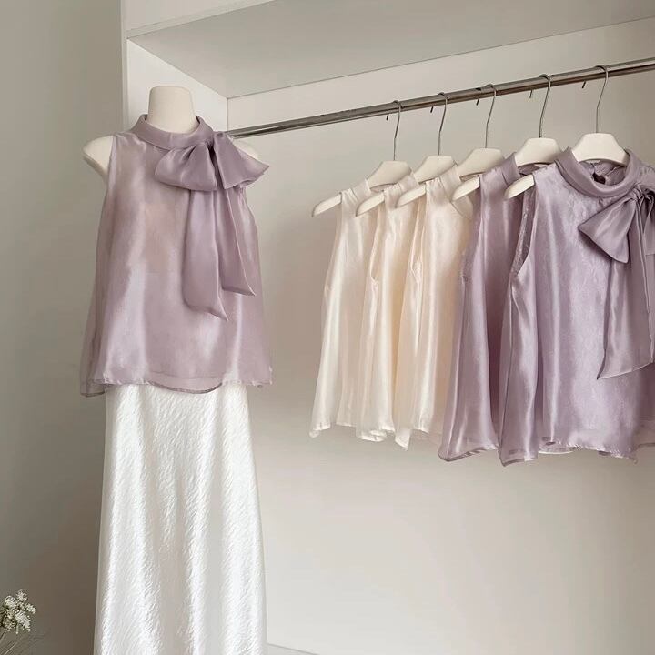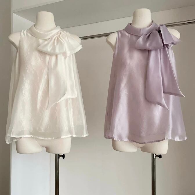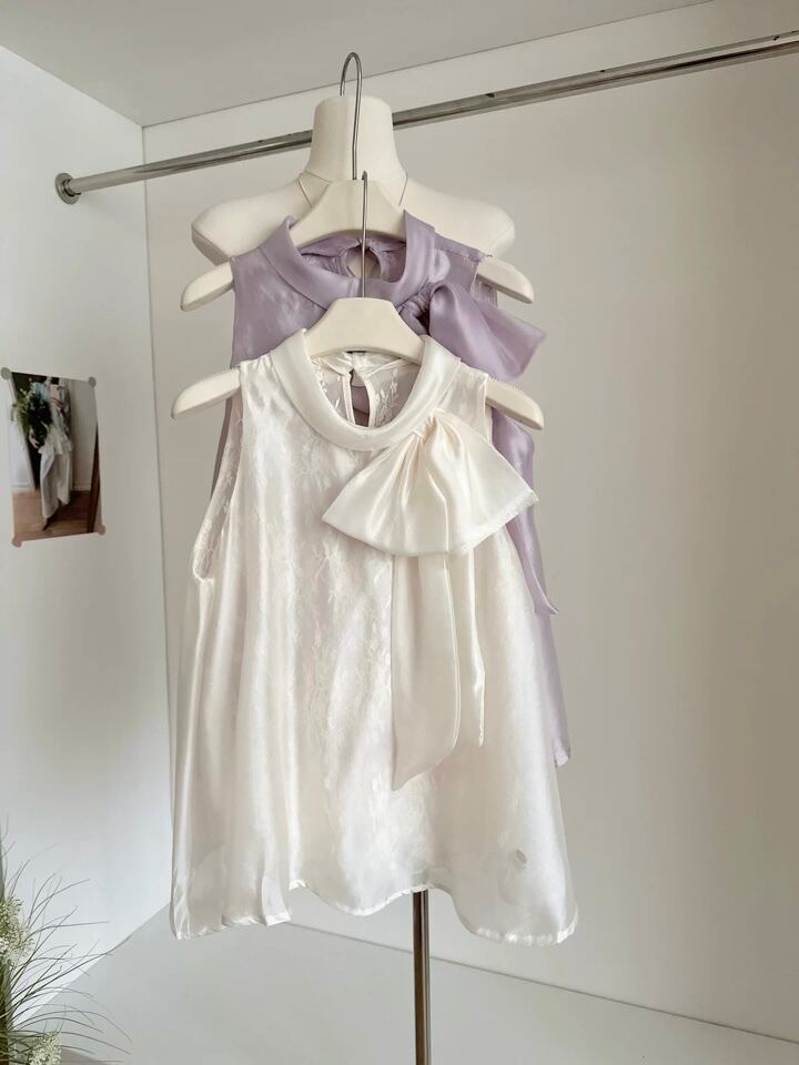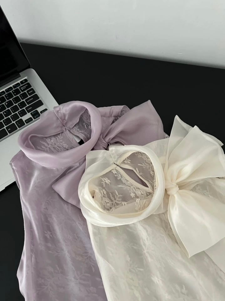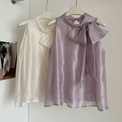 【tops】レースボウタイノースリーブトップス2色 HB8055
