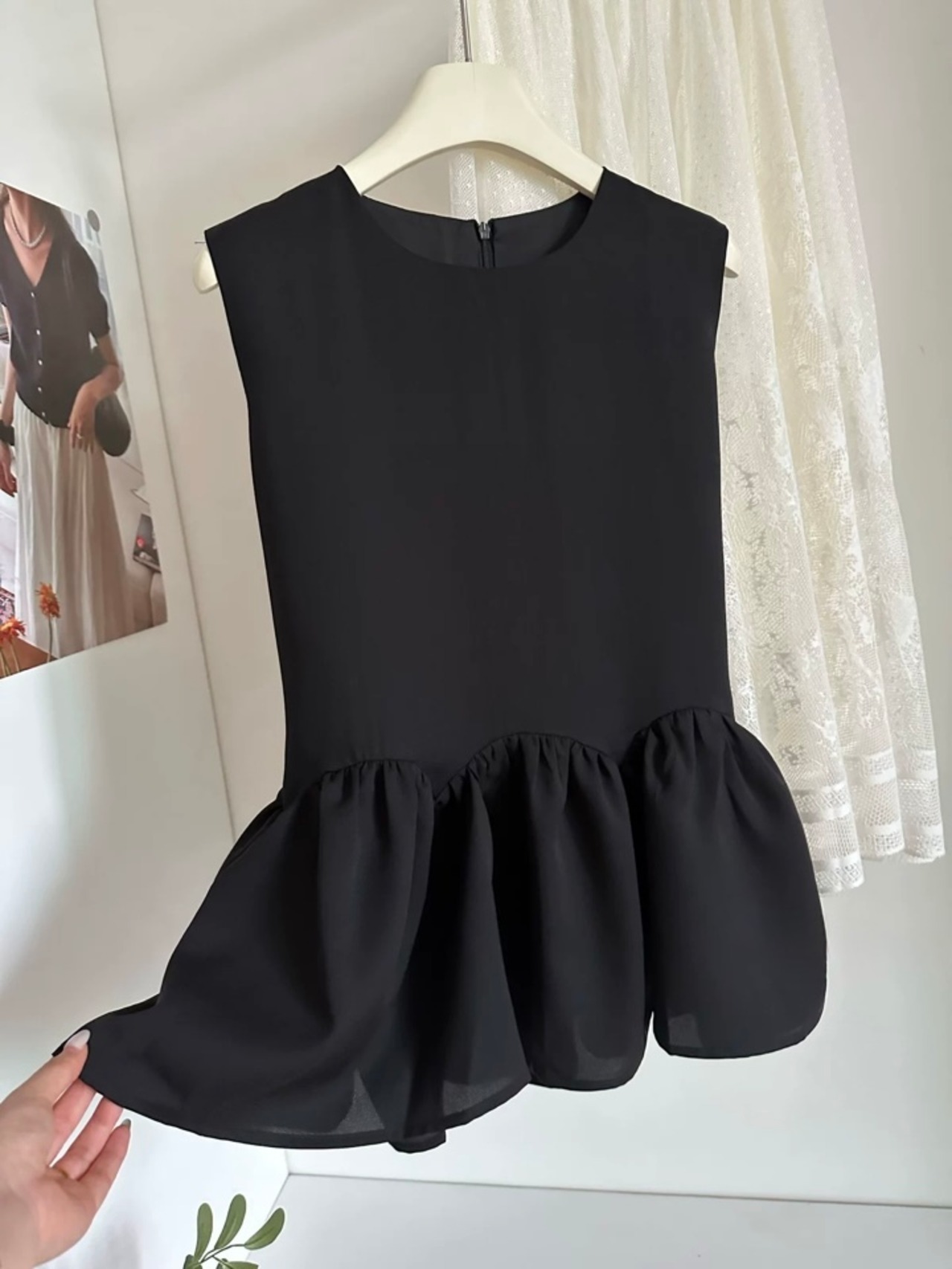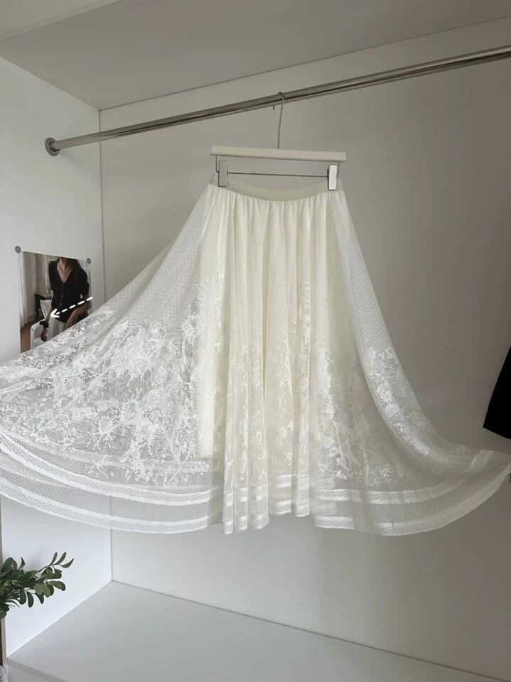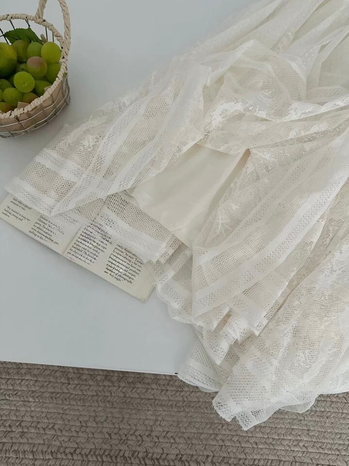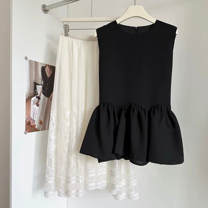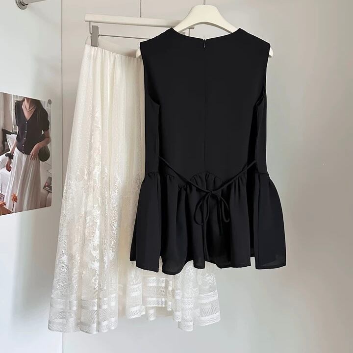 【set】単品注文可フレアノースリーブトップスxレーススカート HB8058