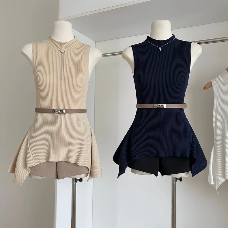 【tops】ベスト付きニットノースリーブトップス3色 HB8060