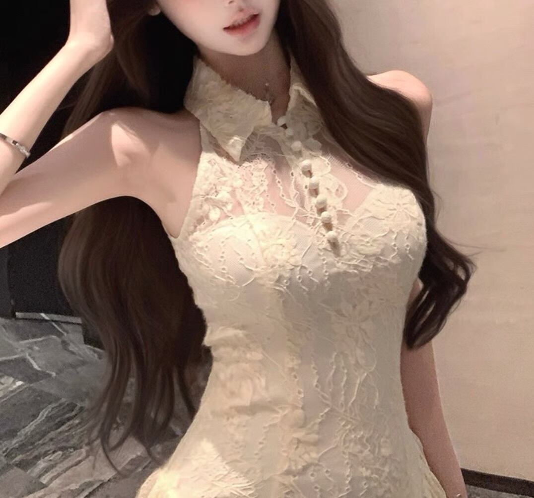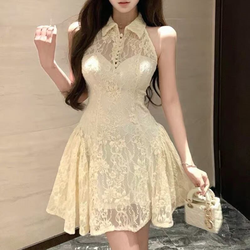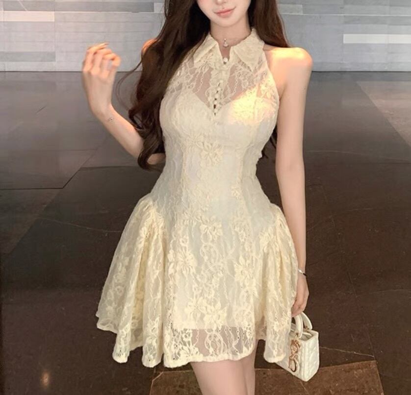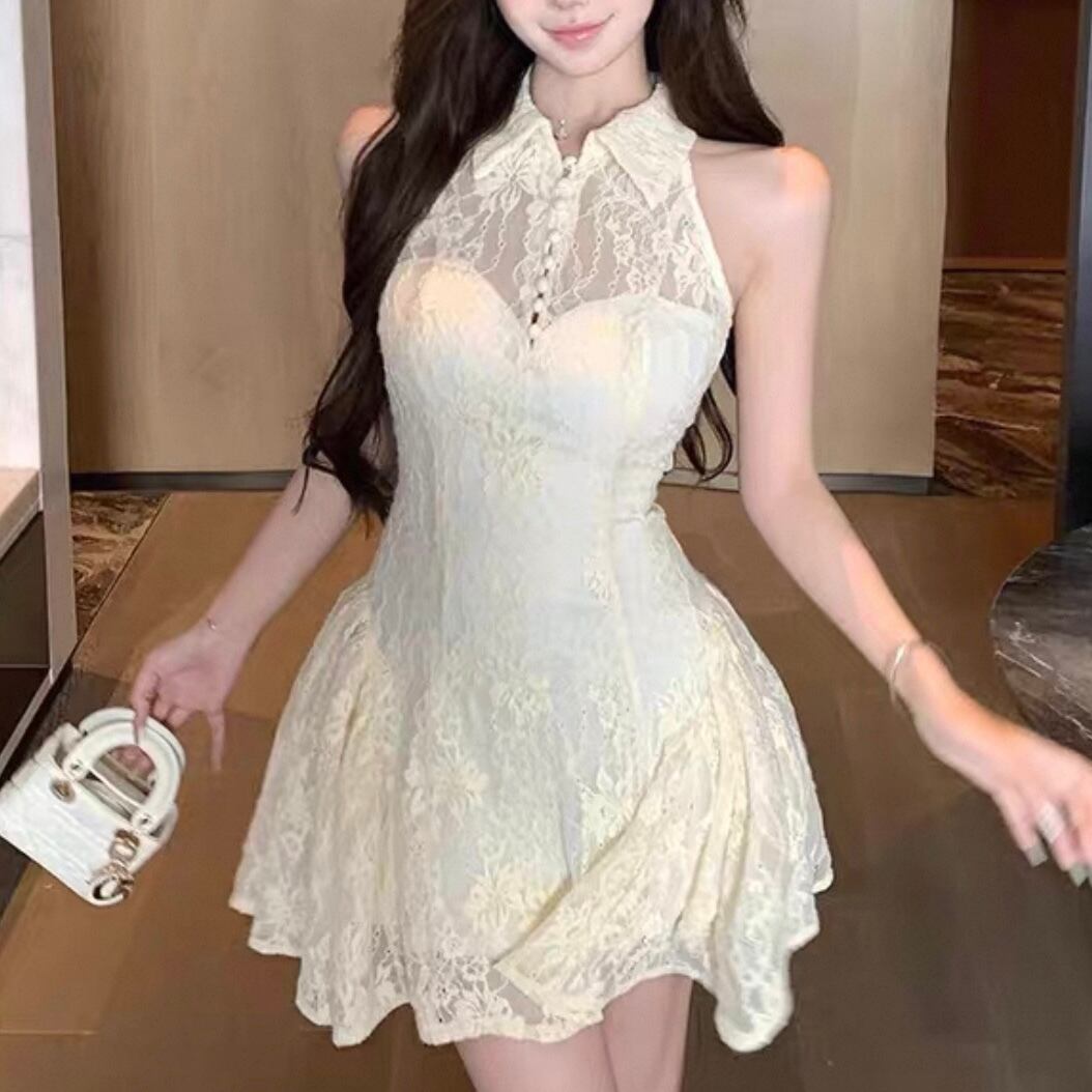 【dress】襟付きレースフレアワンピース HK0183
