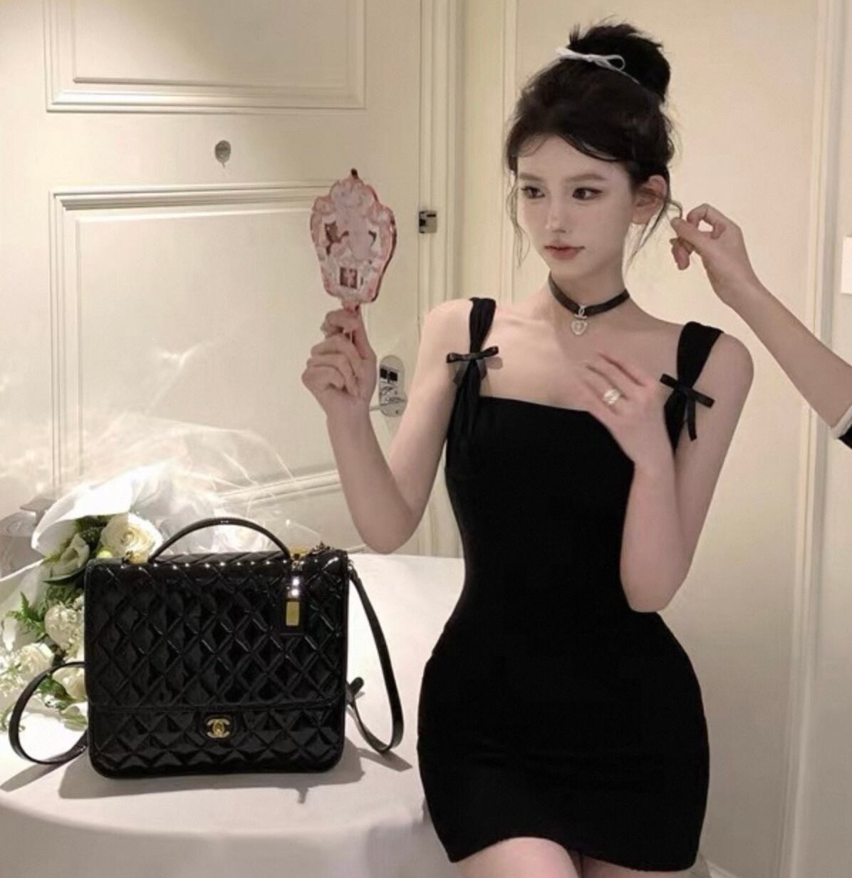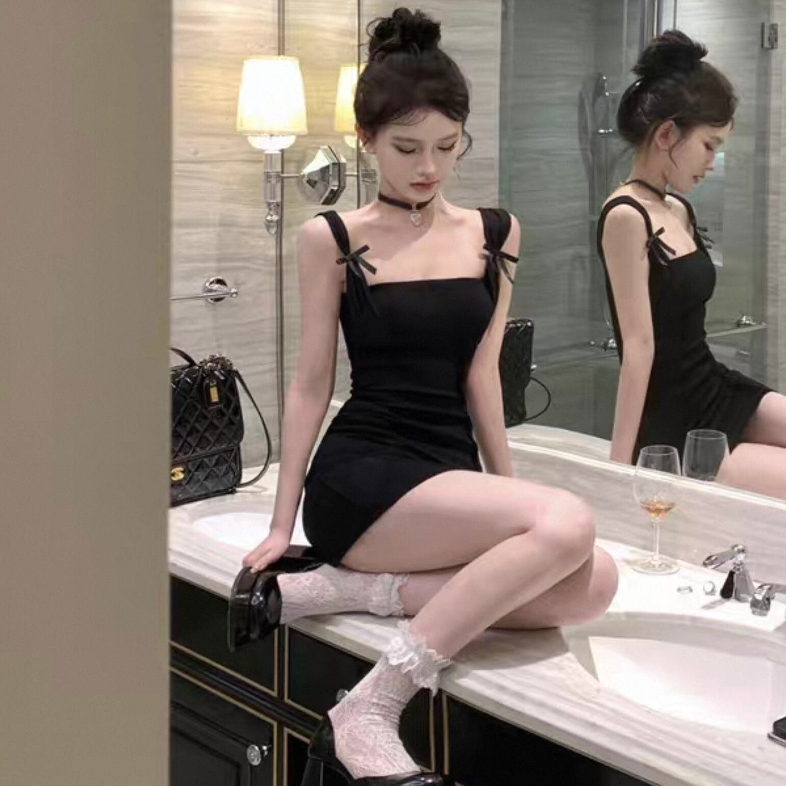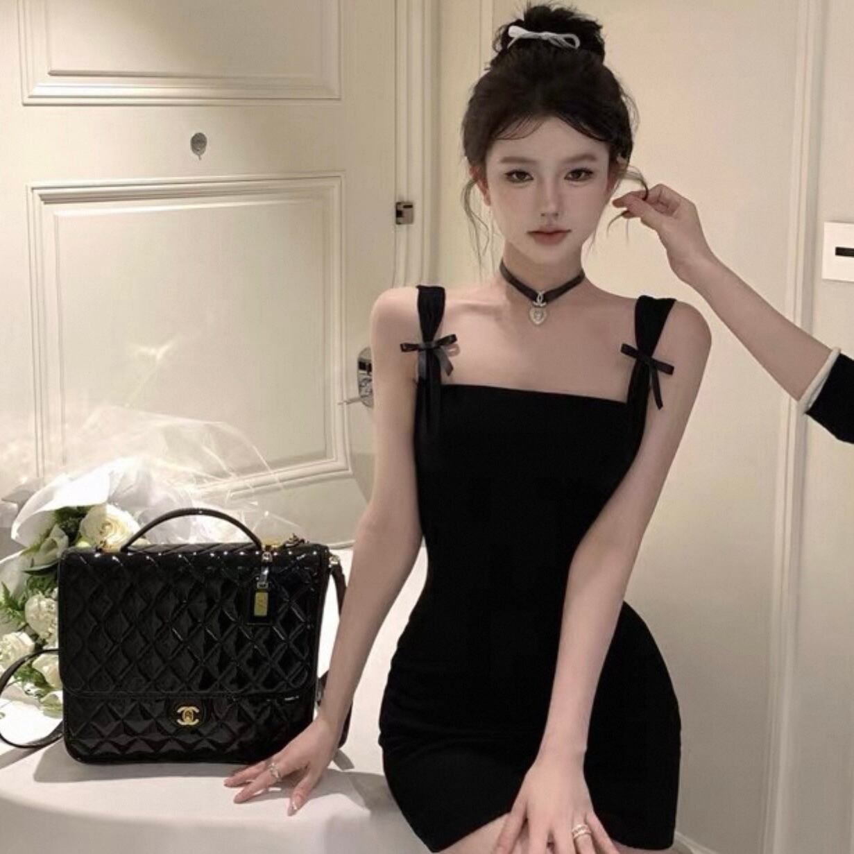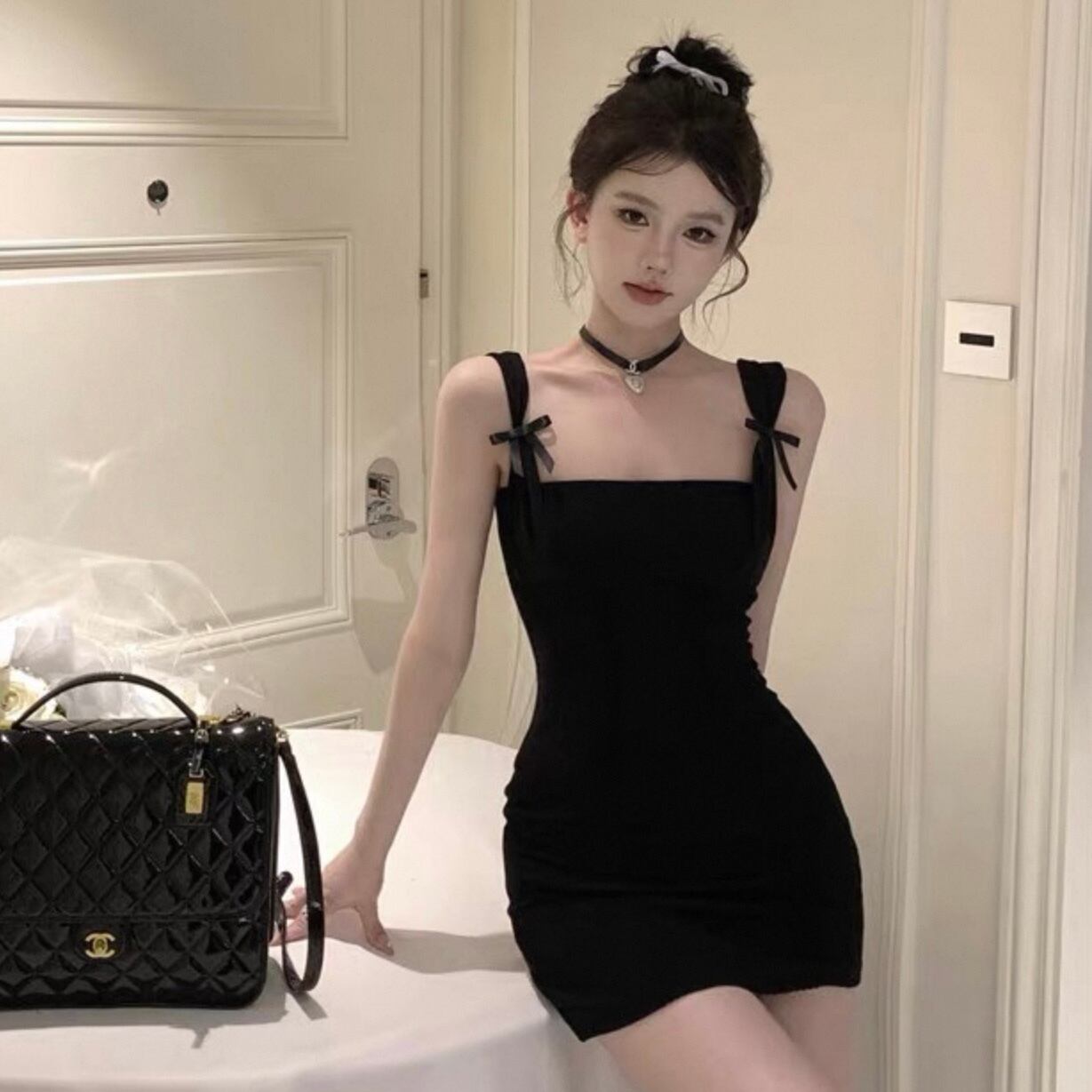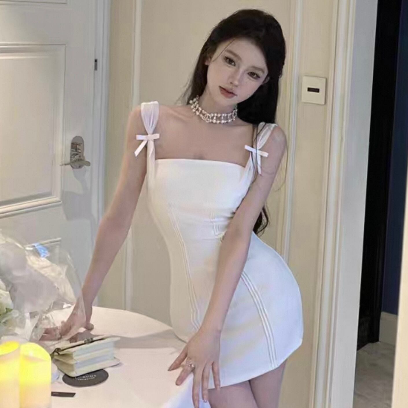 【dress】ショルダーリボンミニワンピース2色 HK0185
