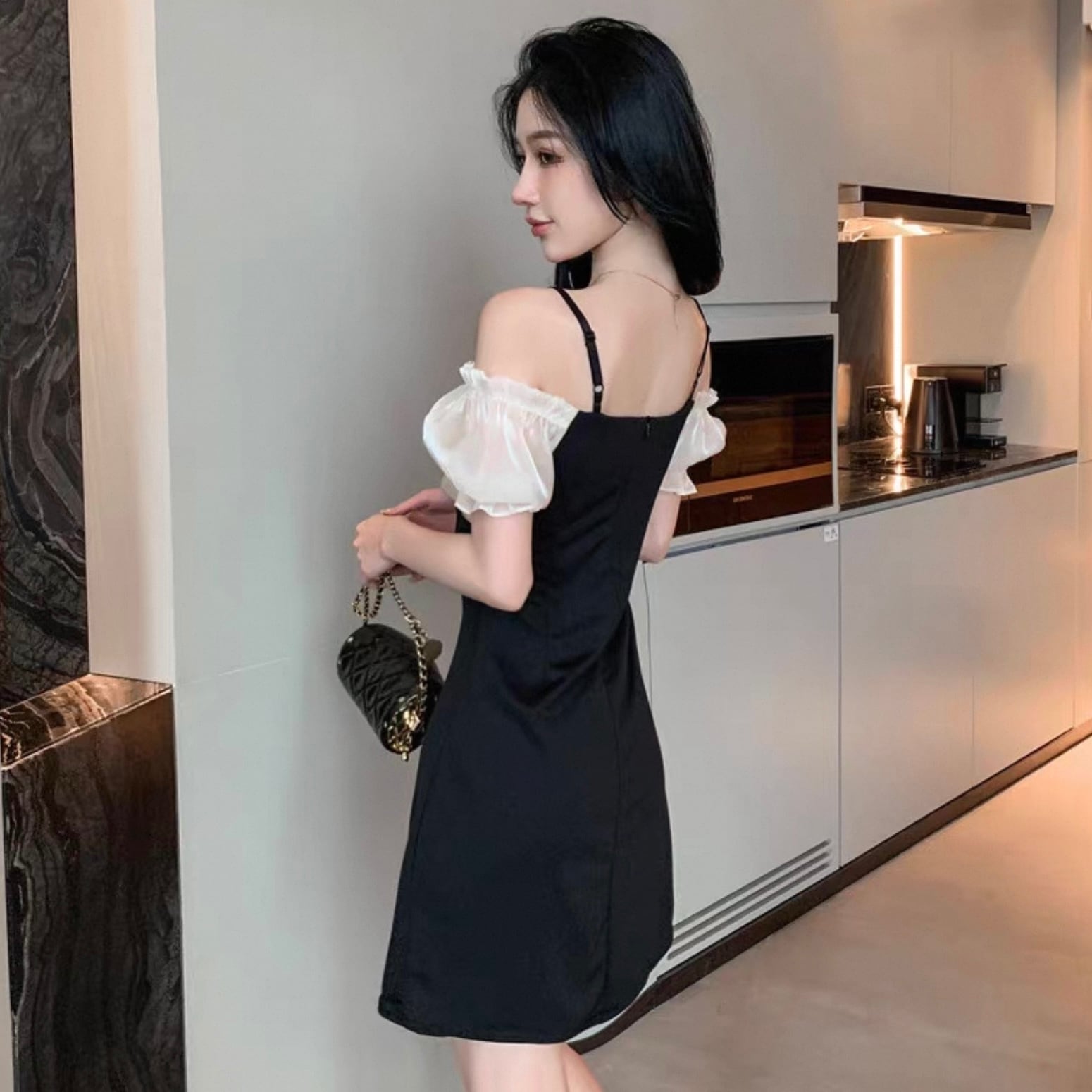 【dress】シンプルチュール切替ミニワンピース HK0190