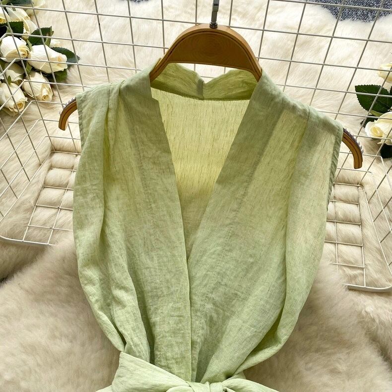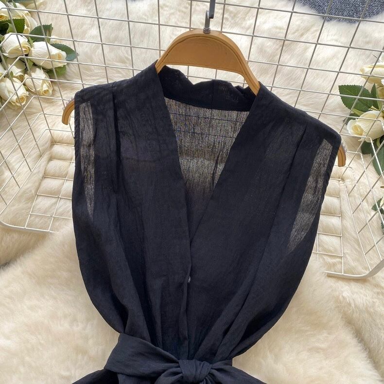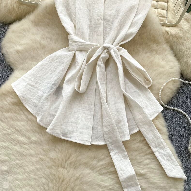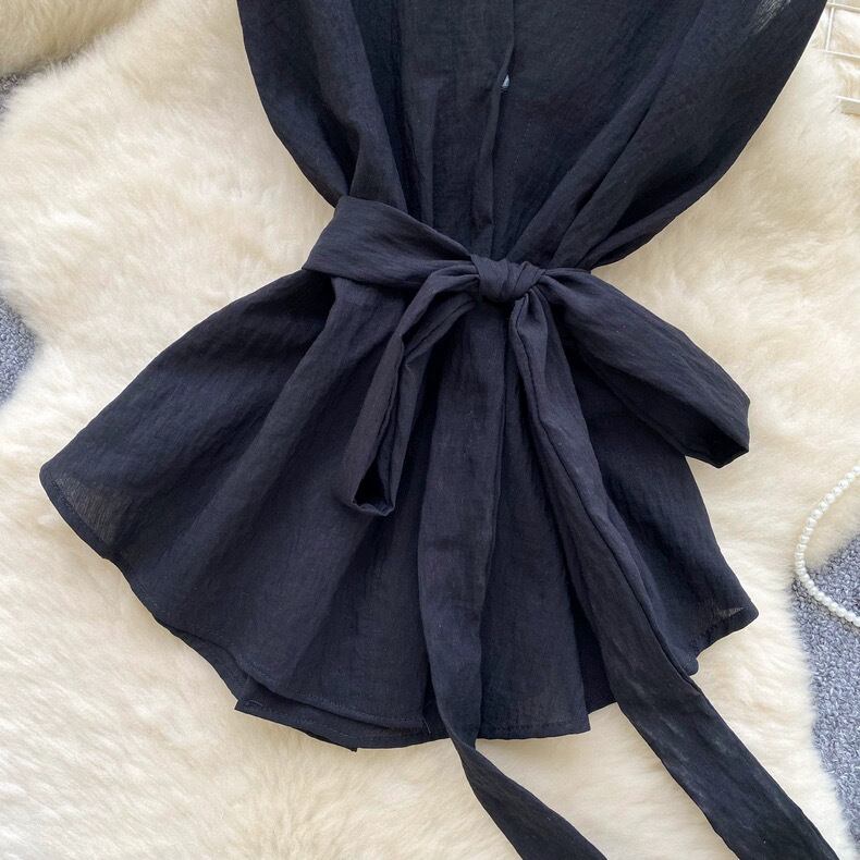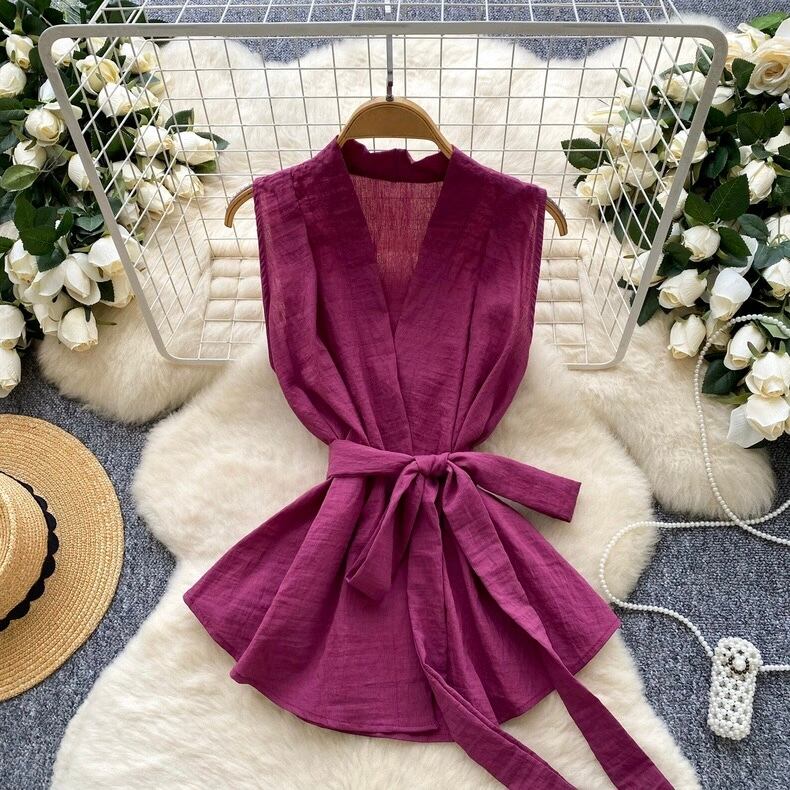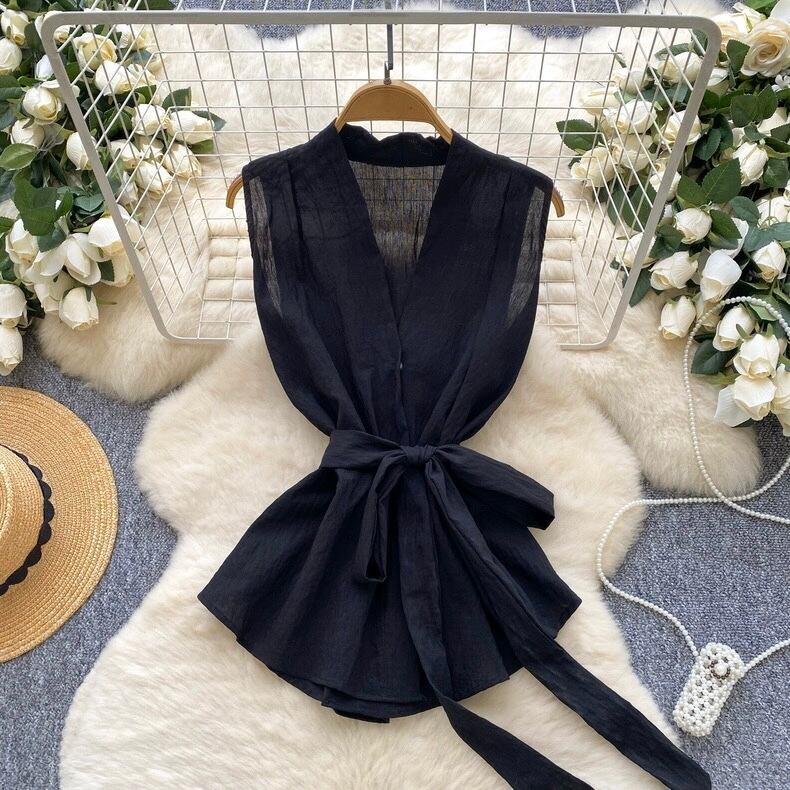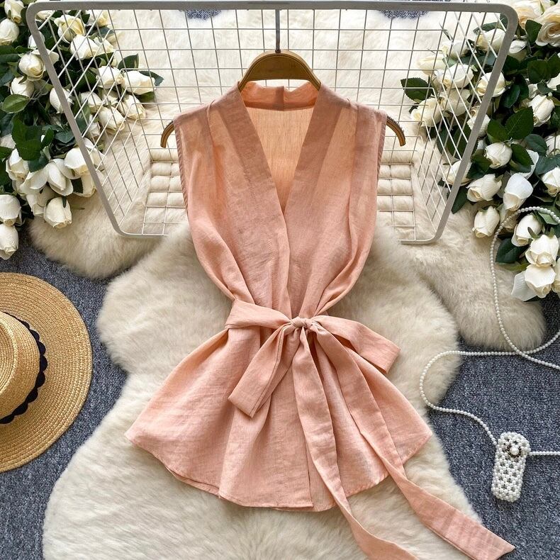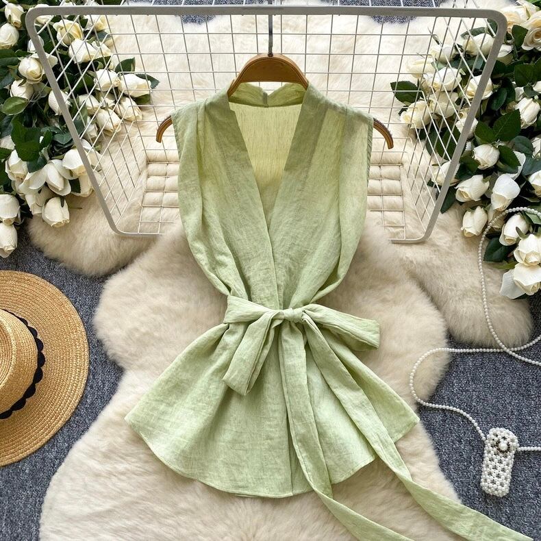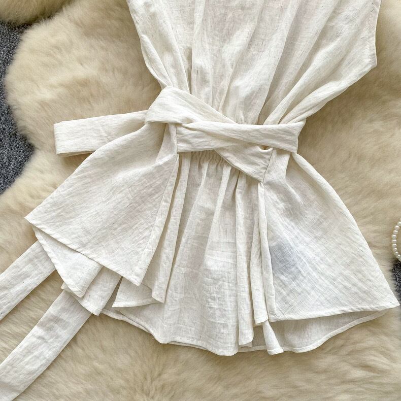 【tops】リボンベルトノースリーブトップス5色 HB0084