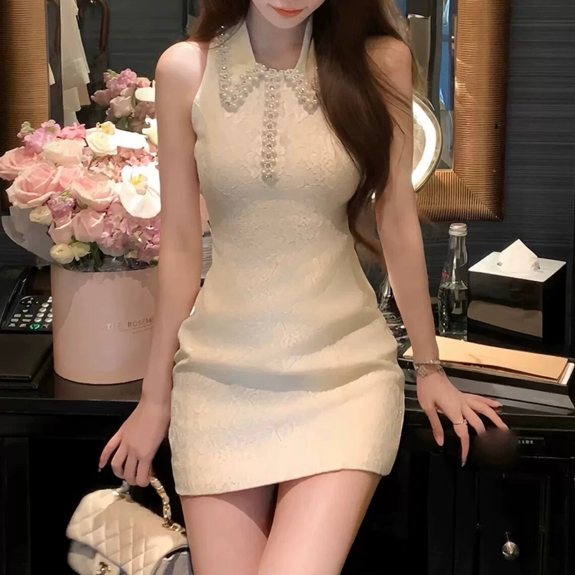 【dress】ビジュー襟ミニワンピース HB0087