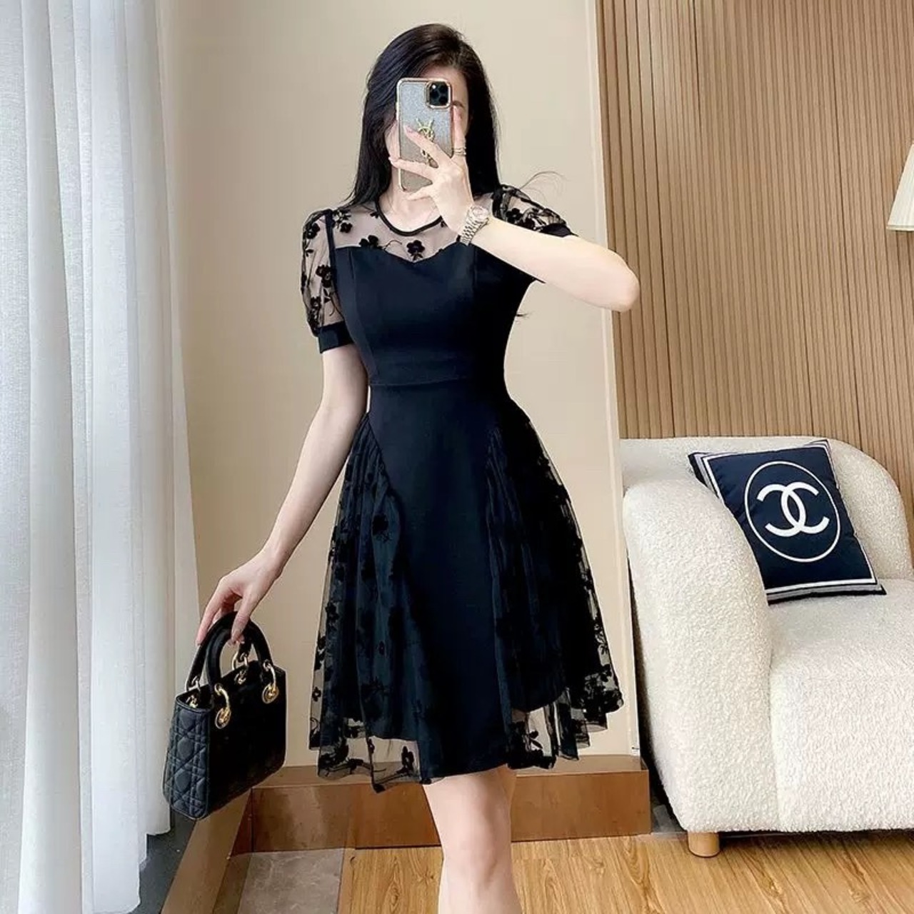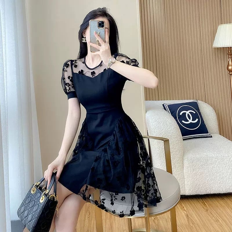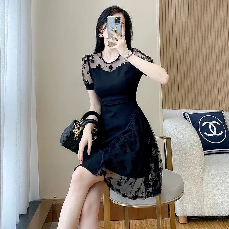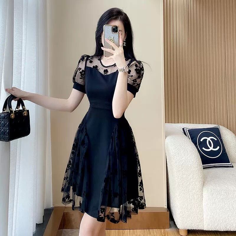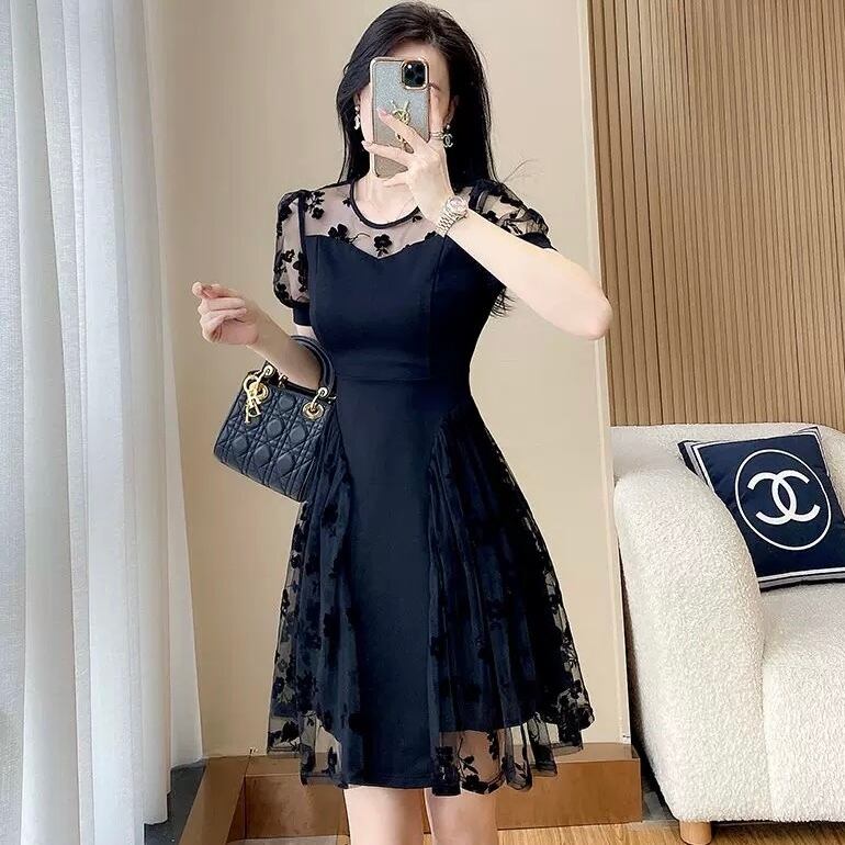 【dress】M〜2XL Aラインレースワンピース HB0092