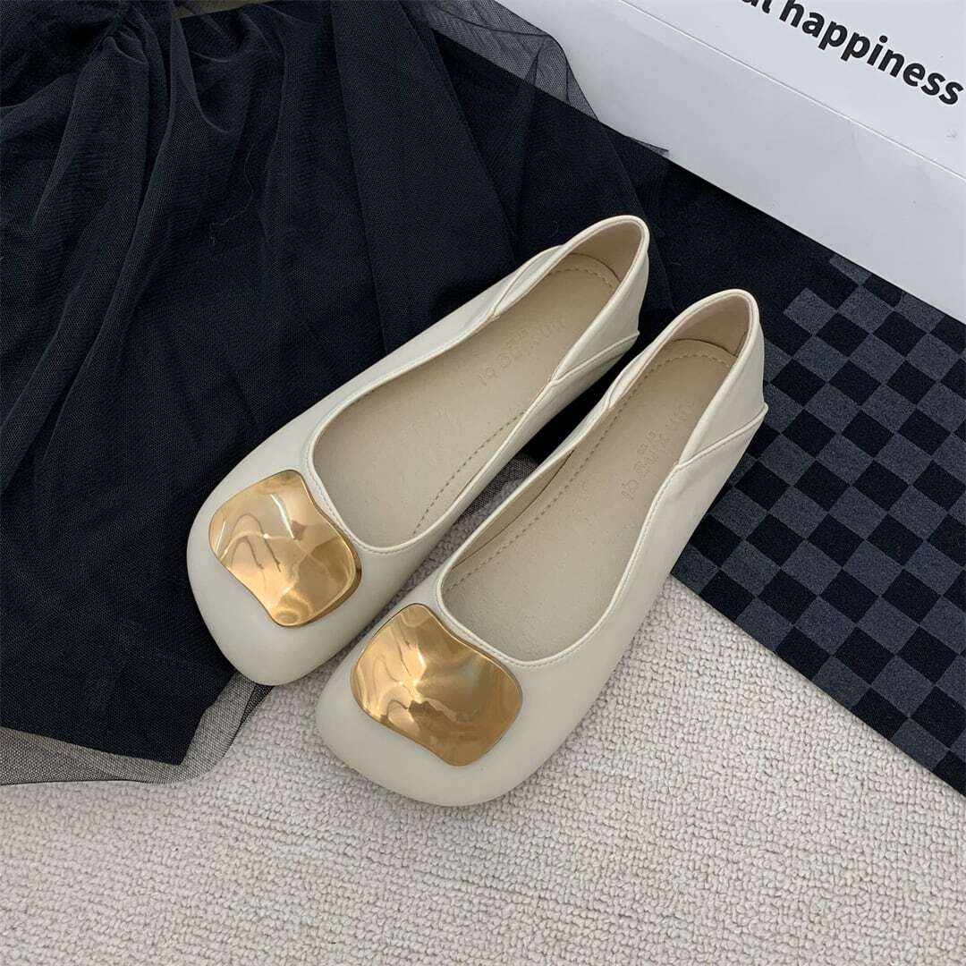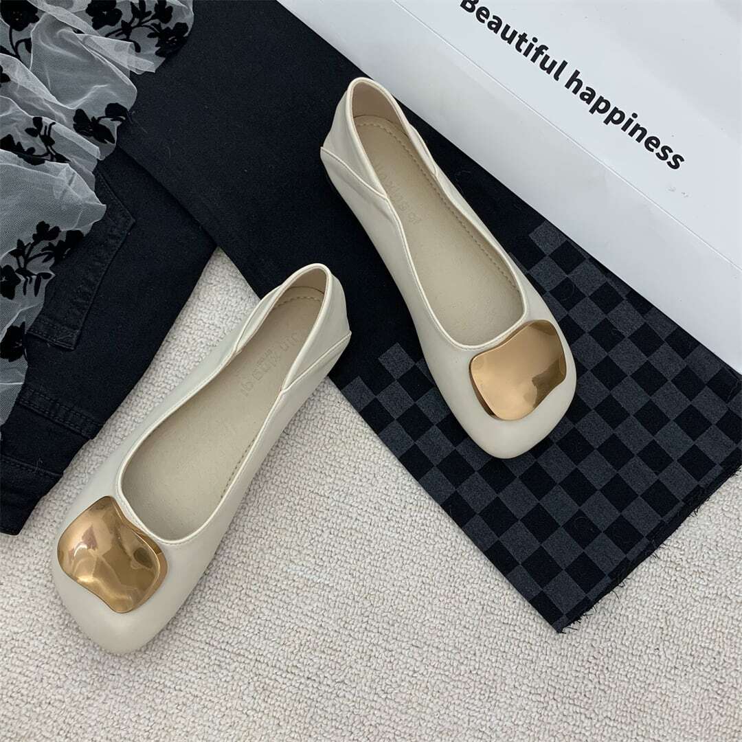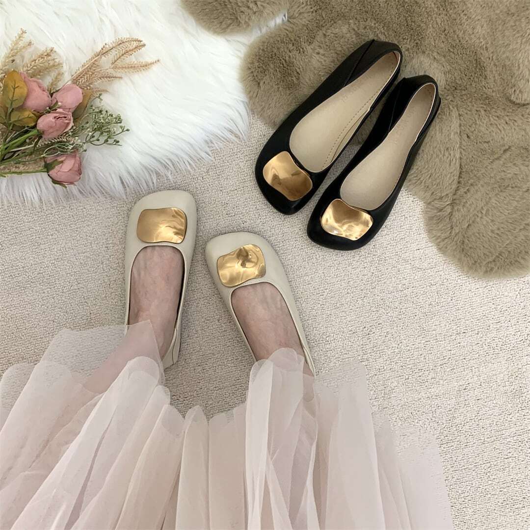 【shoes】ゴールドスクエア装飾フラットパンプス2色 HK4555