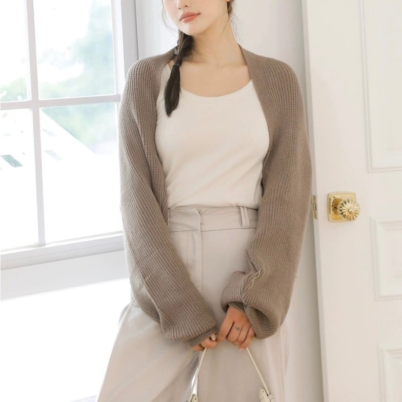 【outer】パフスリーブニットカーディガン4色 HB1801