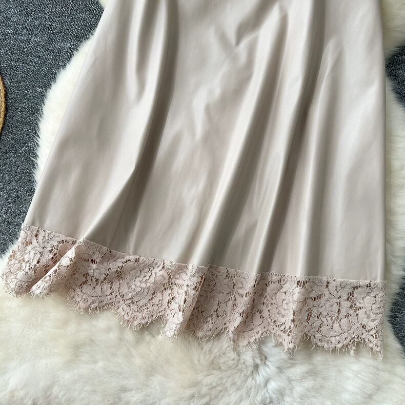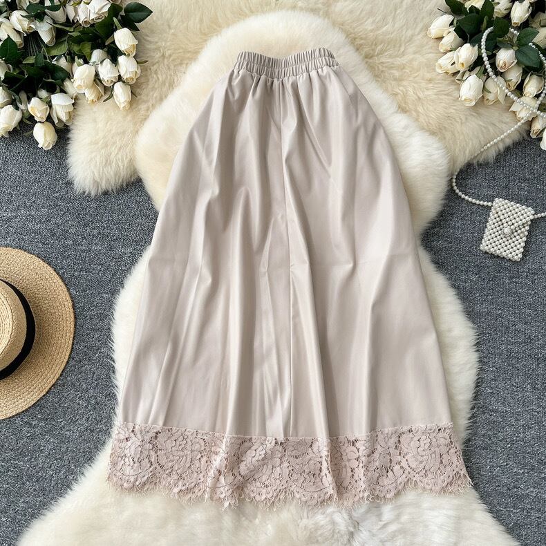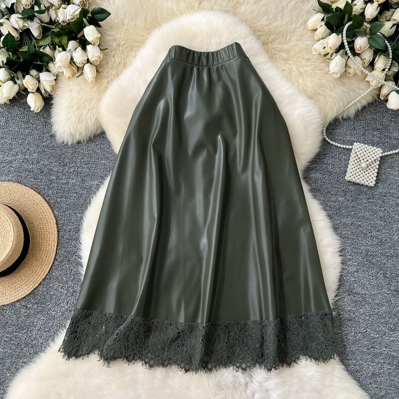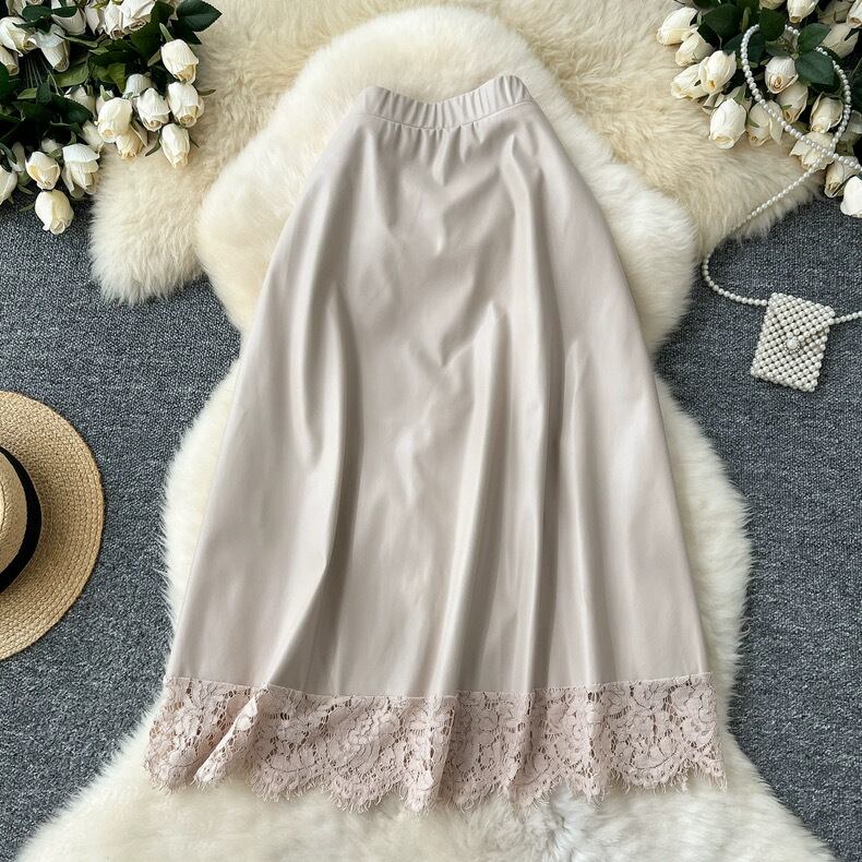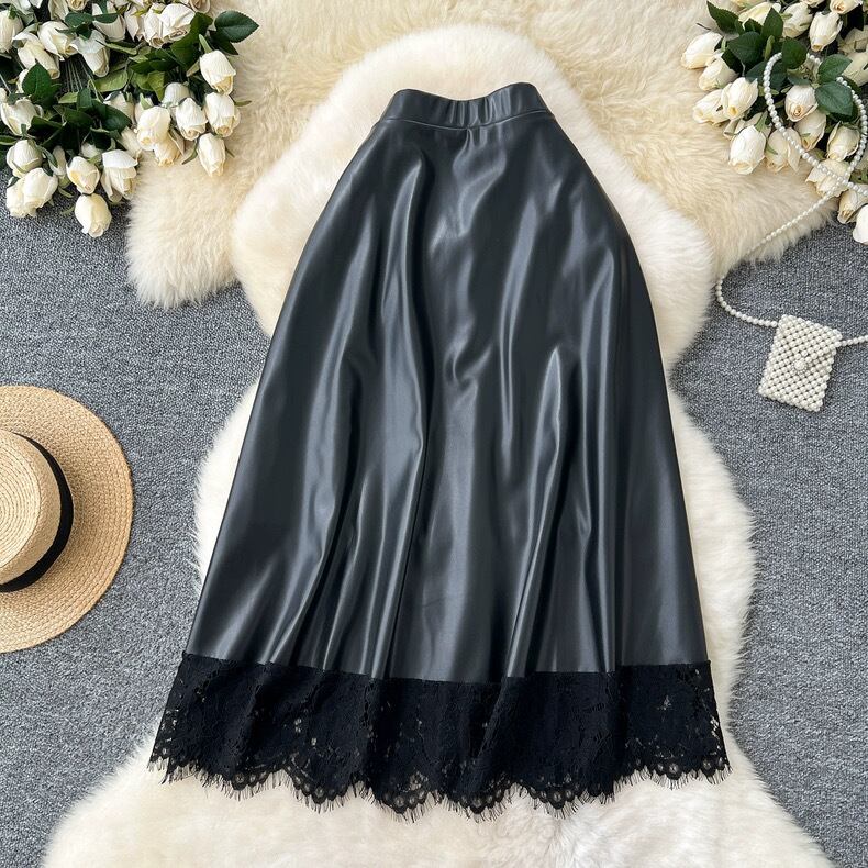 【bottoms】レースドッキングレザースカート4色 HX9302