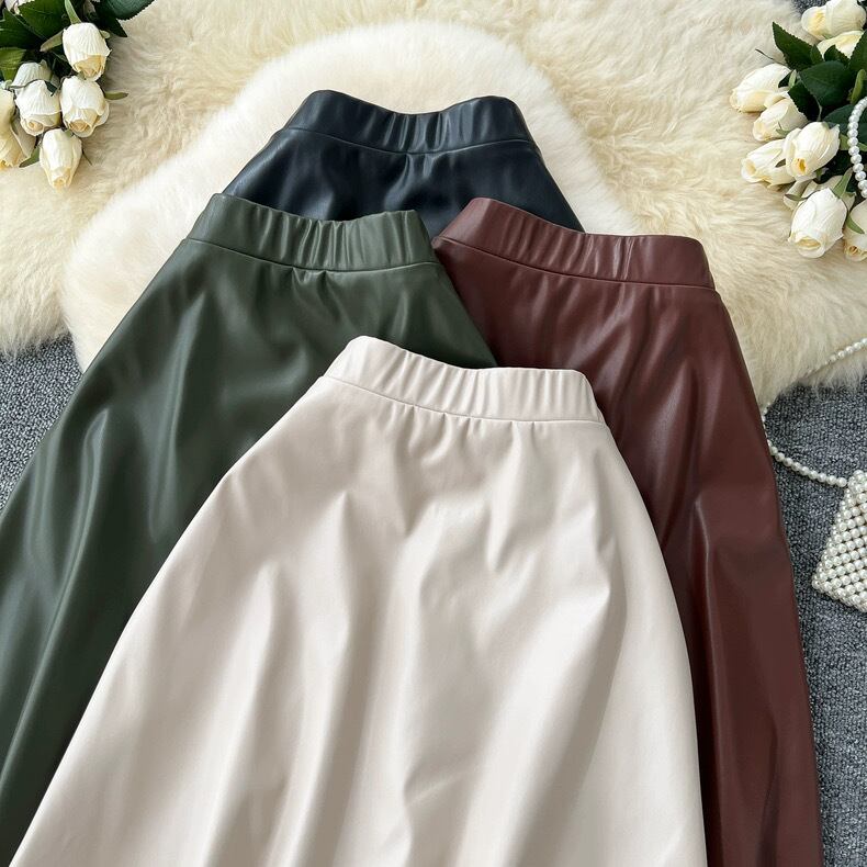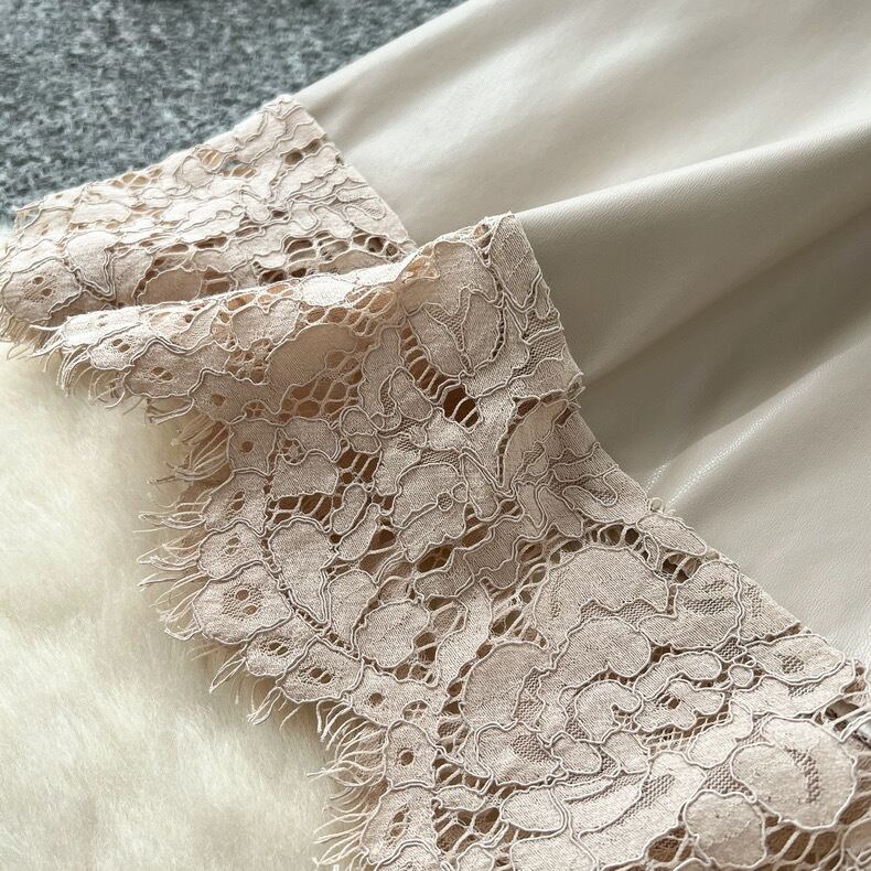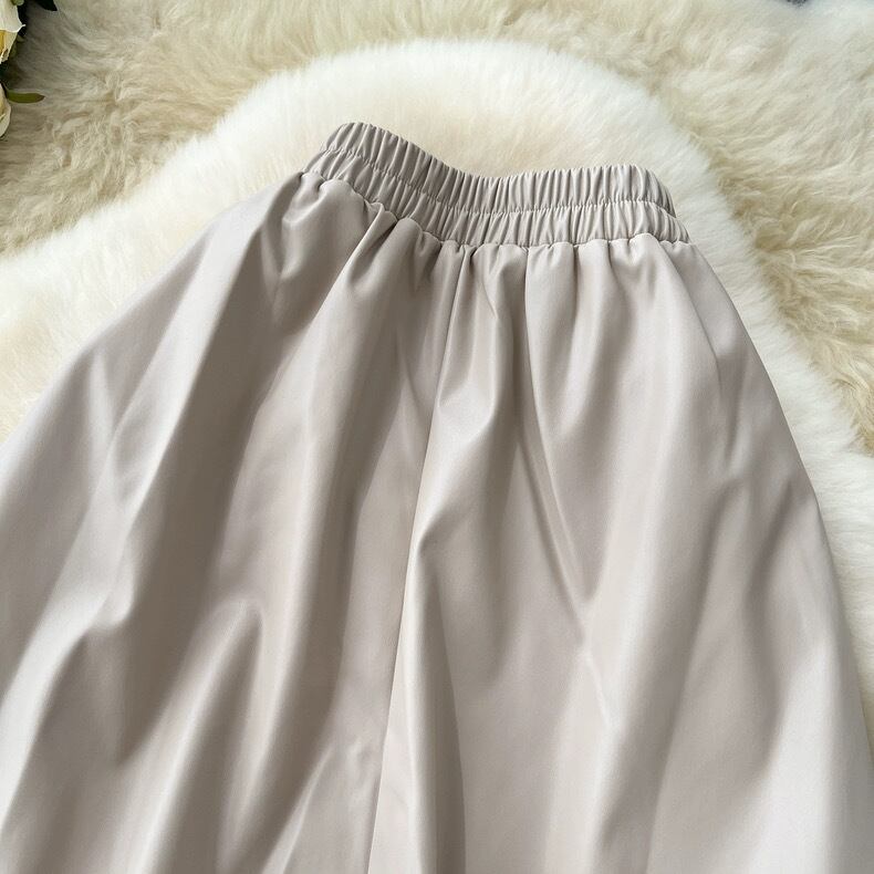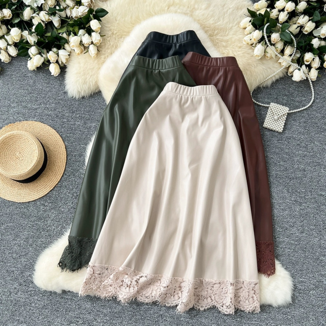 【bottoms】レースドッキングレザースカート4色 HX9302
