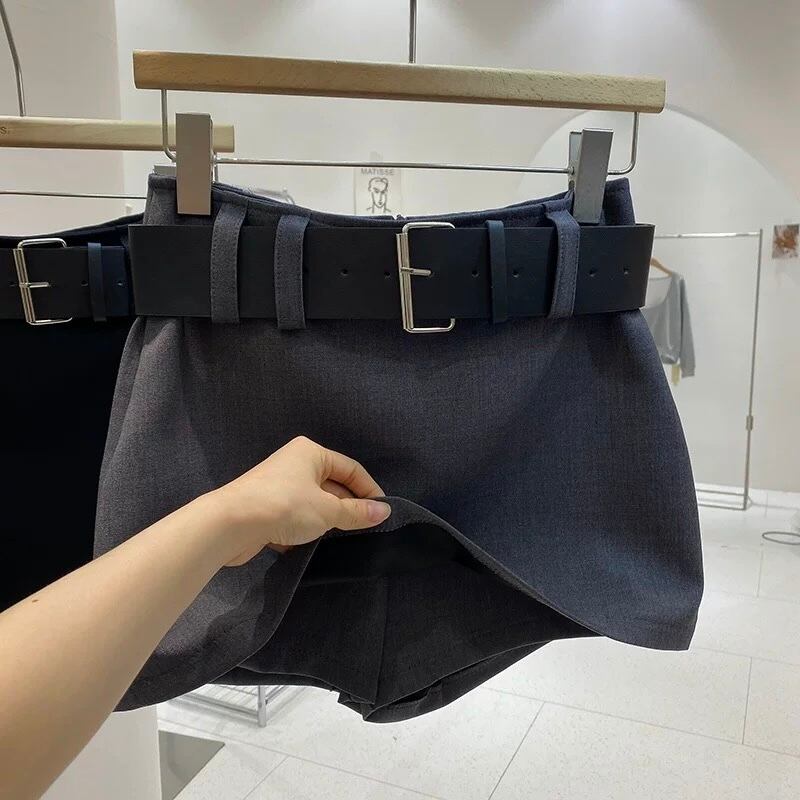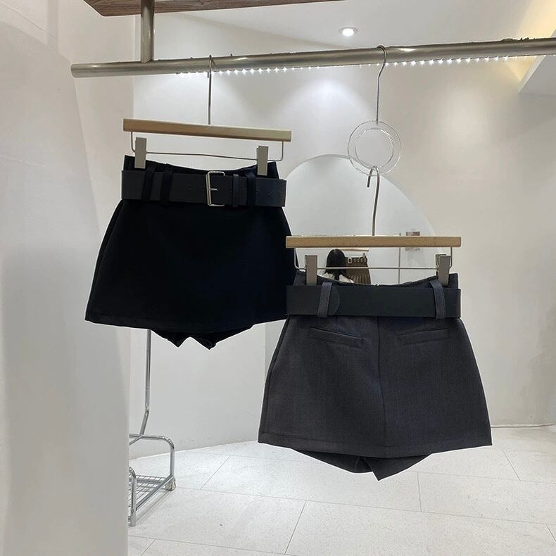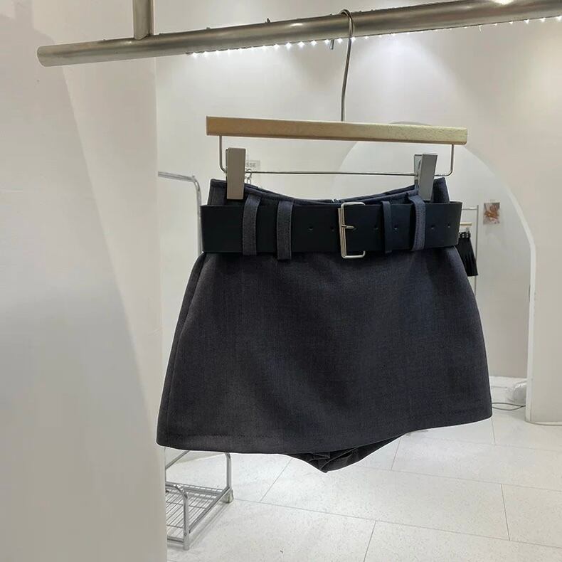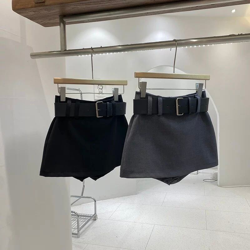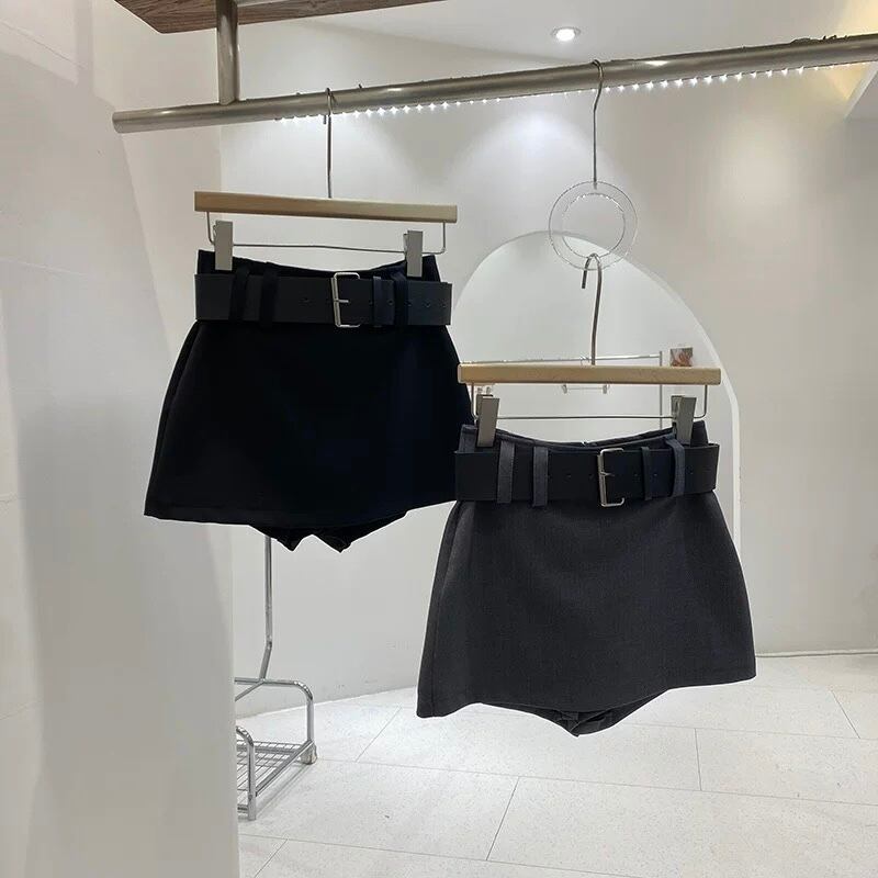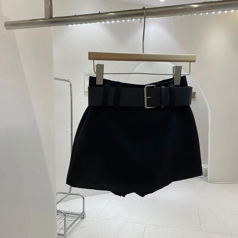 【bottoms】ベルト付きインパン裏地付きミニスカート2色 HX9401