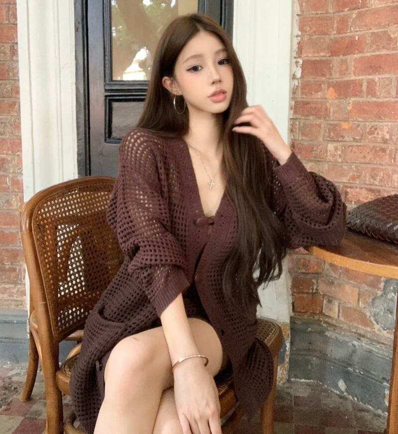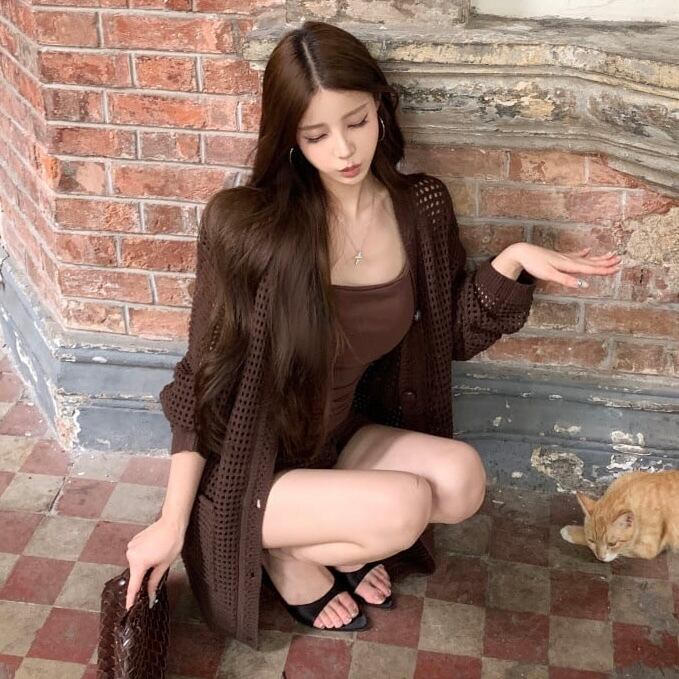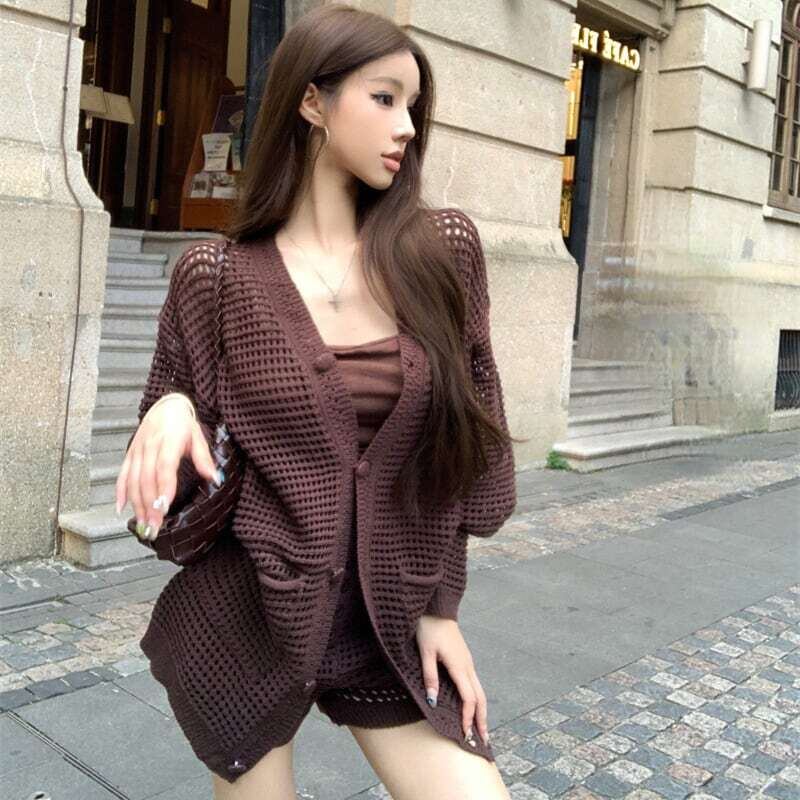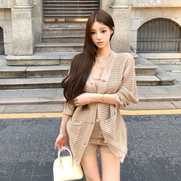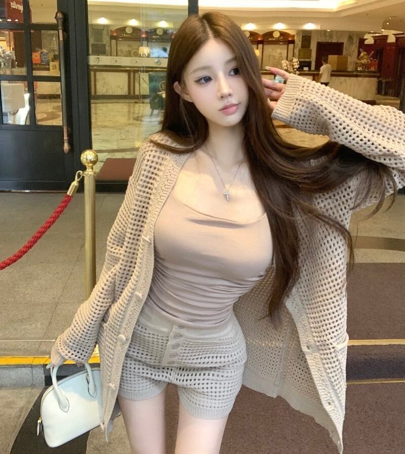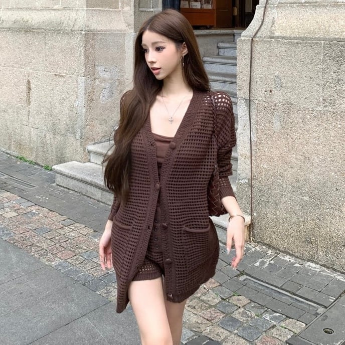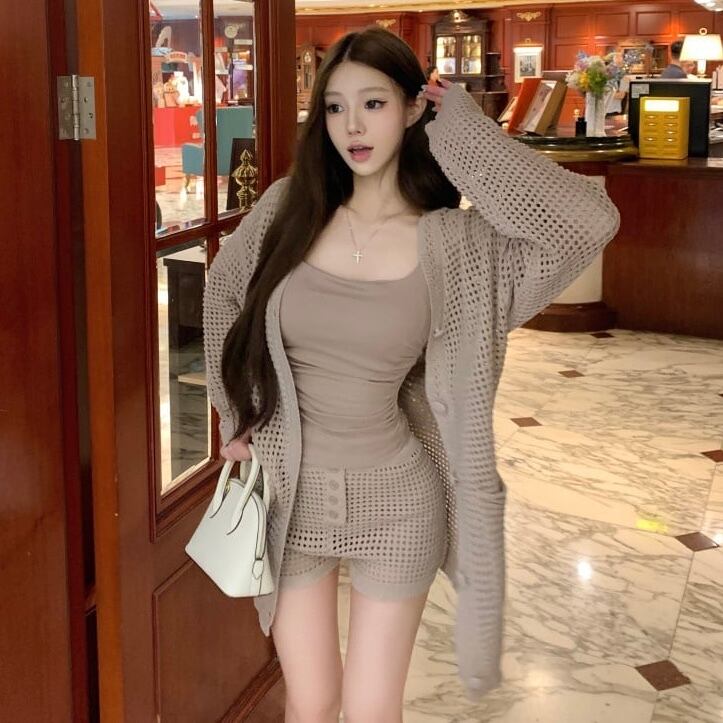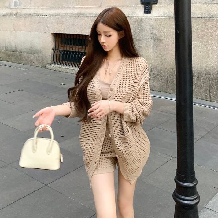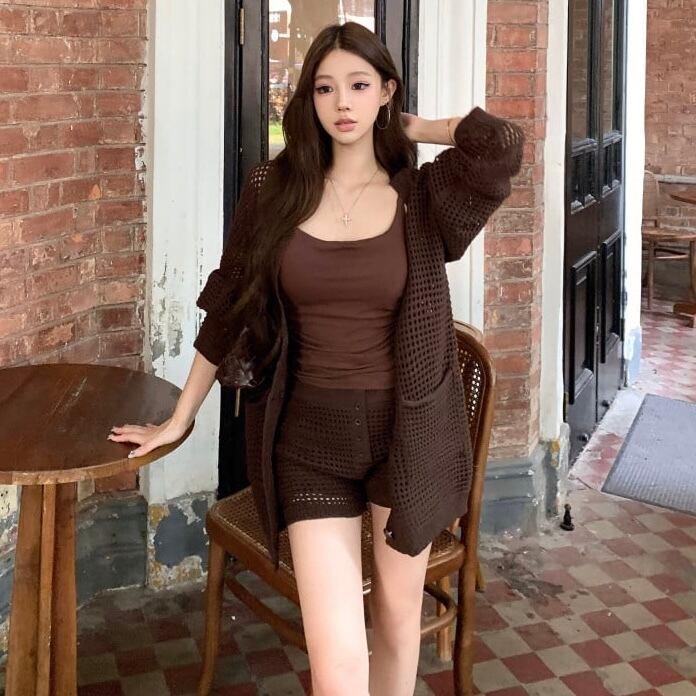 【set】ニットカーデ×キャミソール×ショートパンツ2色 HK0208