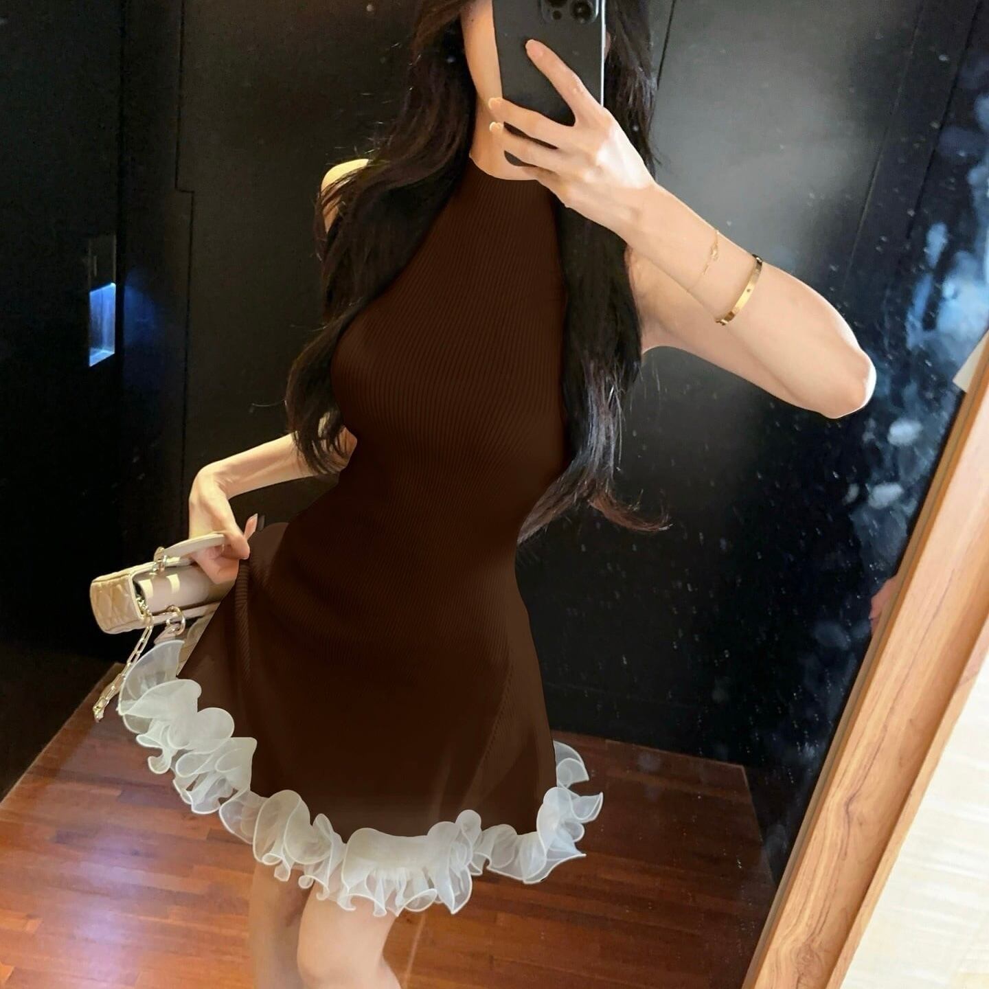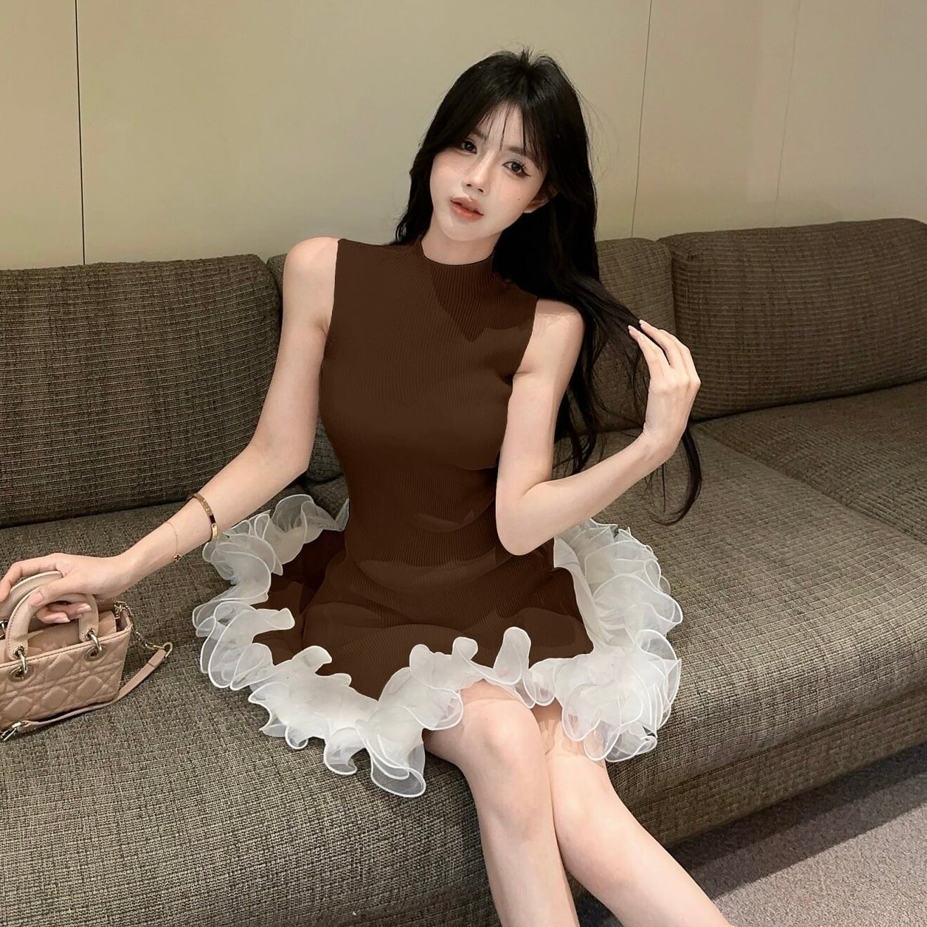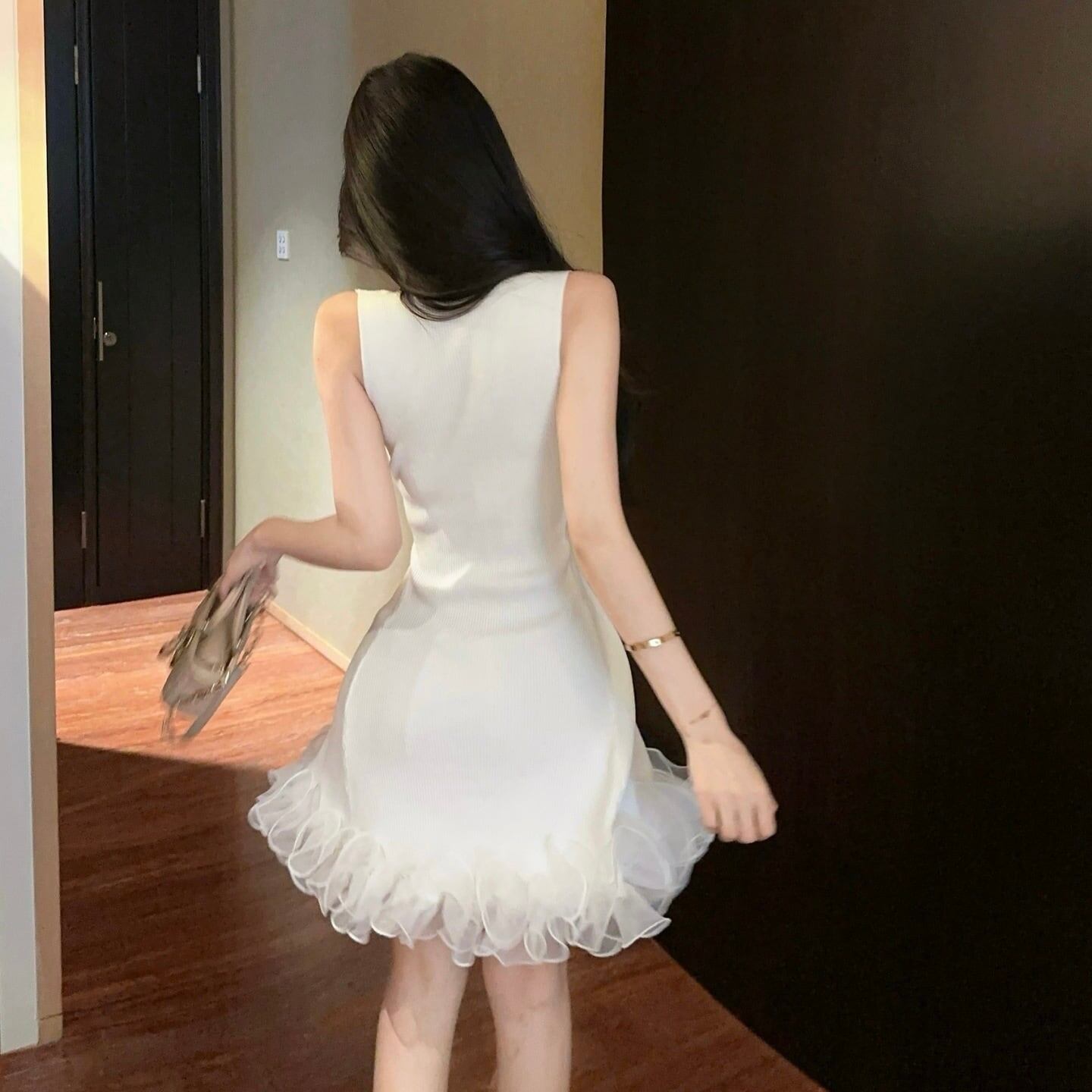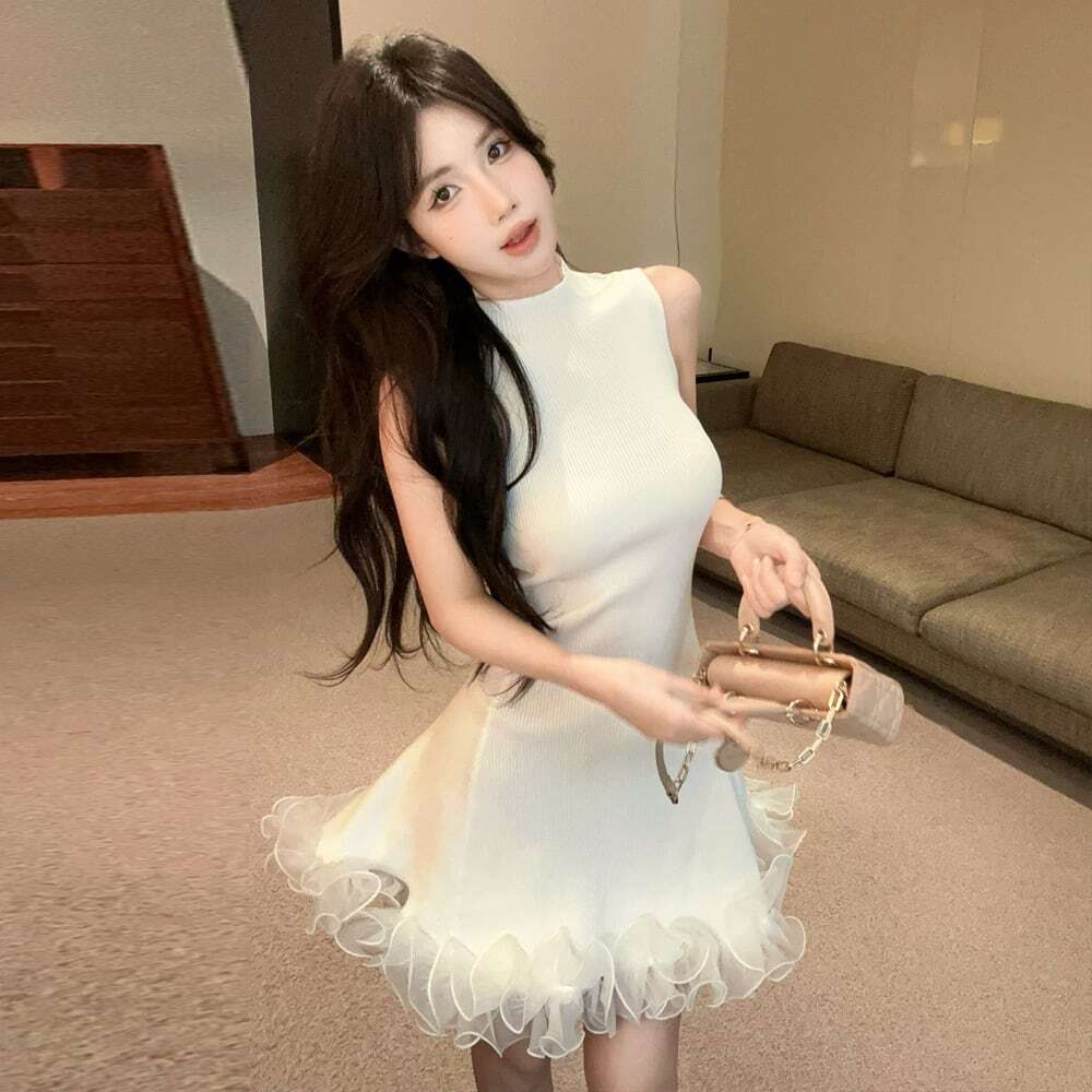 【dress】フリルノースリーブニットワンピース3色 HK0209