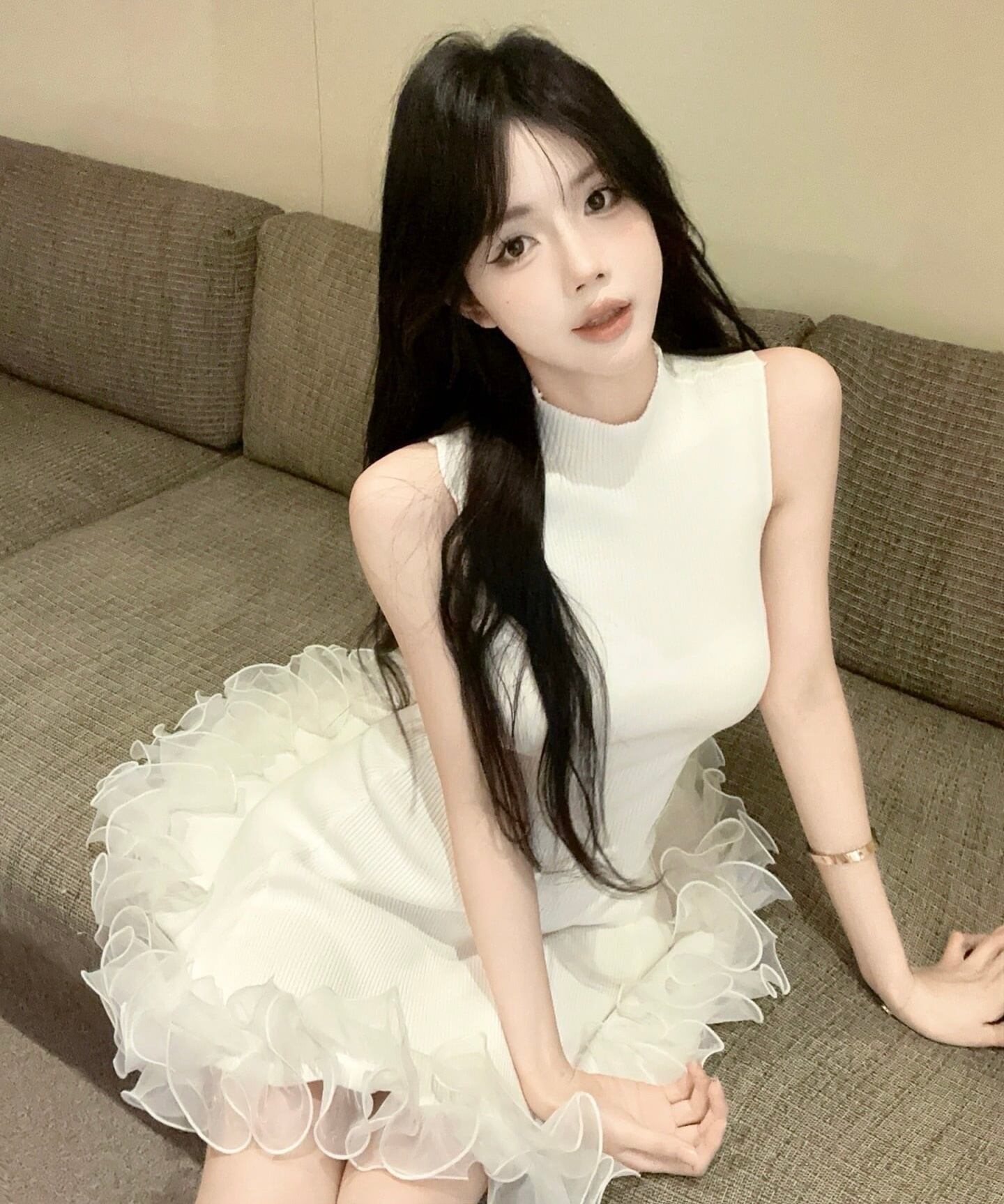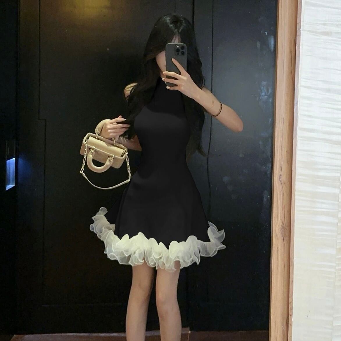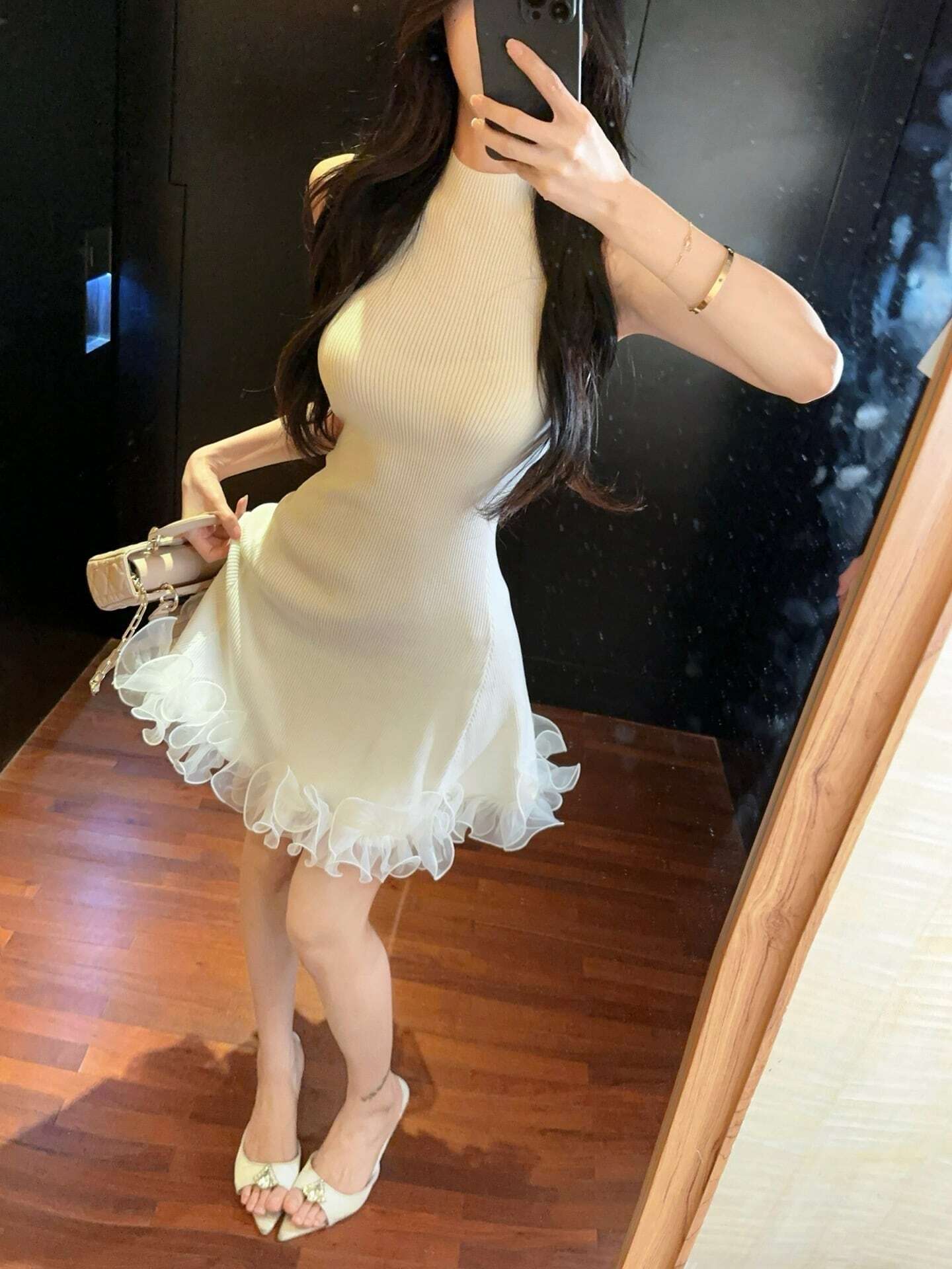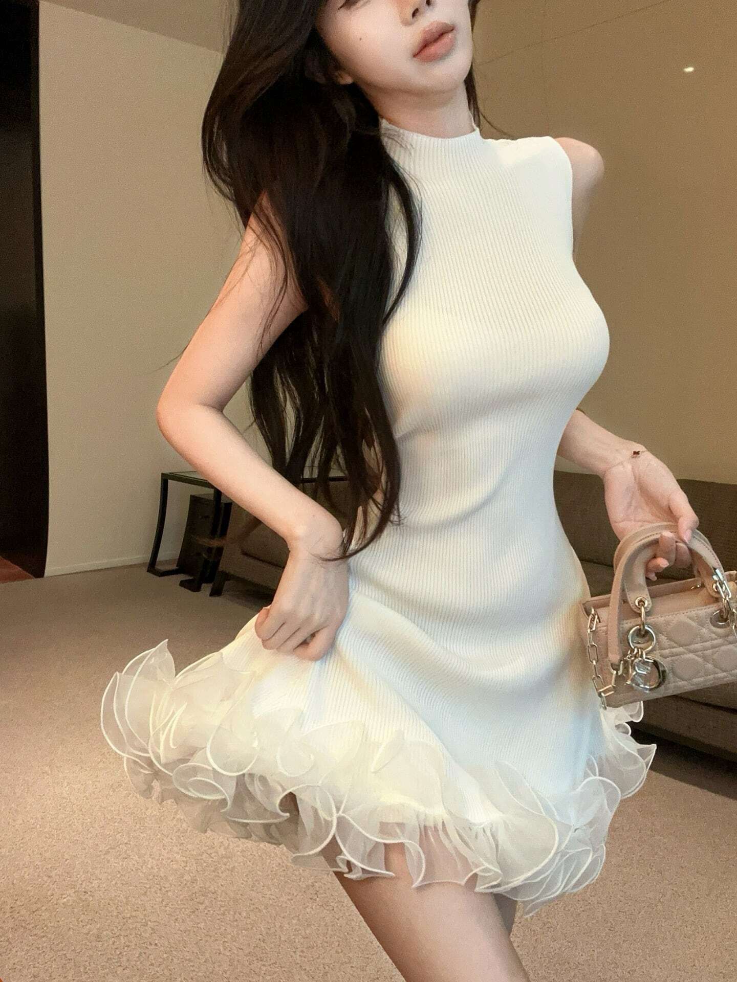 【dress】フリルノースリーブニットワンピース3色 HK0209