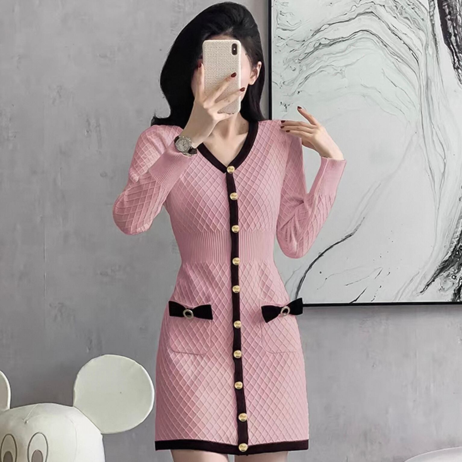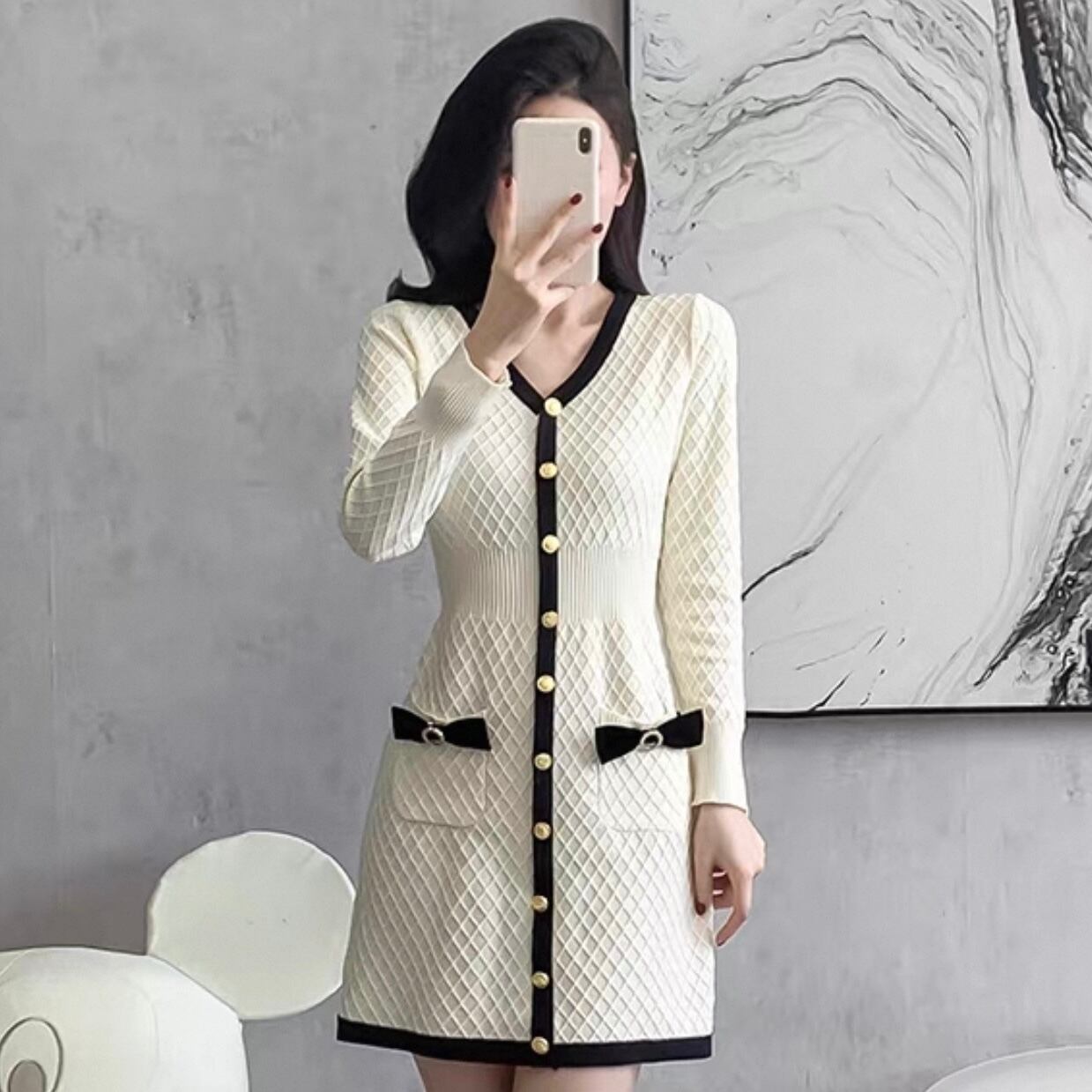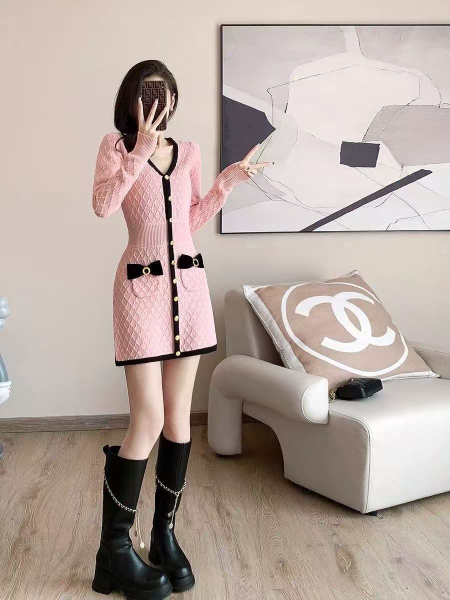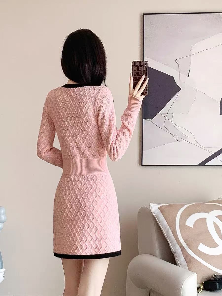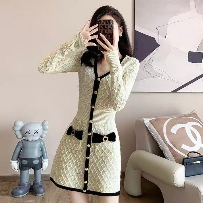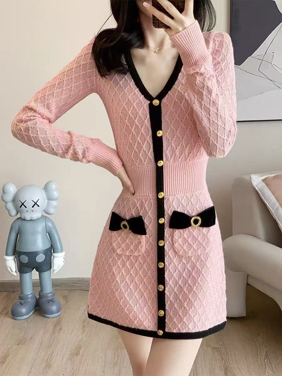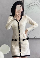 【dress】ボタンデザインニットワンピース HK0214