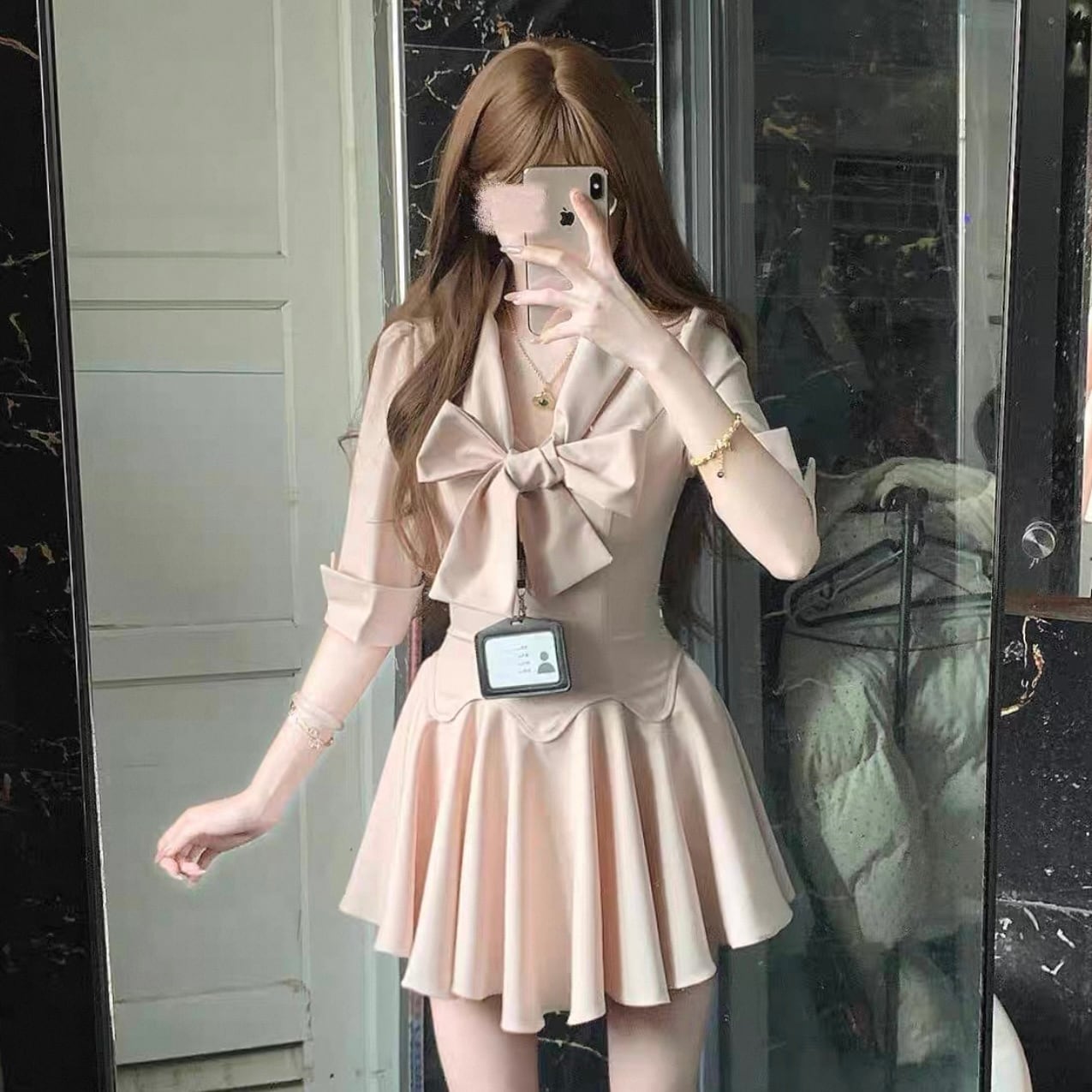 【dress】リボンネクタイシャツワンピース2色 HK02154