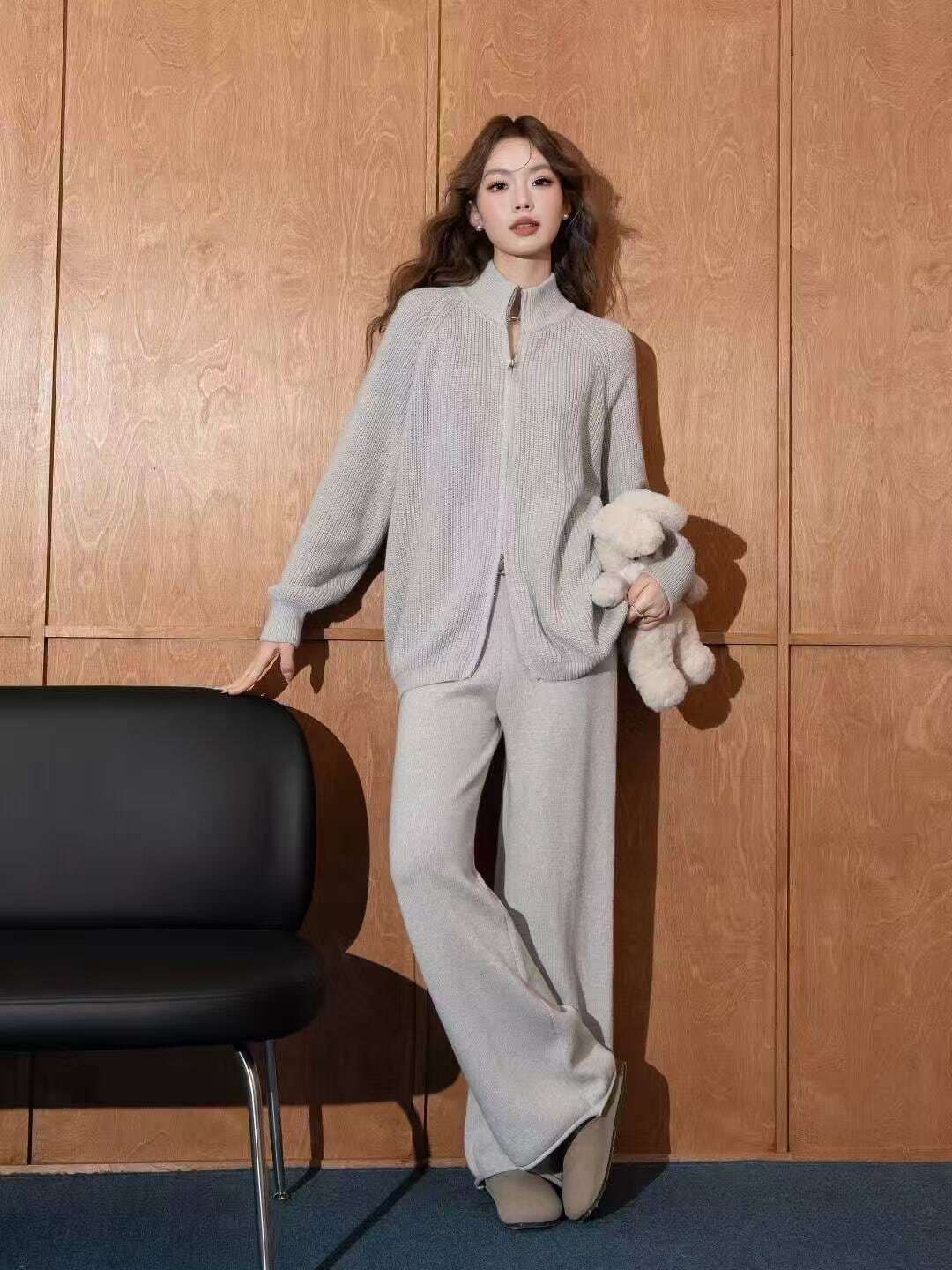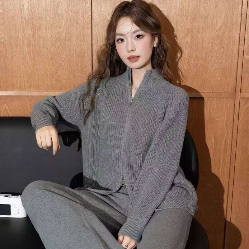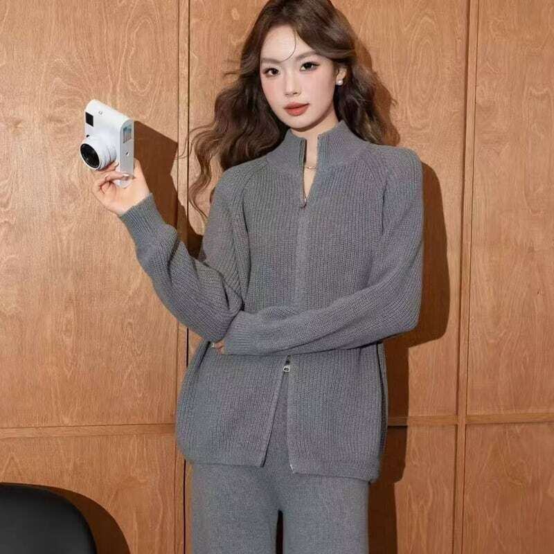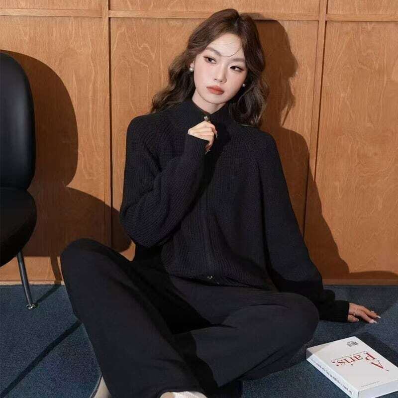 【set】ハイネックカーディガン×ニットパンツ4色 HK02163