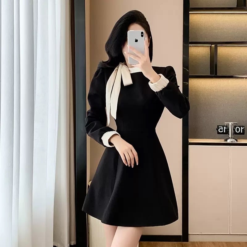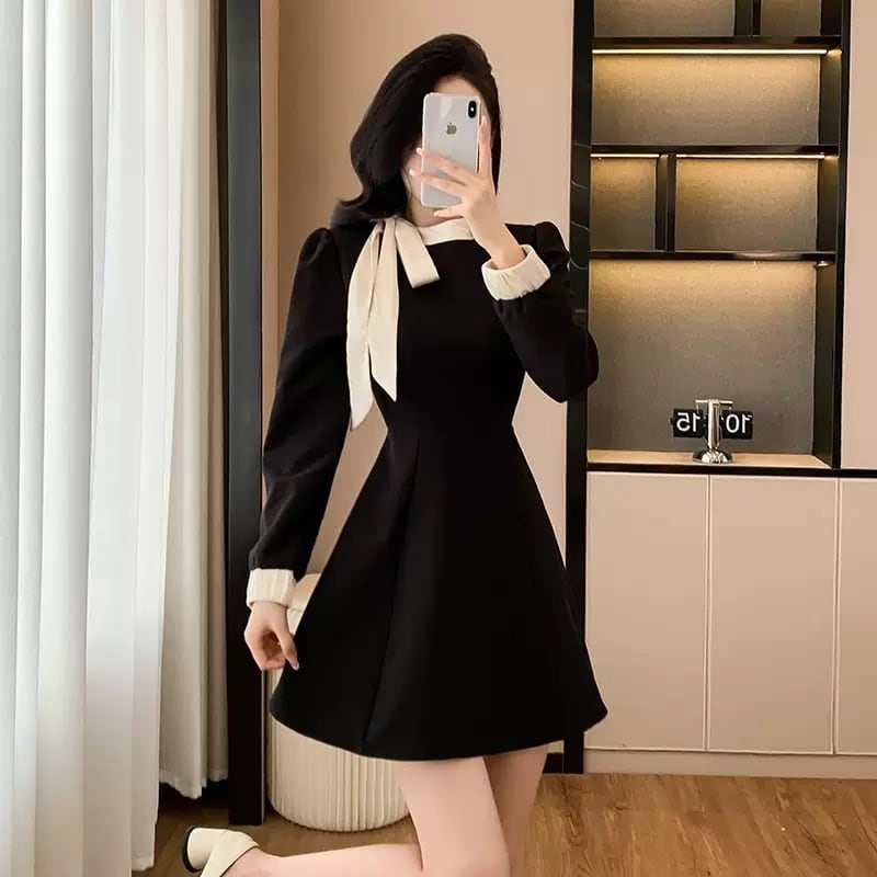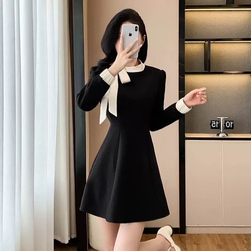 【dress】ボウタイAラインワンピース HS2402