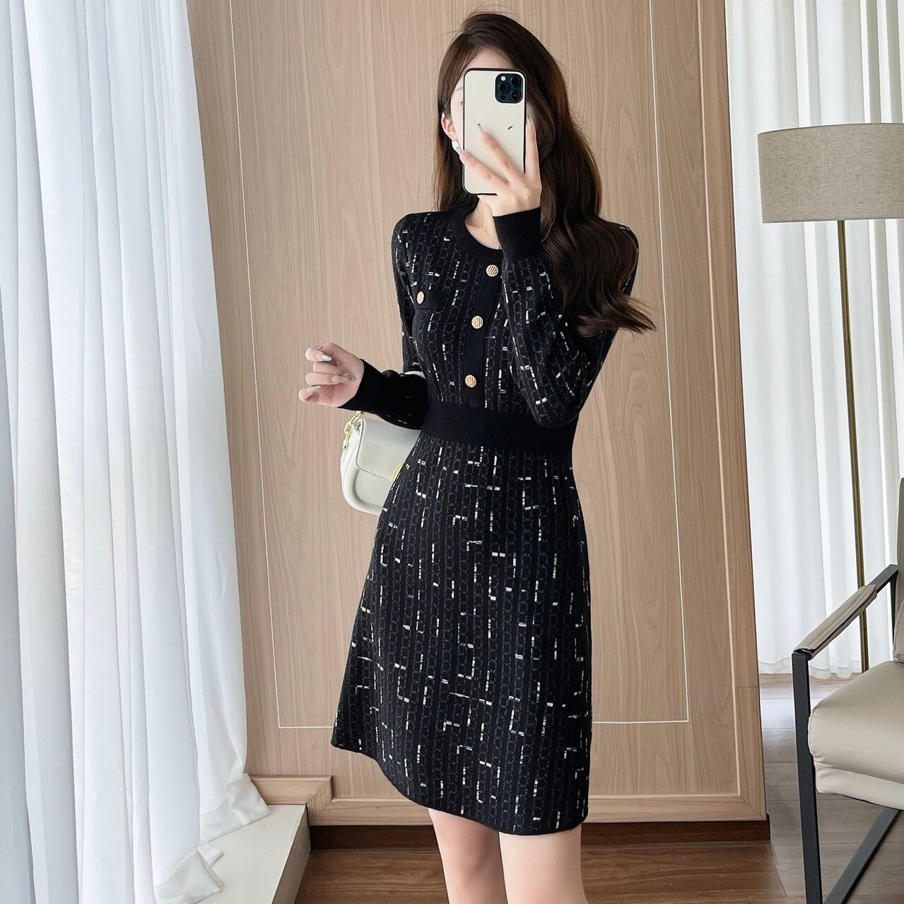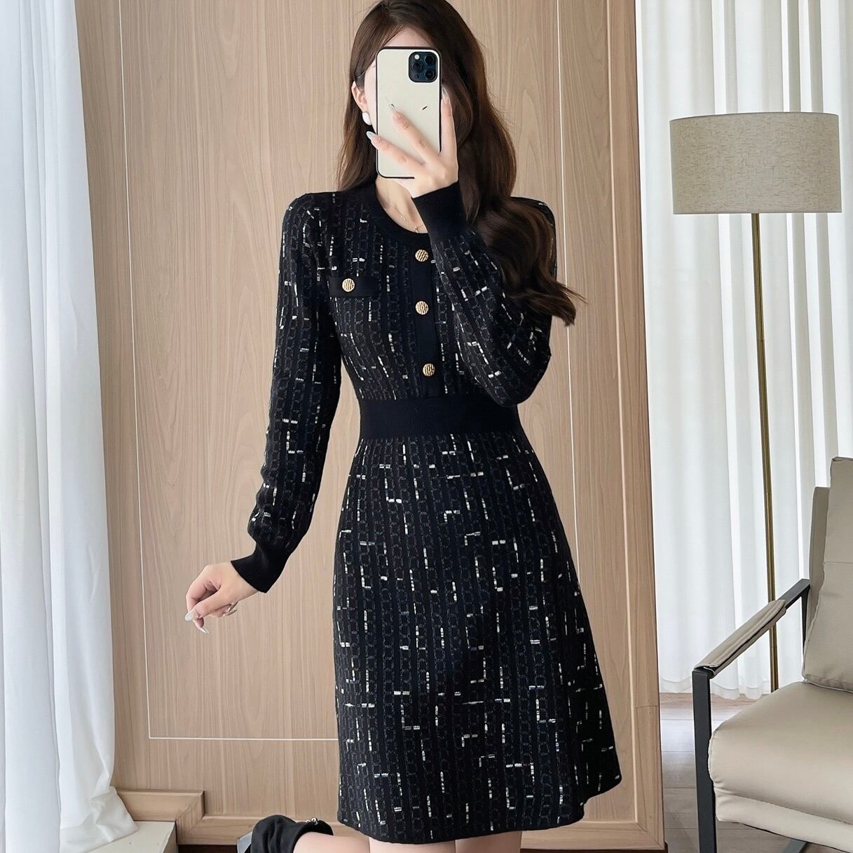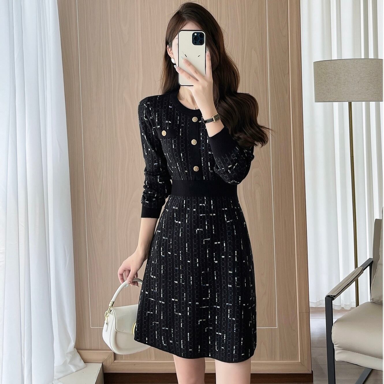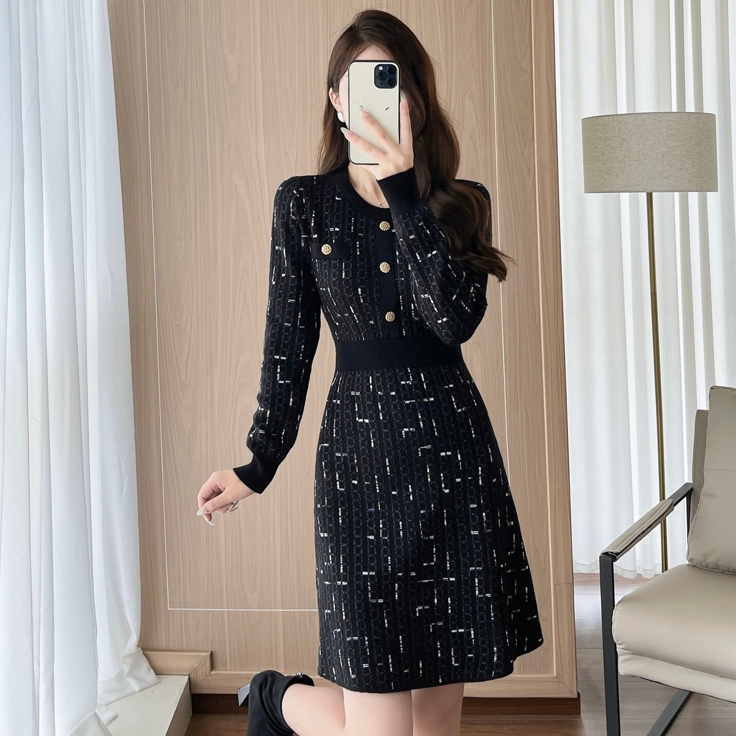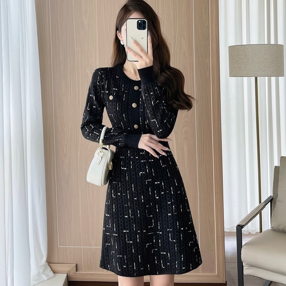 【dress】Aラインフレンチニットワンピース HS2500
