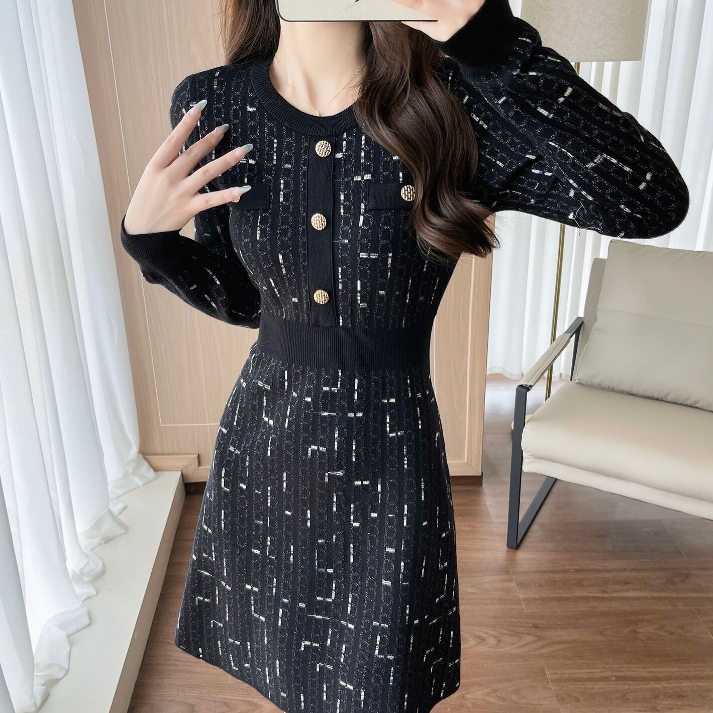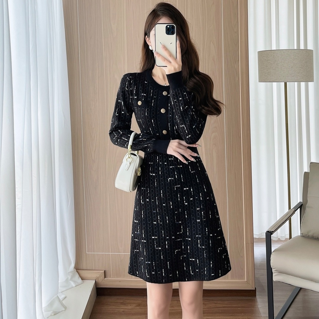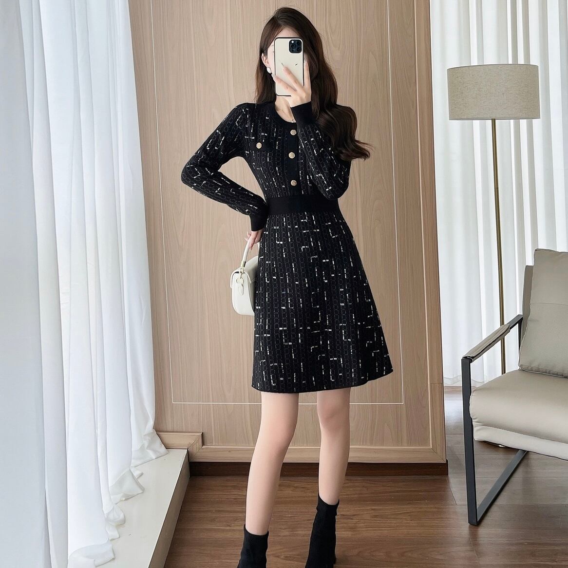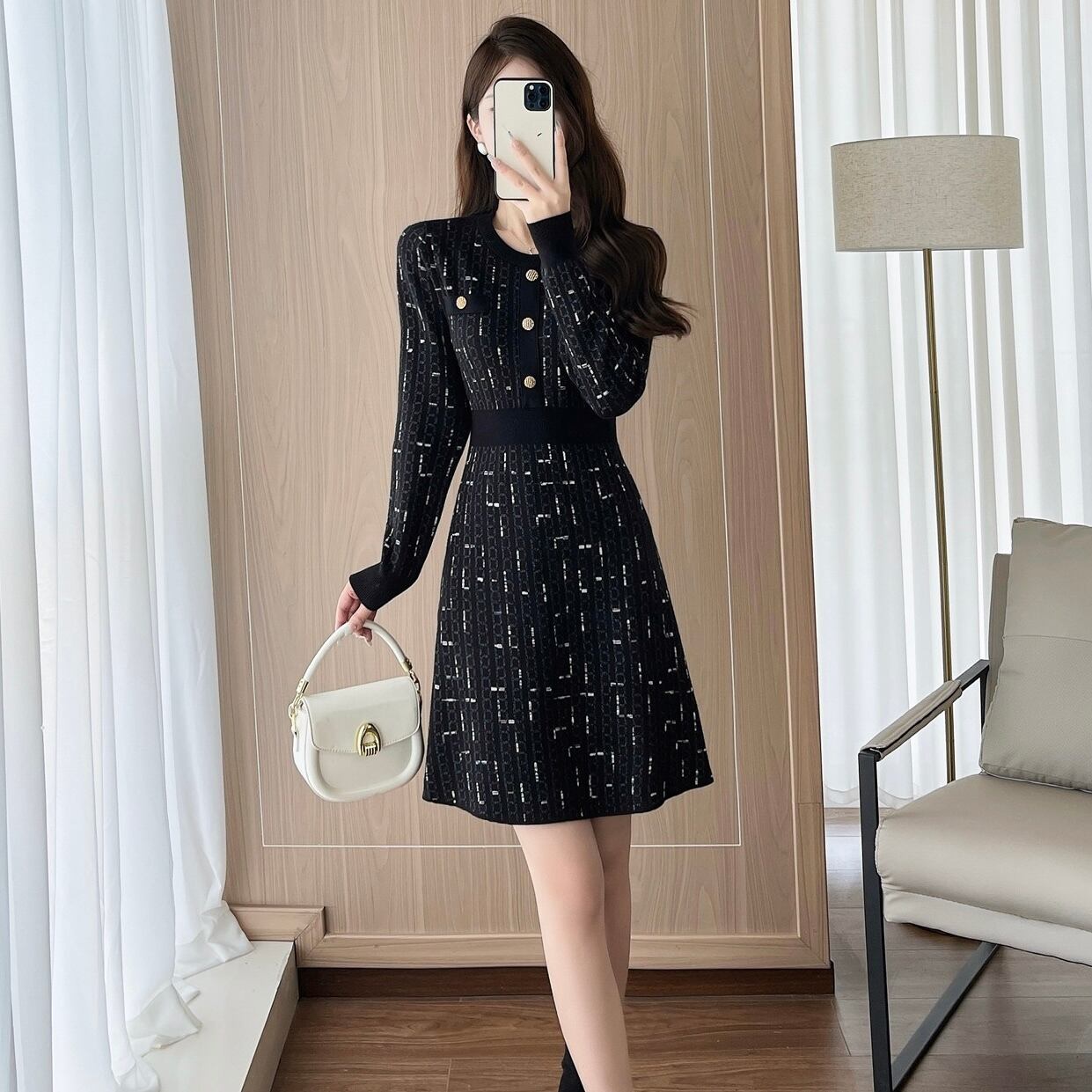 【dress】Aラインフレンチニットワンピース HS2500