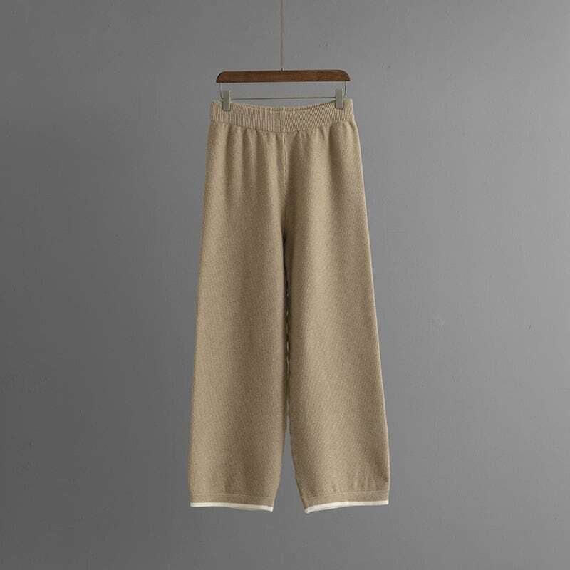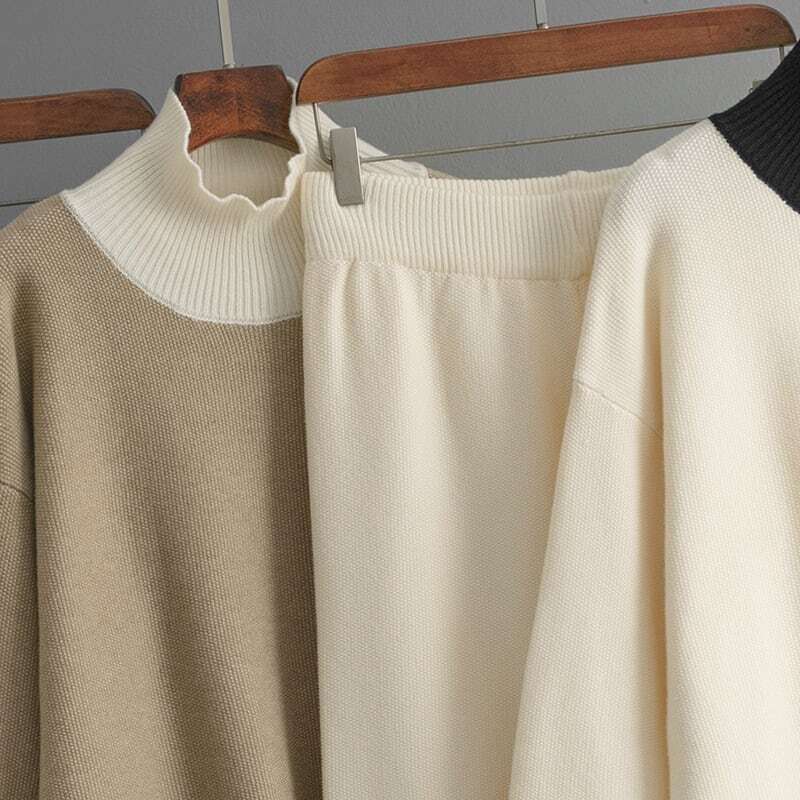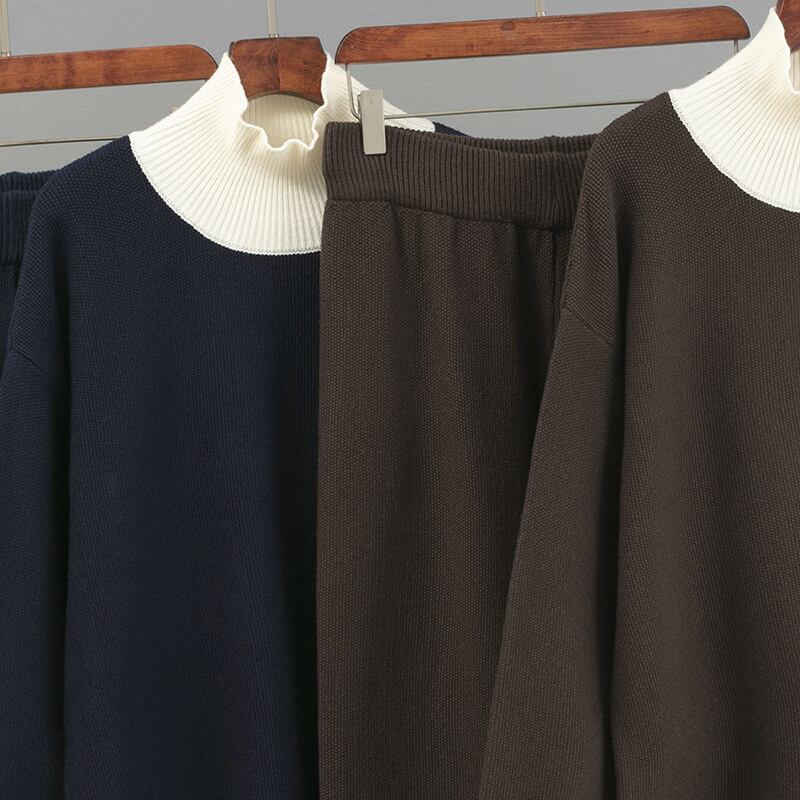 【set】配色ニットセーター×ワイドパンツ5色 HK02166