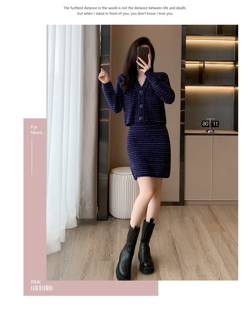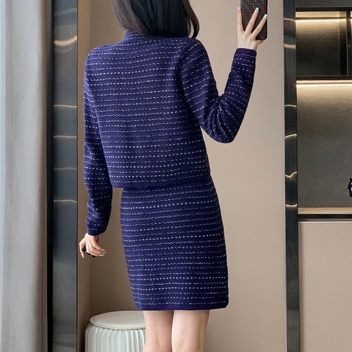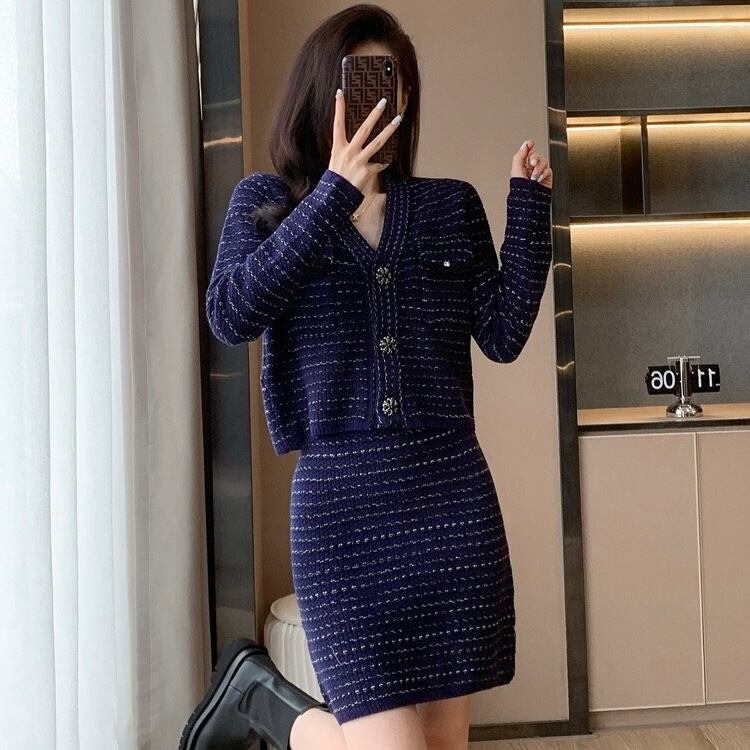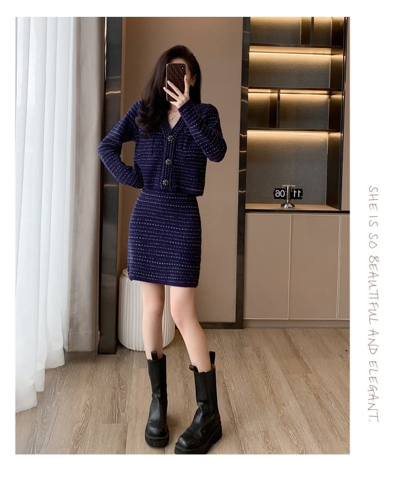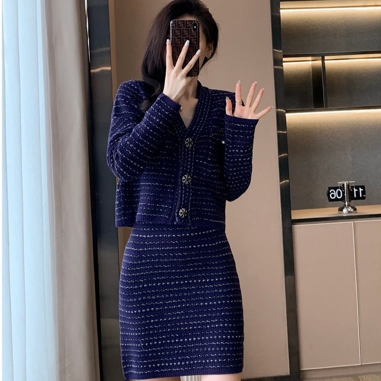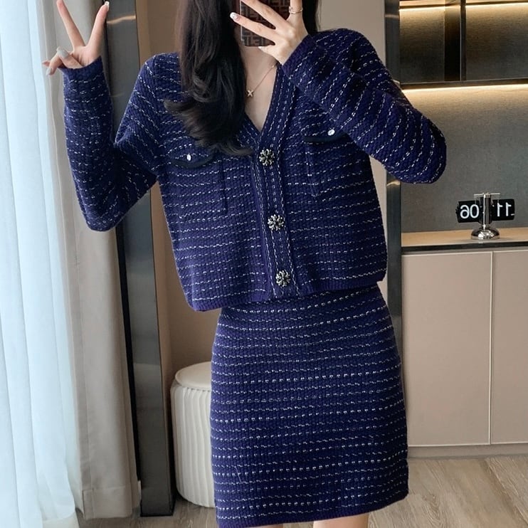 【set】フレンチニットカーディガンxスカート HS2601