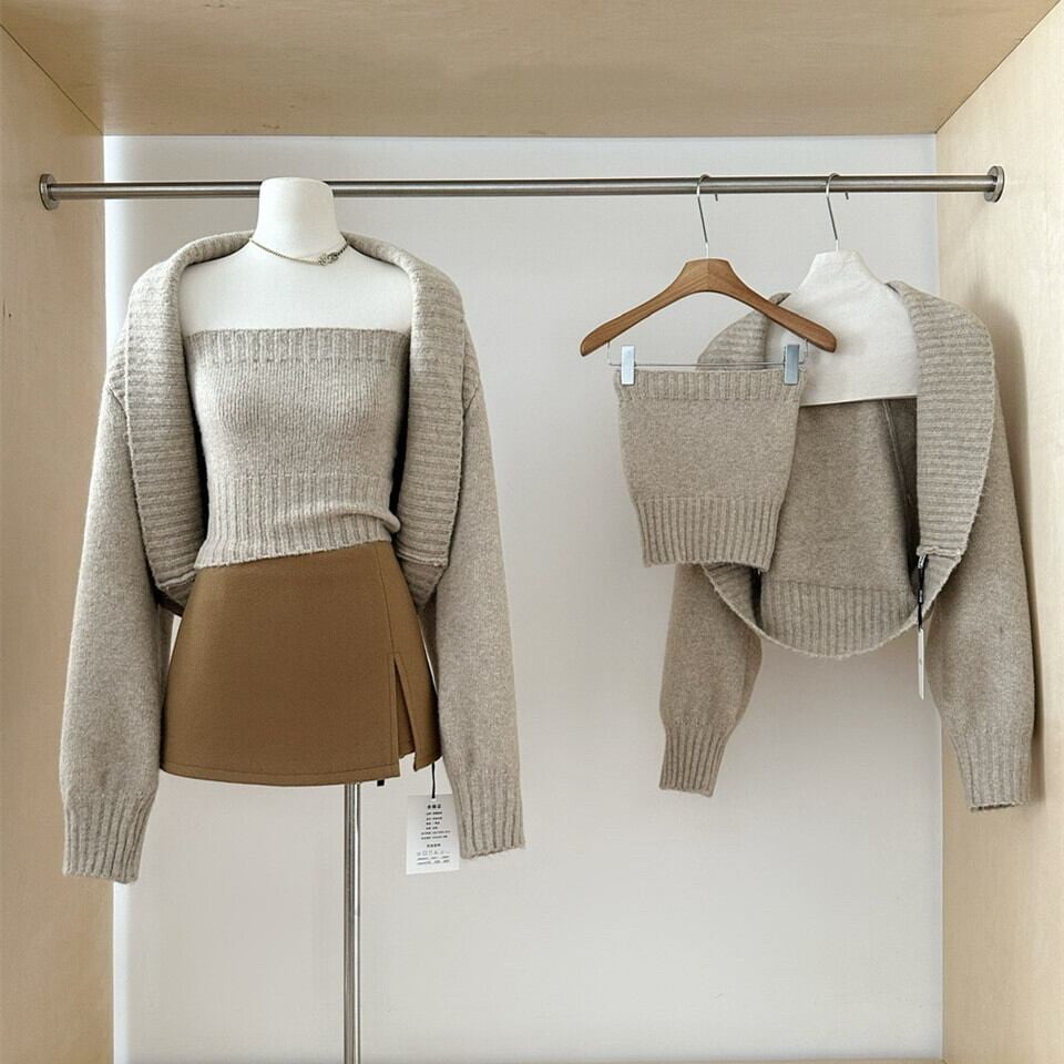 【set】ニットカーディガン×ニットベアトップ HK02170