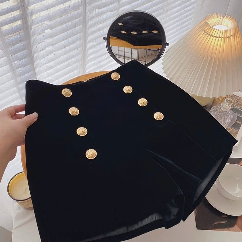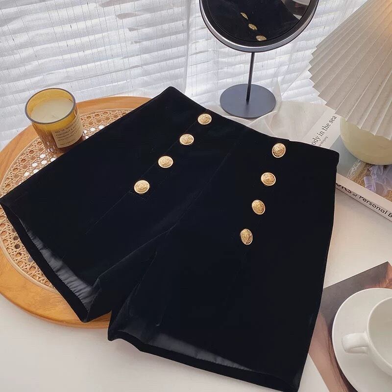 【bottoms】ボタンデザインベルベットショートパンツ HS2604