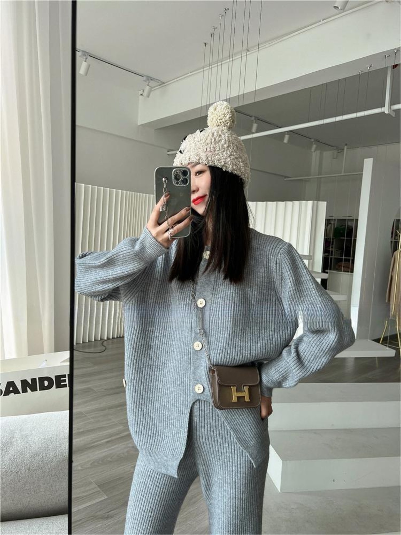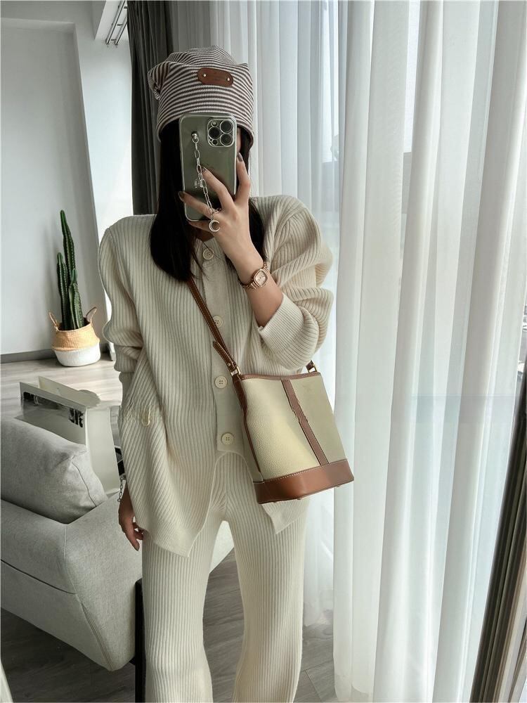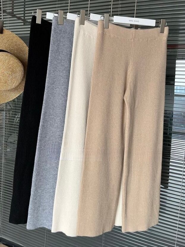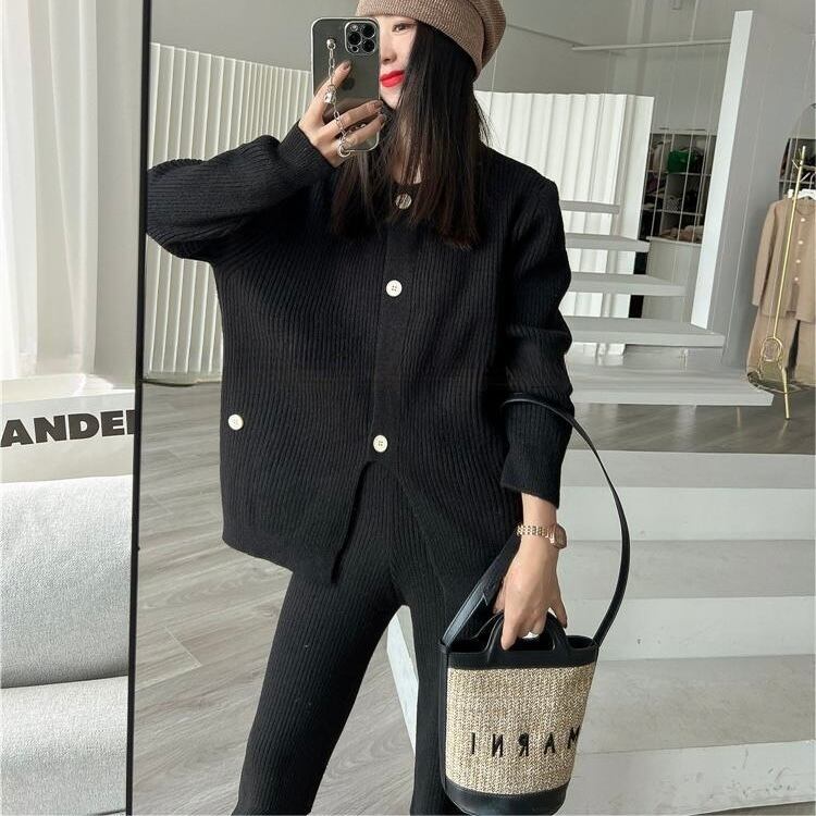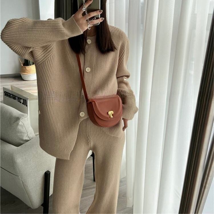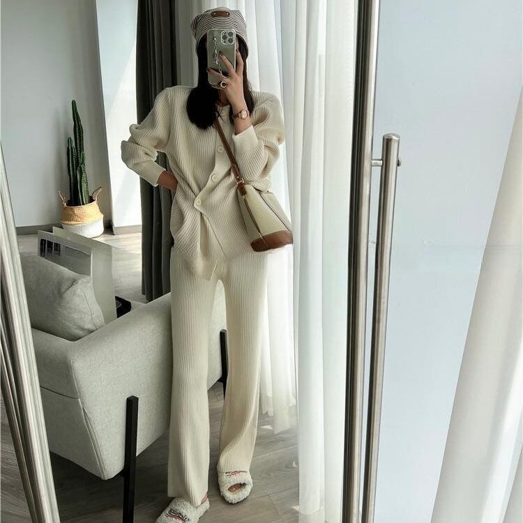 【set】ニットボタンカーディガン×ニットワイドパンツ4色 HK02173