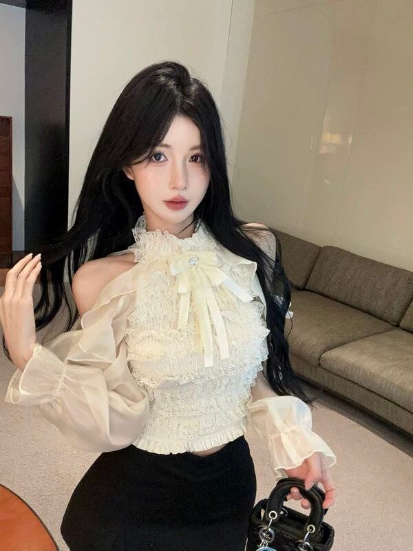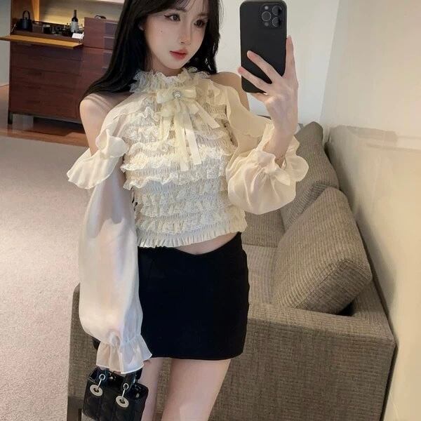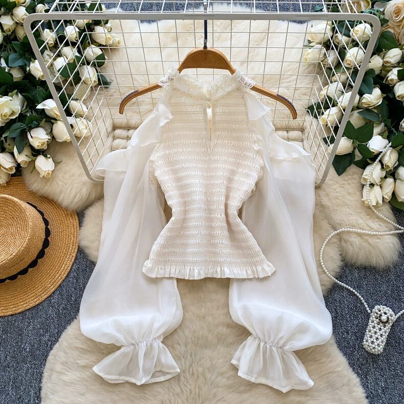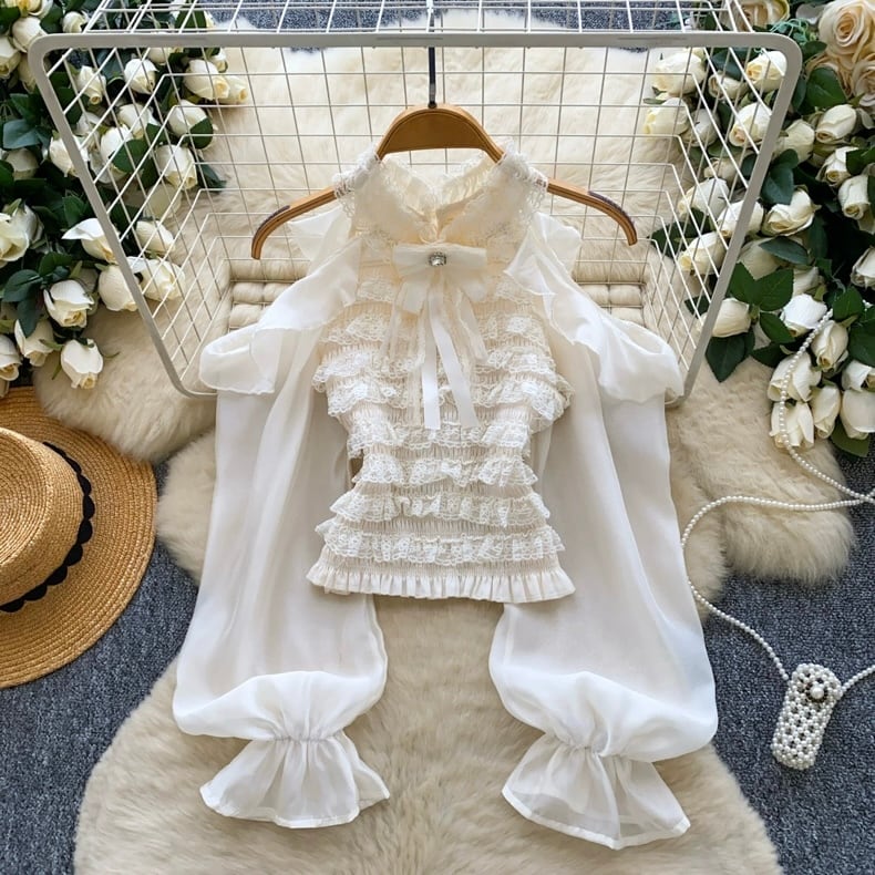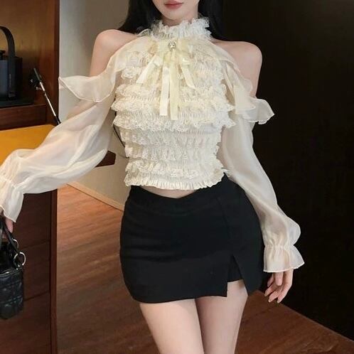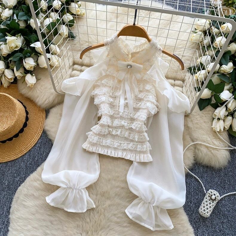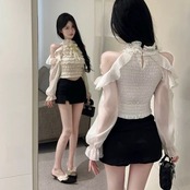 【tops】オープンショルダーレースブラウス3色 HS3000