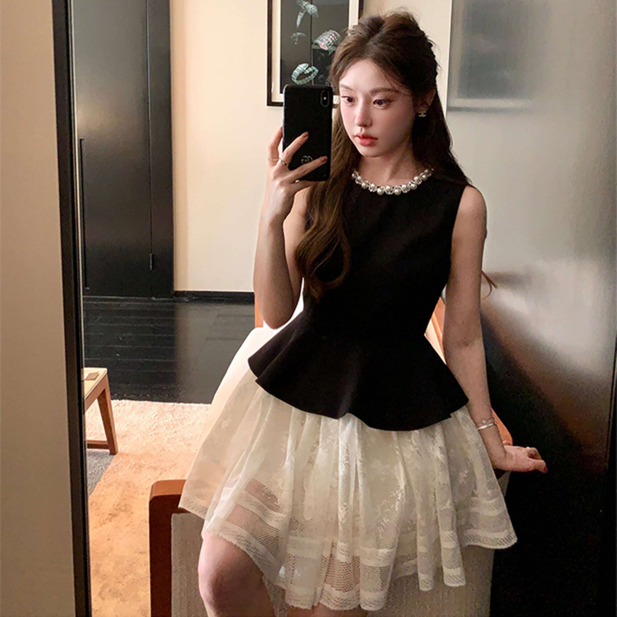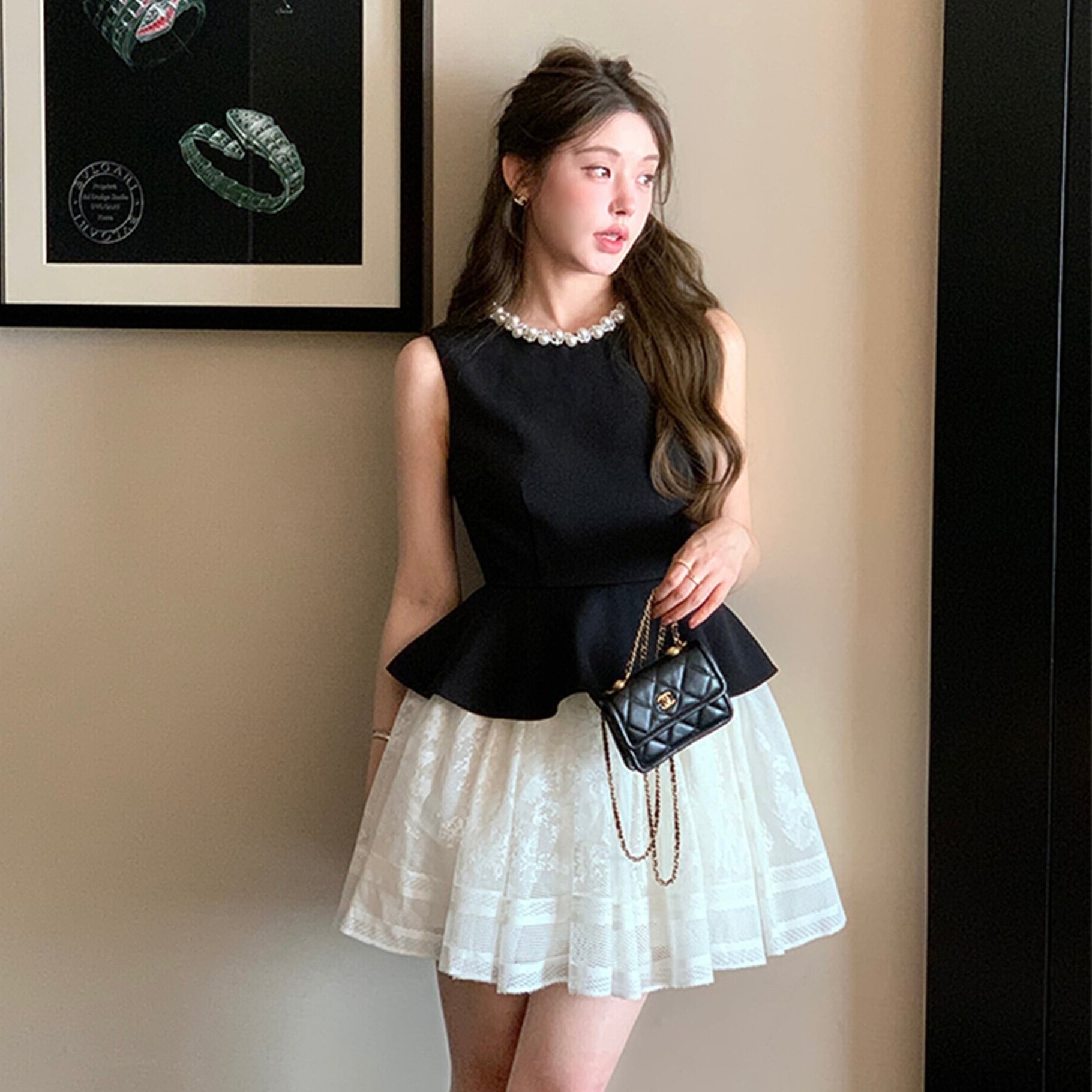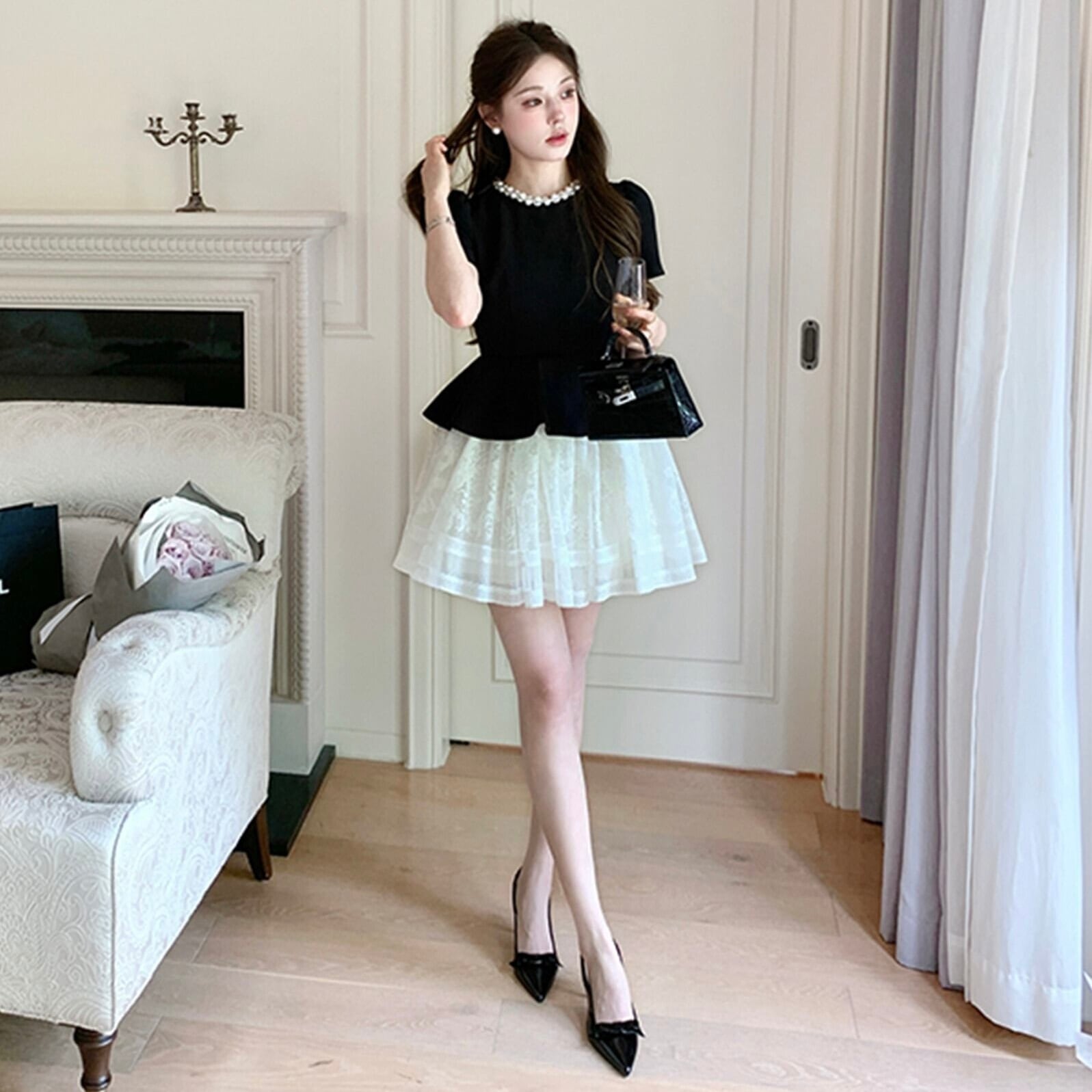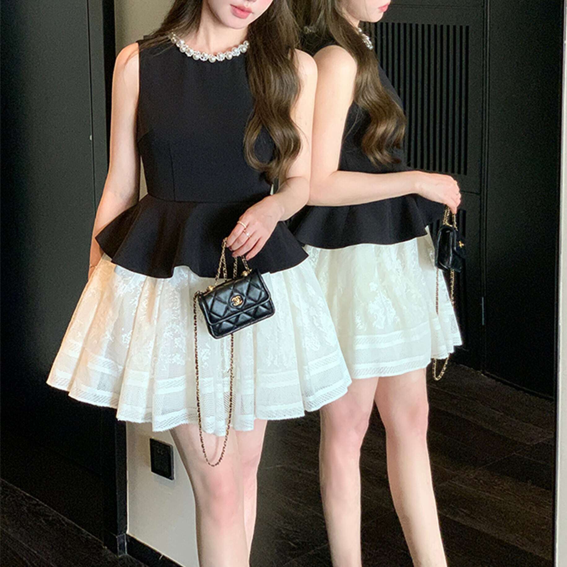 【dress】パールネックレースドッキングミニワンピース2種 HK02184