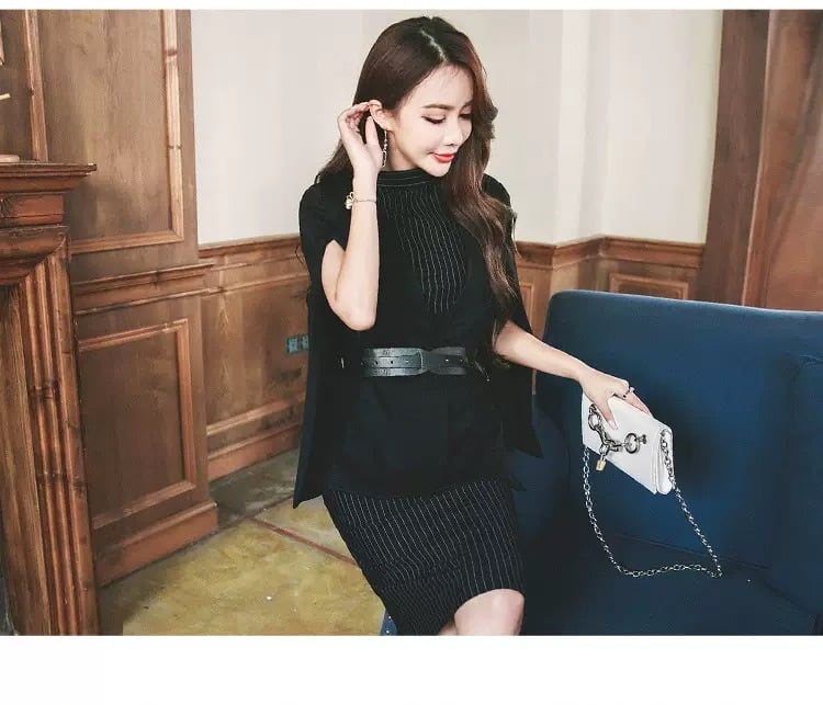 【set】ベルト付きケープコートxワンピース HO1101