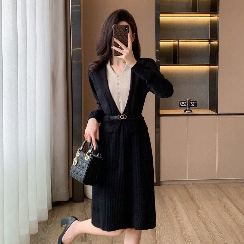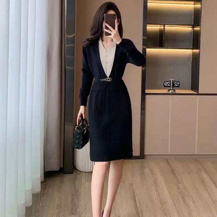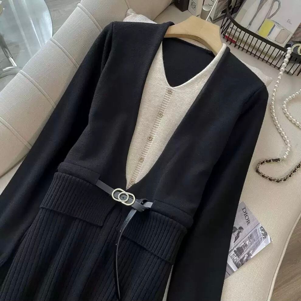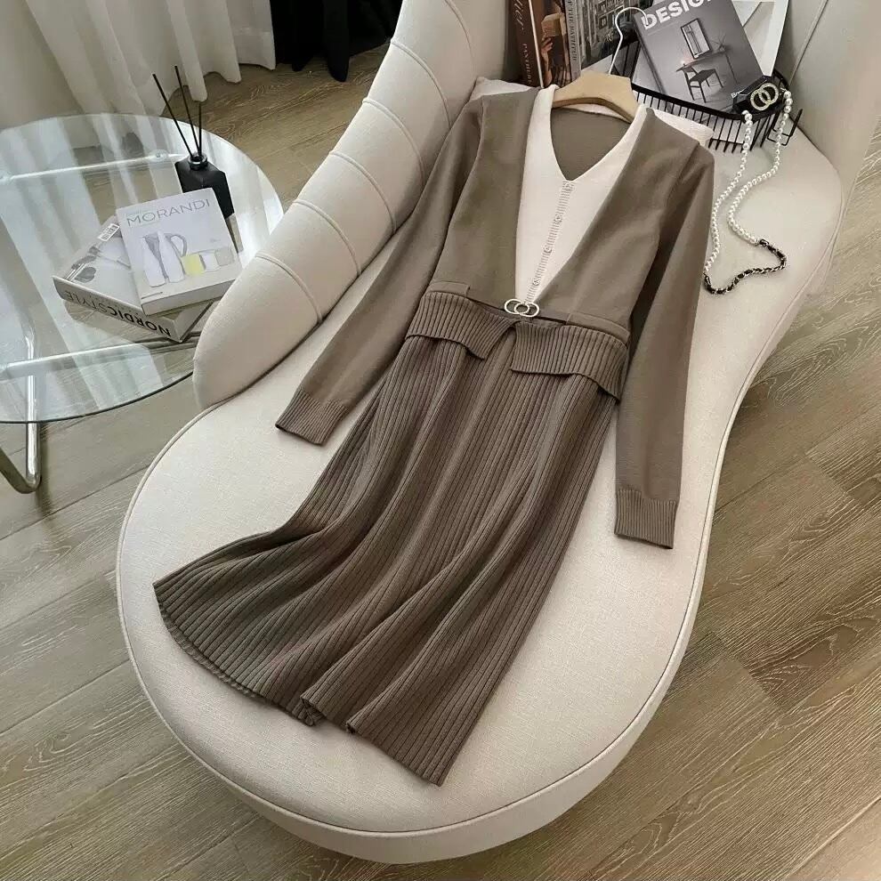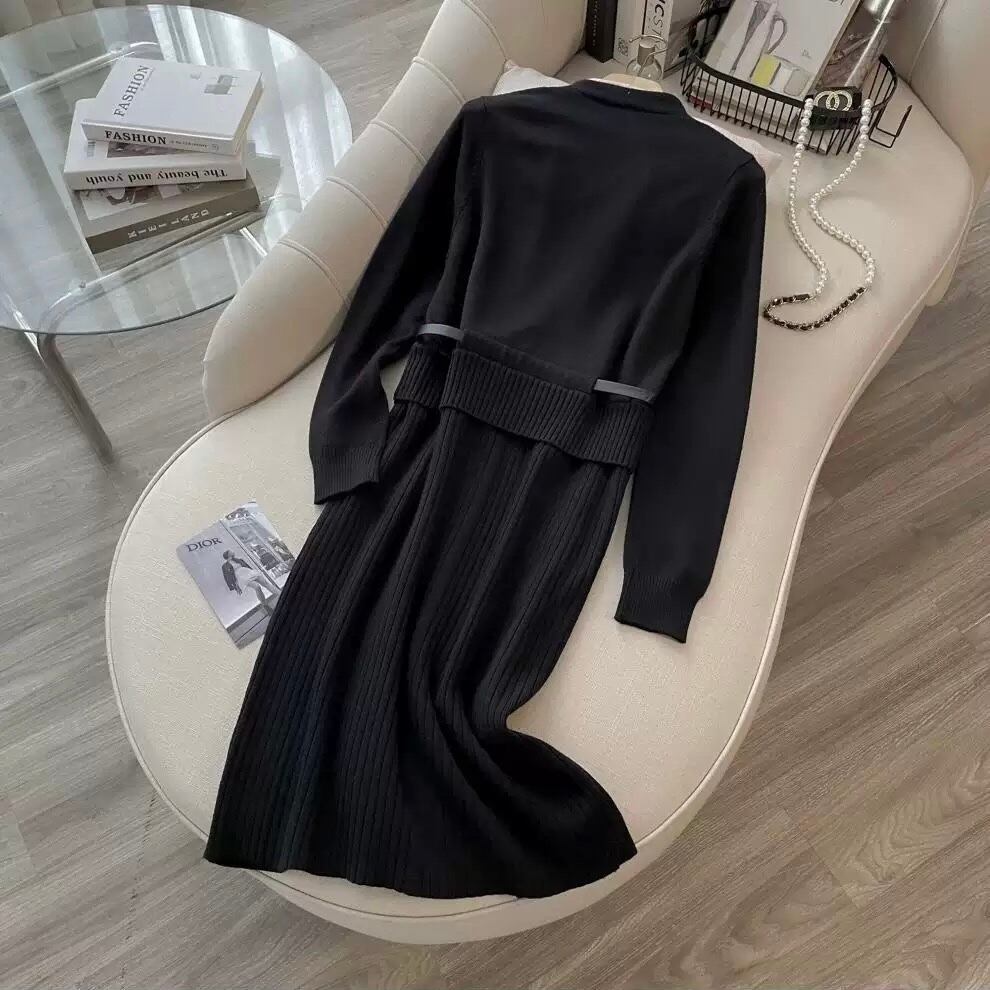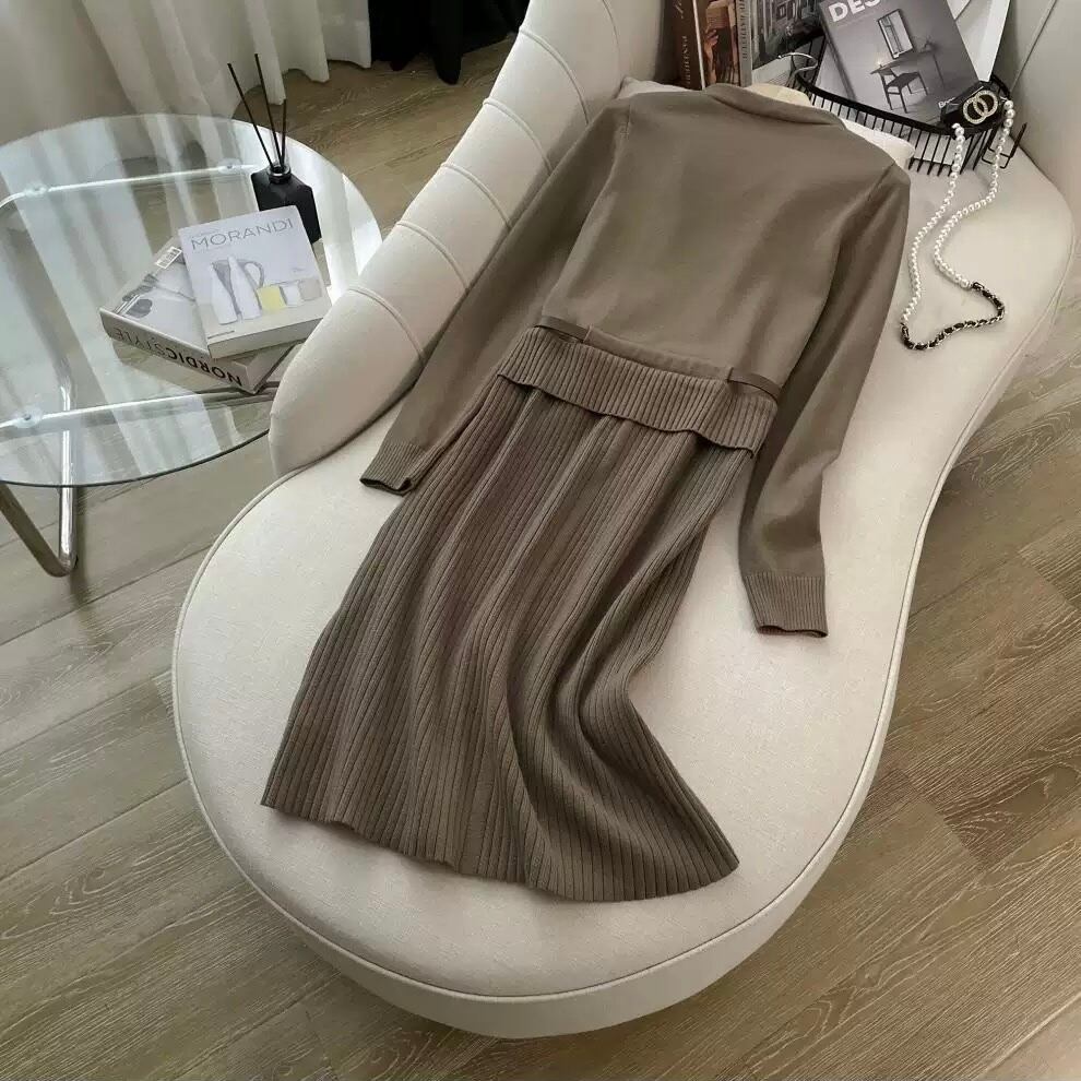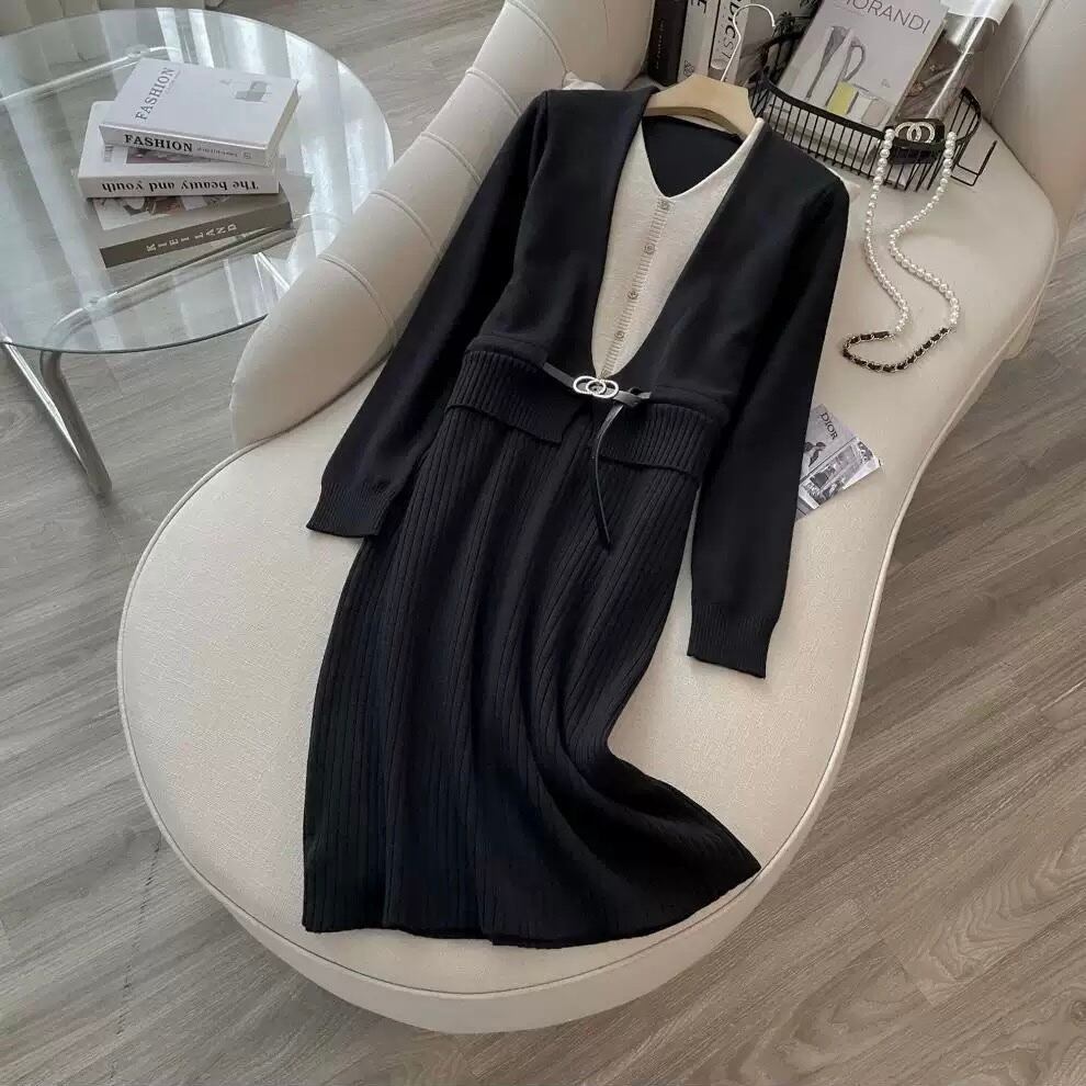 【dress】レイヤード風配色ニットワンピース2色 HO1202