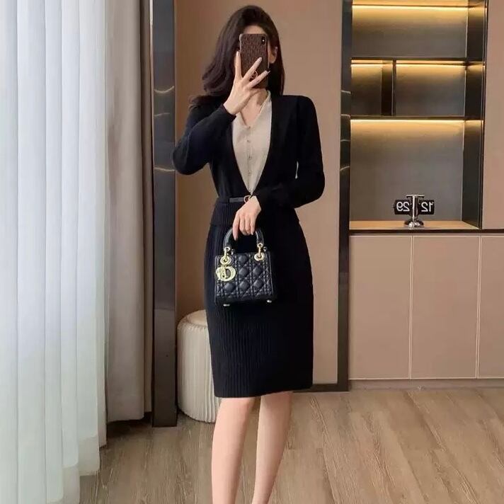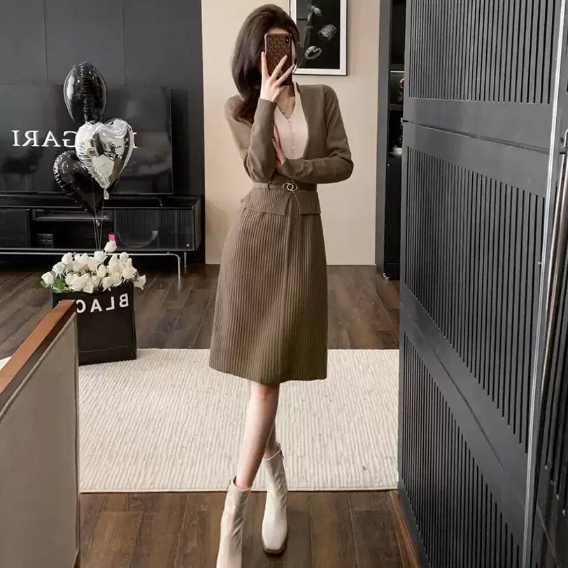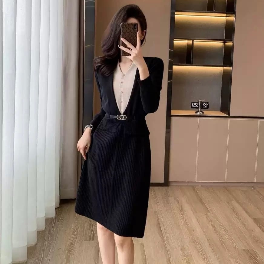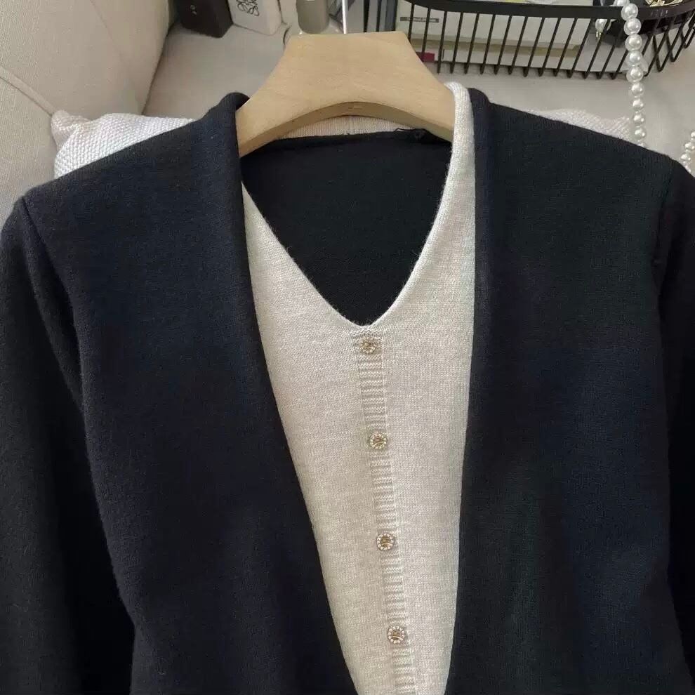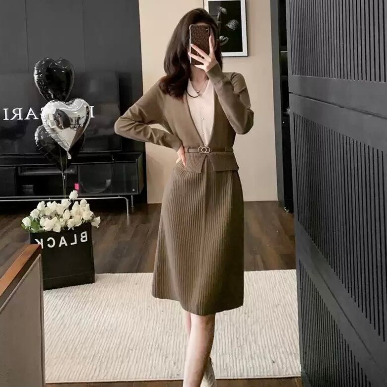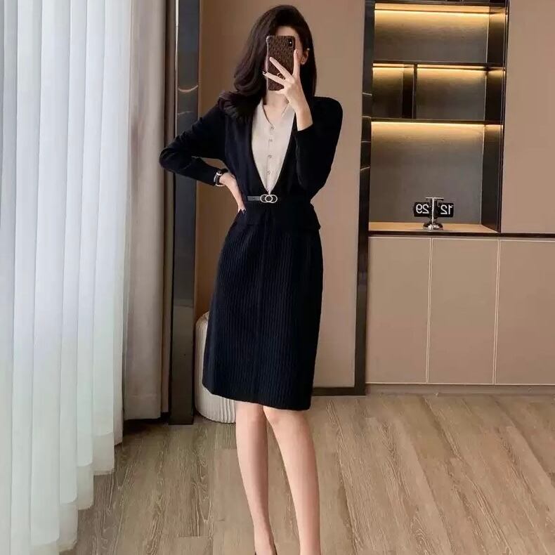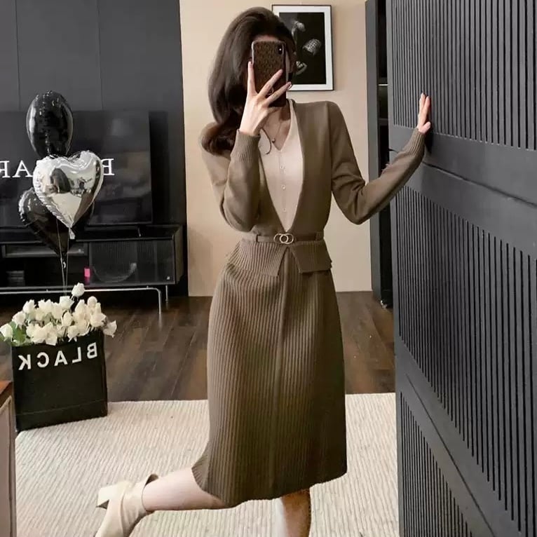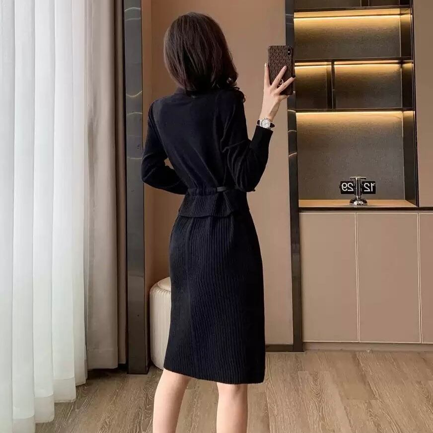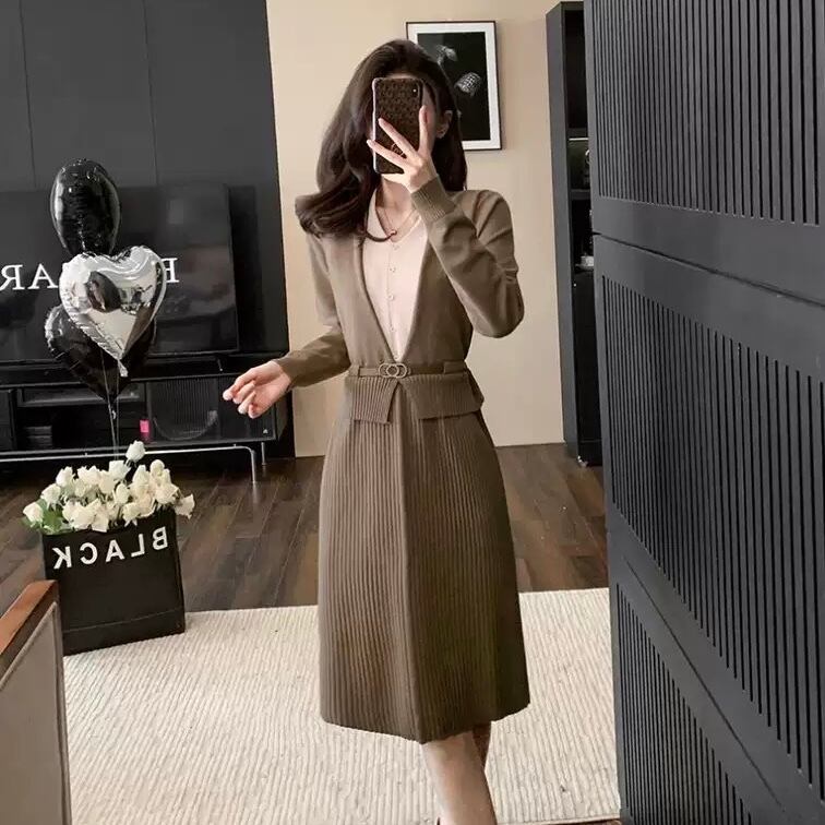 【dress】レイヤード風配色ニットワンピース2色 HO1202