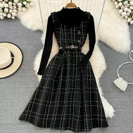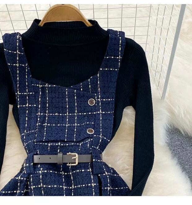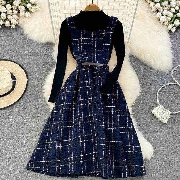 【set】ニットトップスxキャミワンピース2色 HO1206