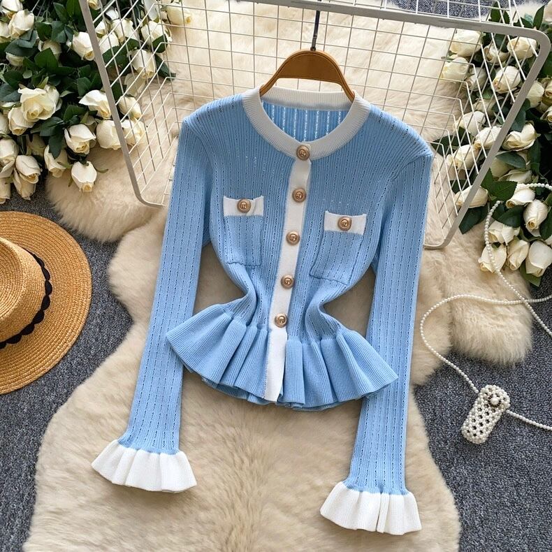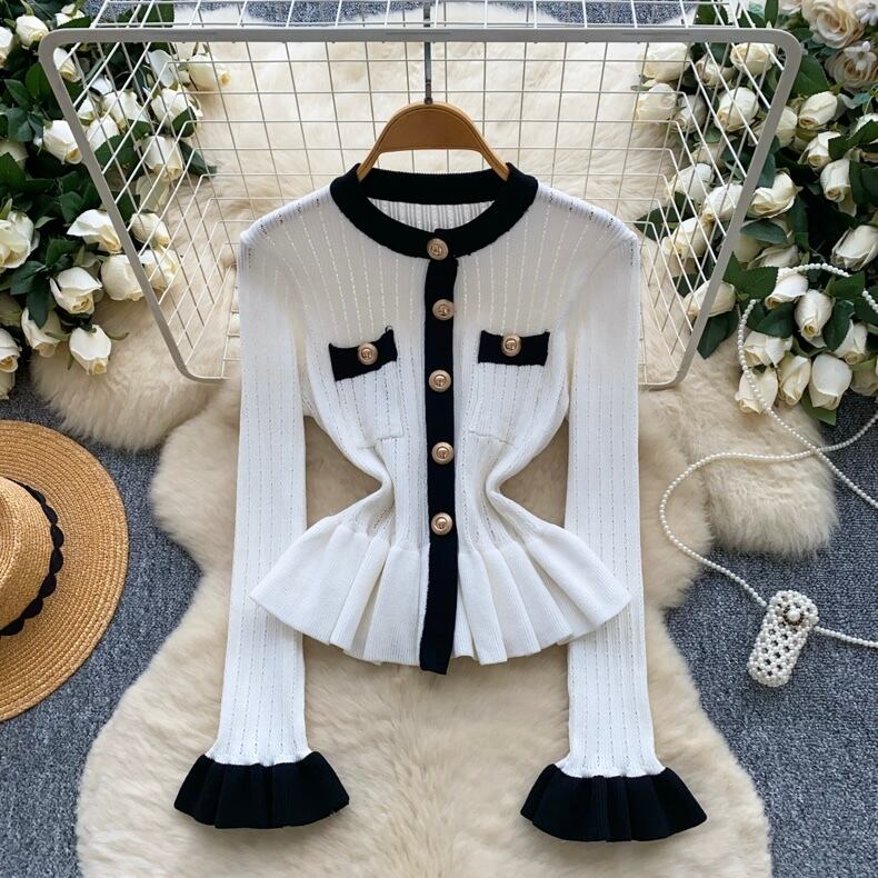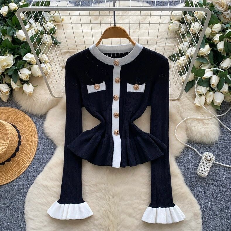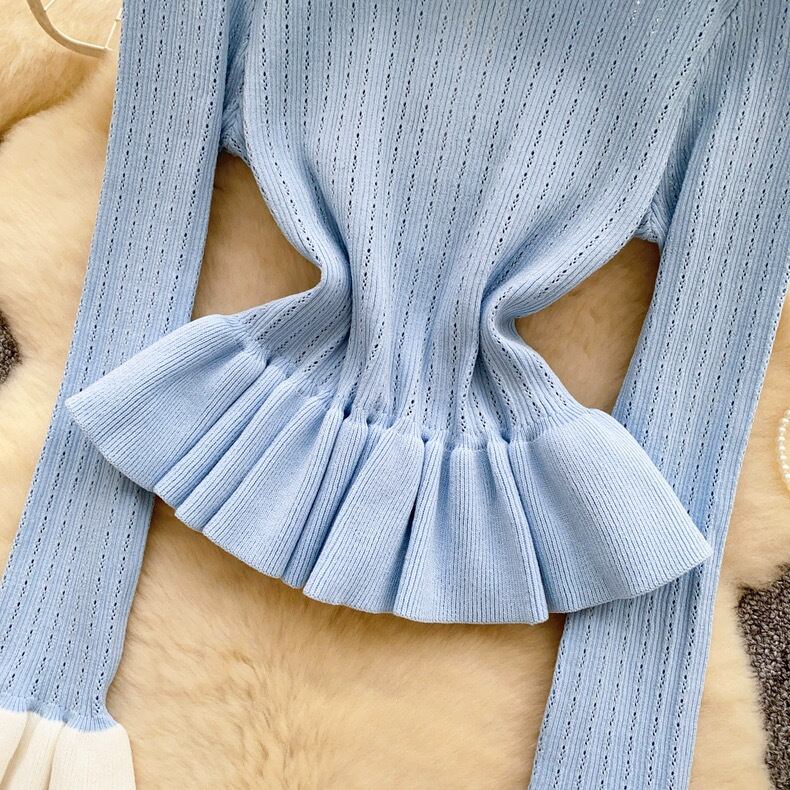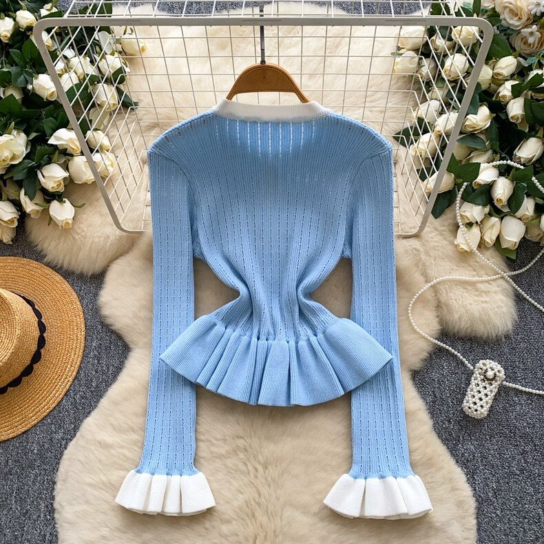 【tops】フリル配色ニットトップス3色 HO1302