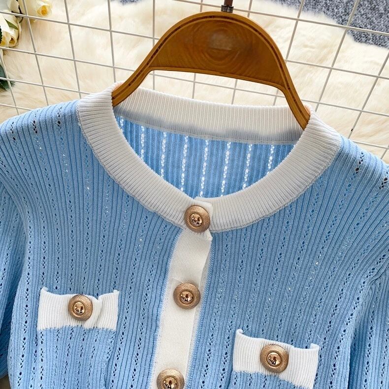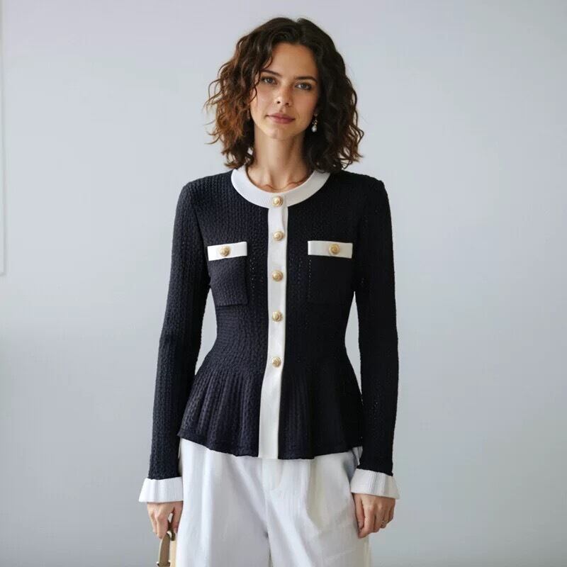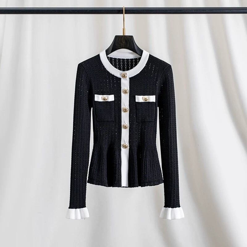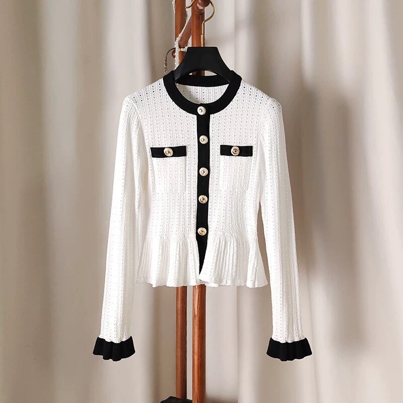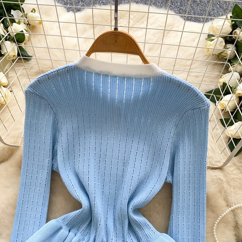 【tops】フリル配色ニットトップス3色 HO1302