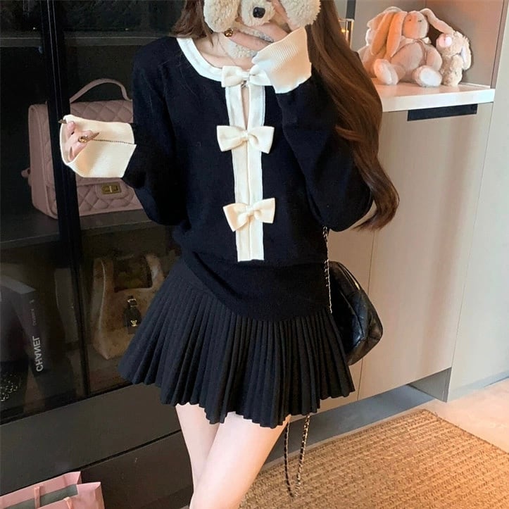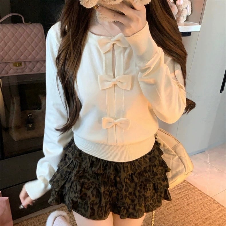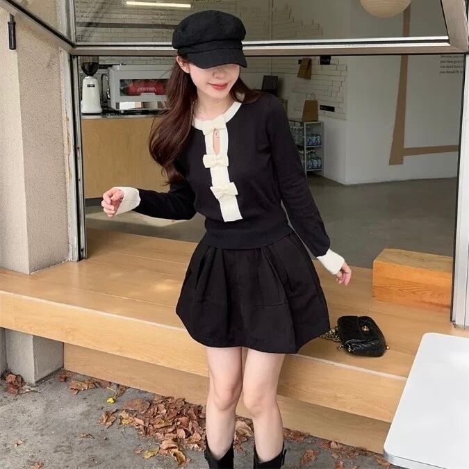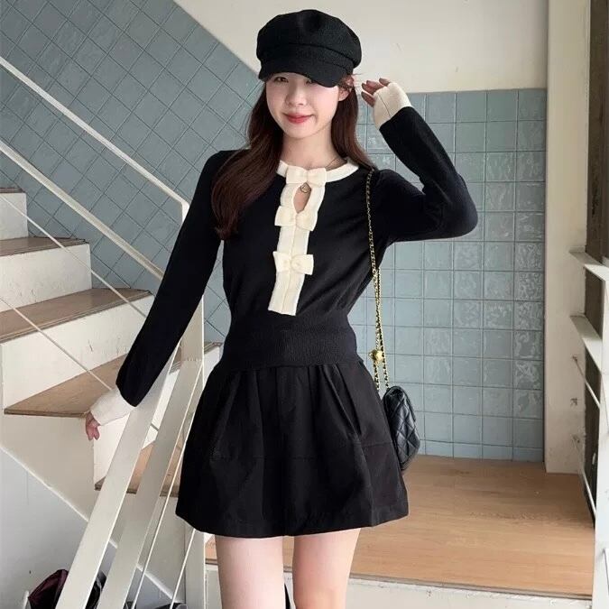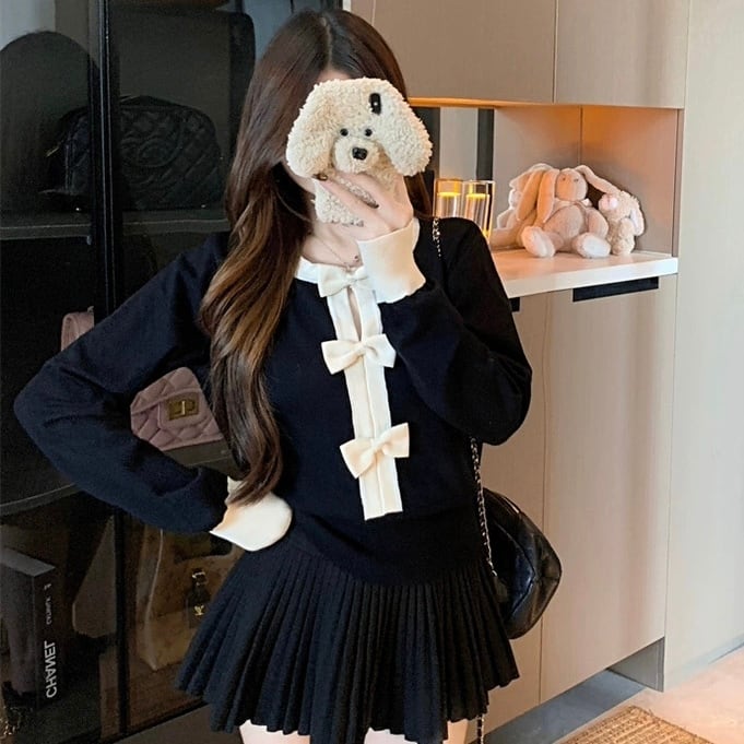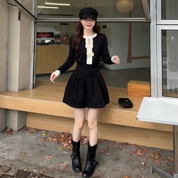 【tops】リボンニットトップス2色 HO1405