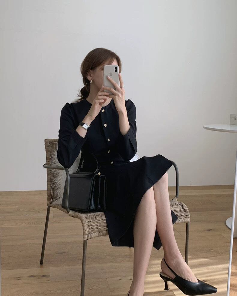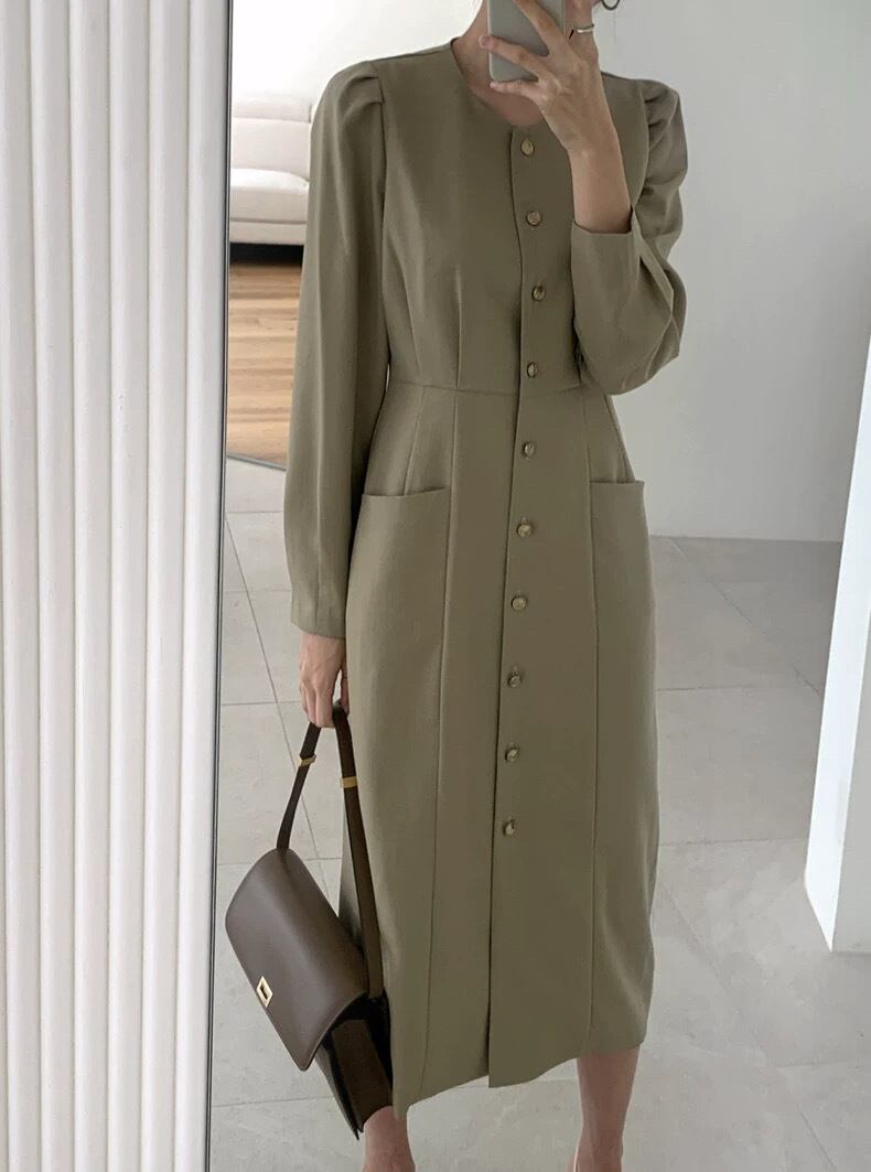 【dress】フロントボタンワンピース2色 HO1507