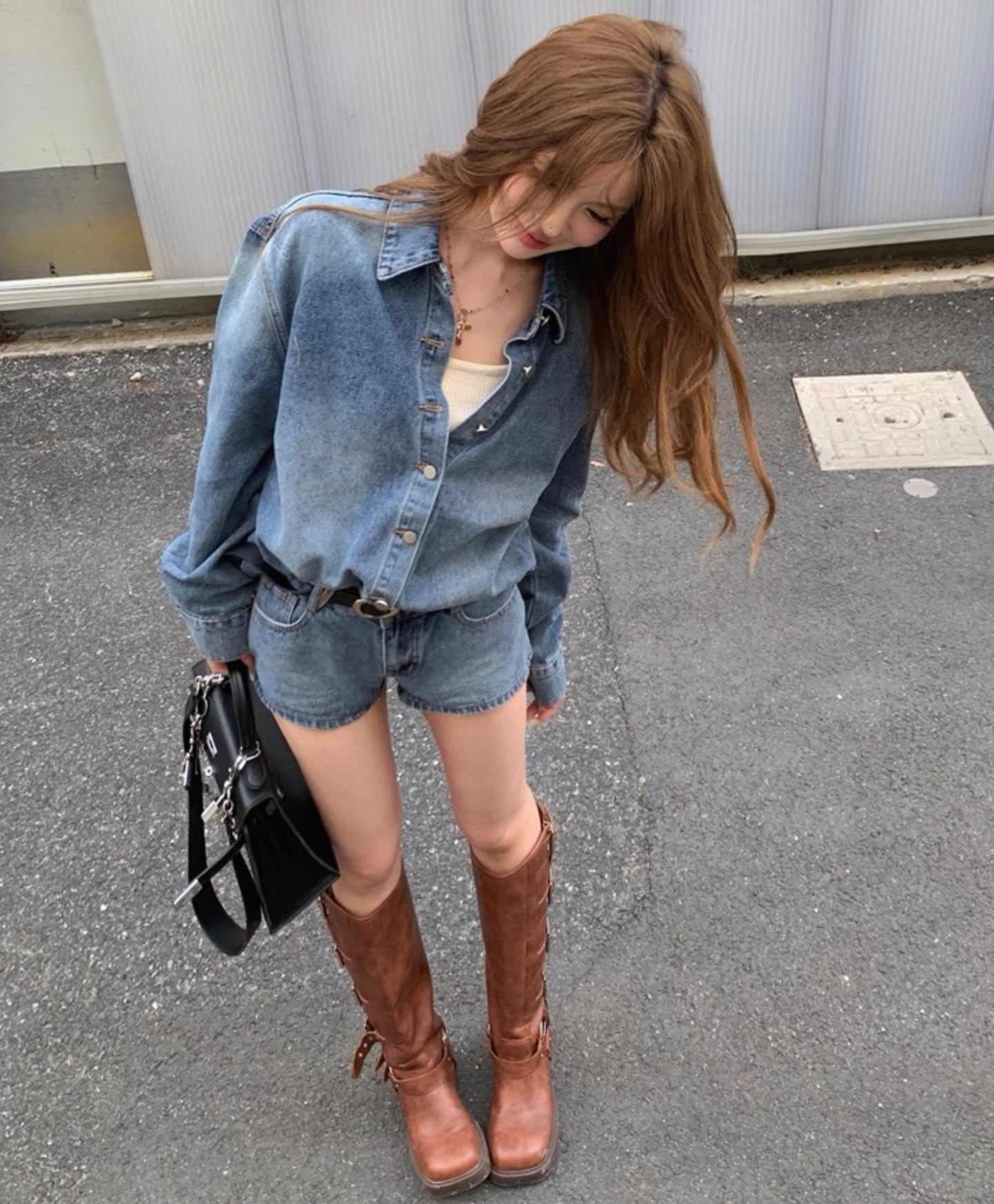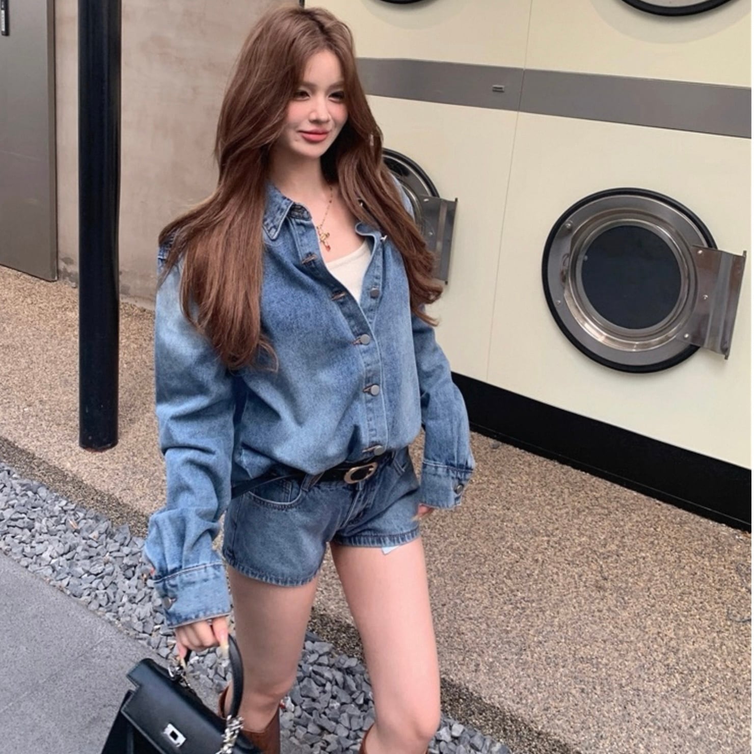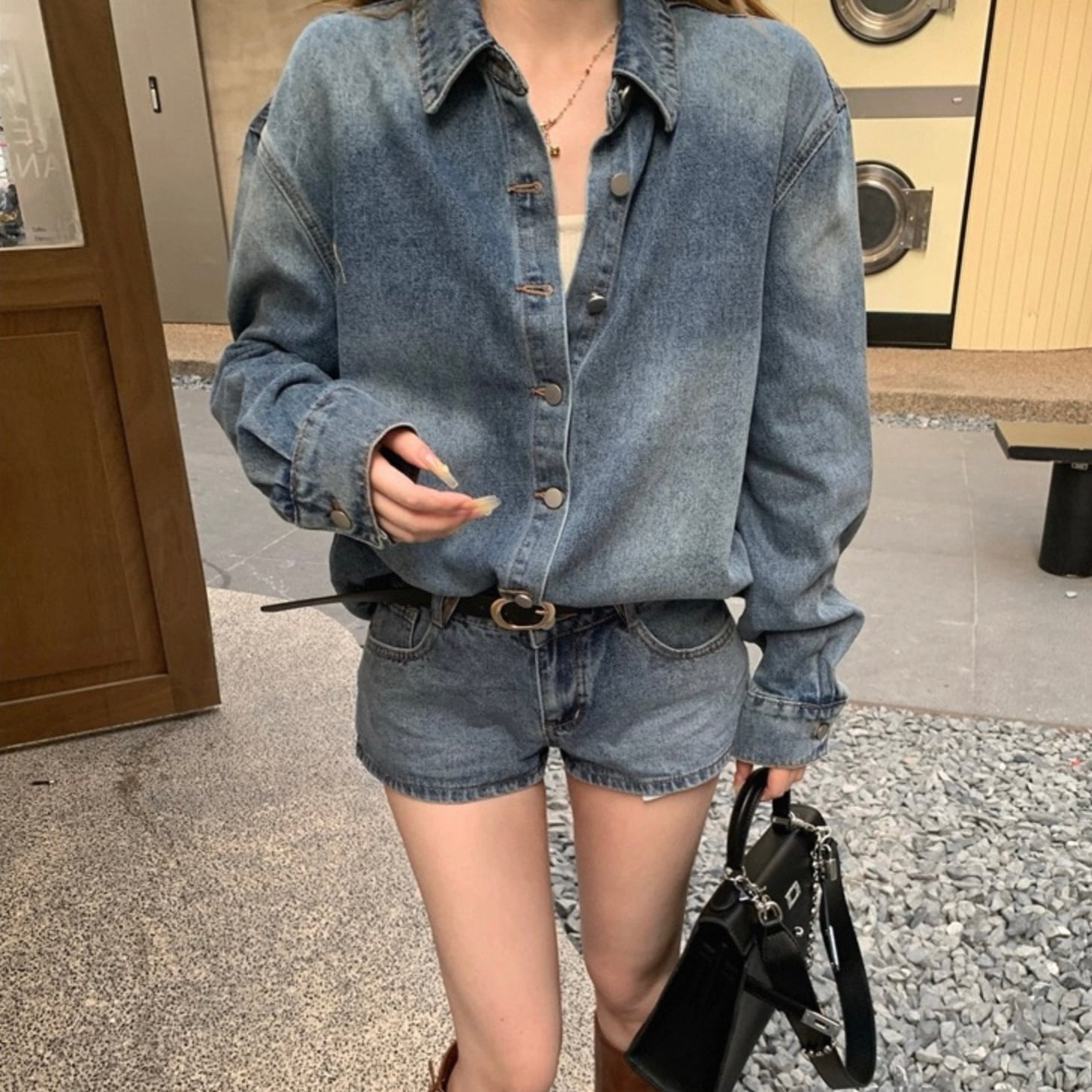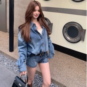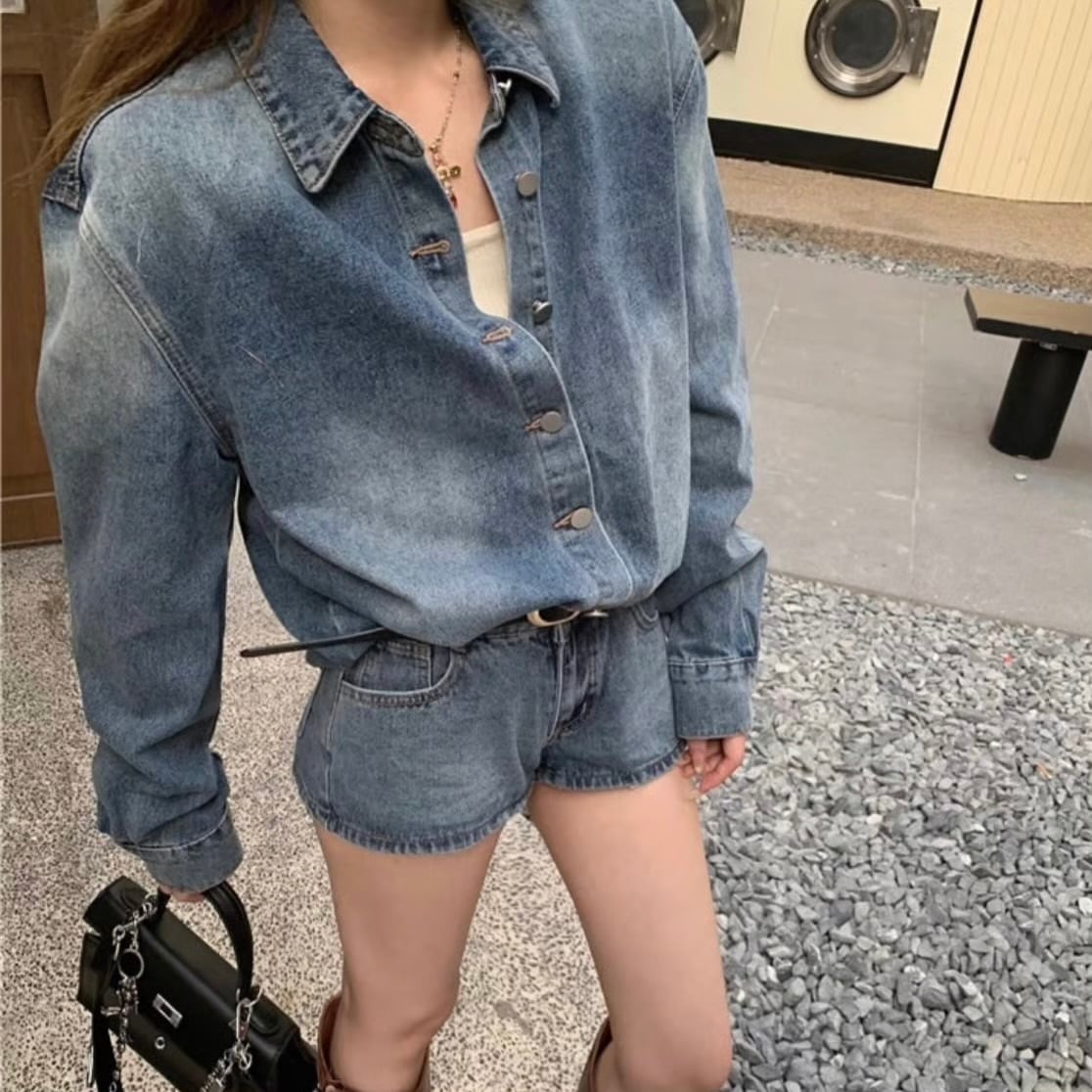 【set】デニムシャツ×デニムショートパンツ HK02194