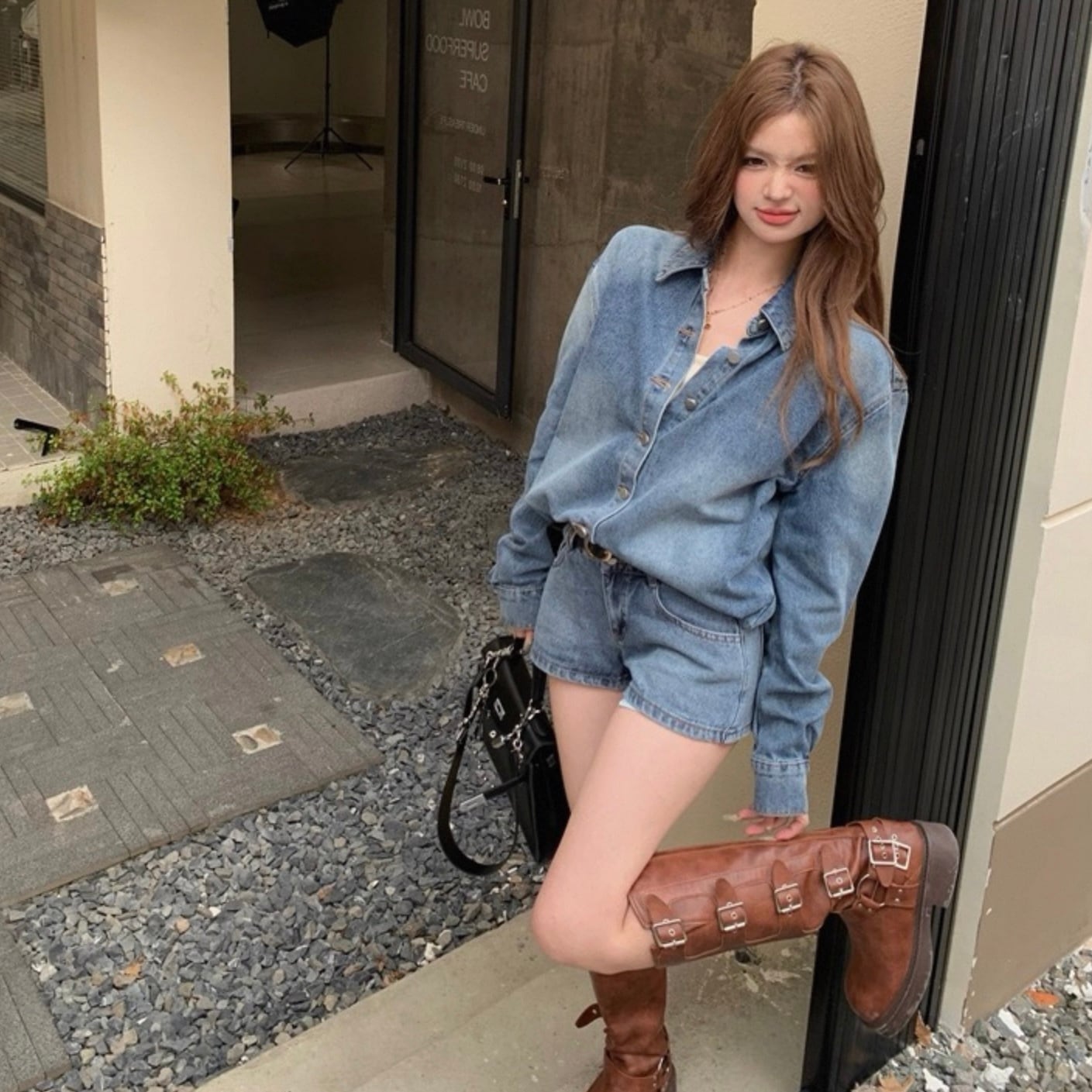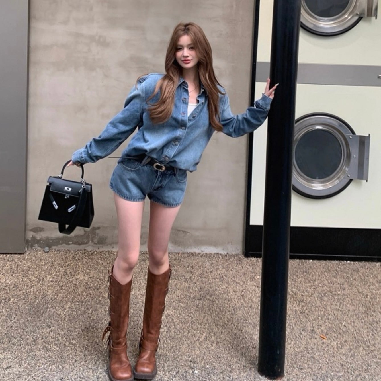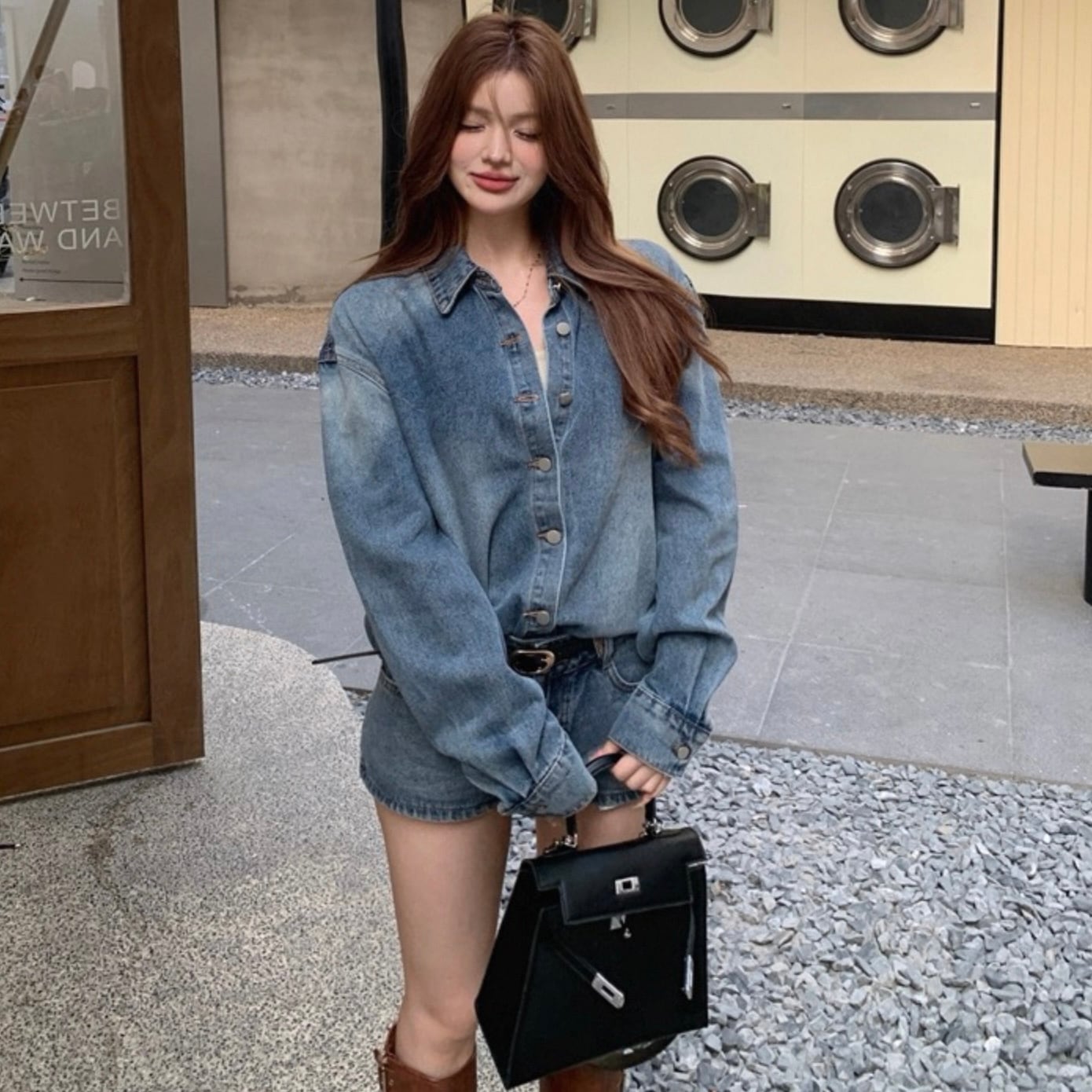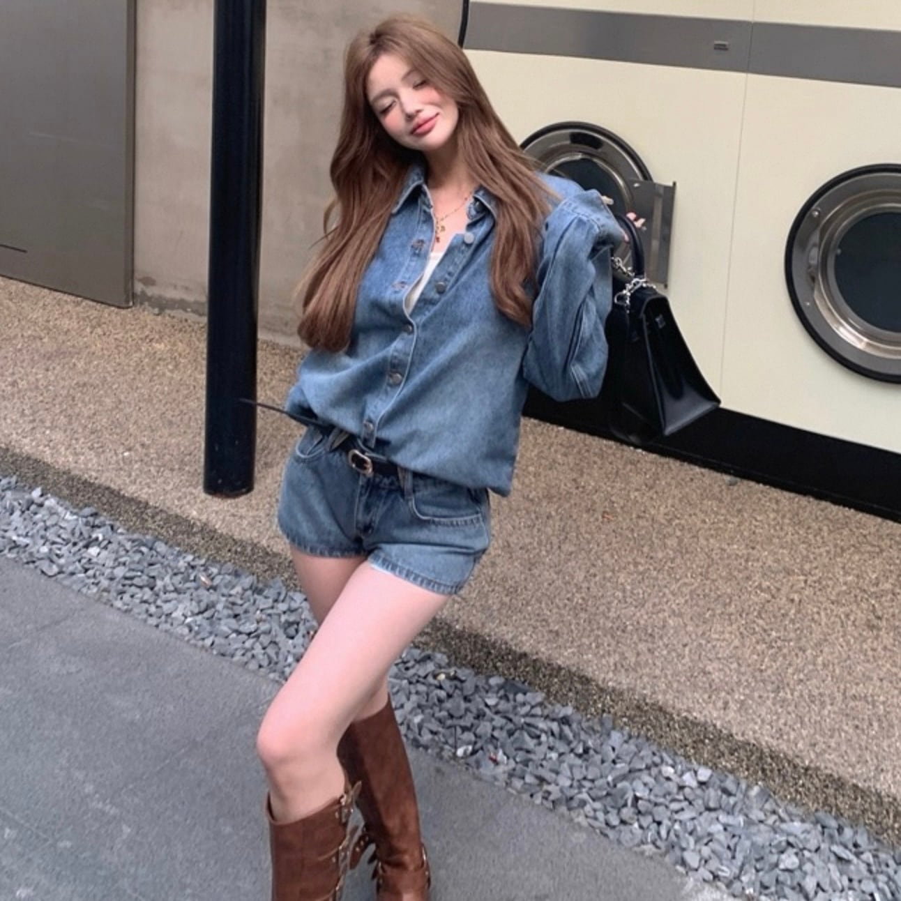 【set】デニムシャツ×デニムショートパンツ HK02194