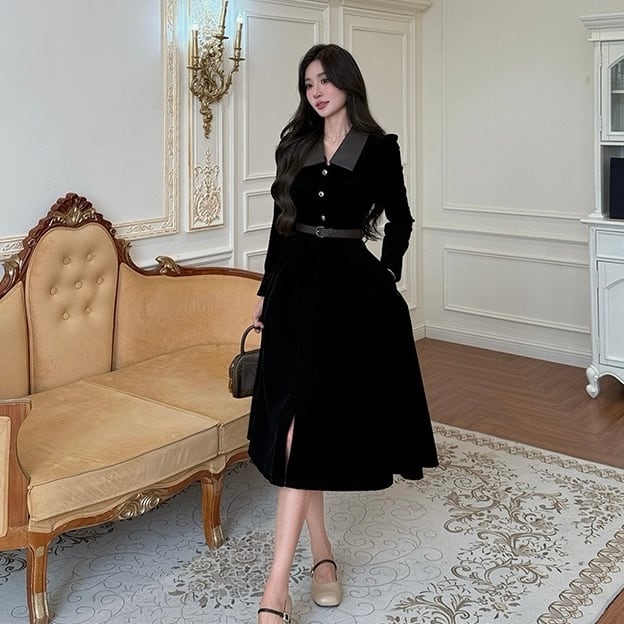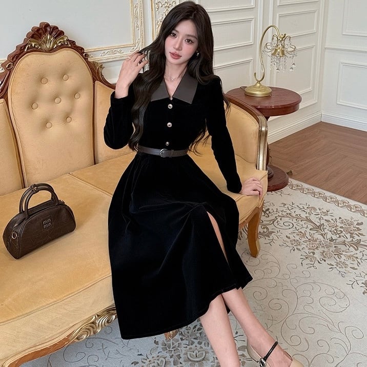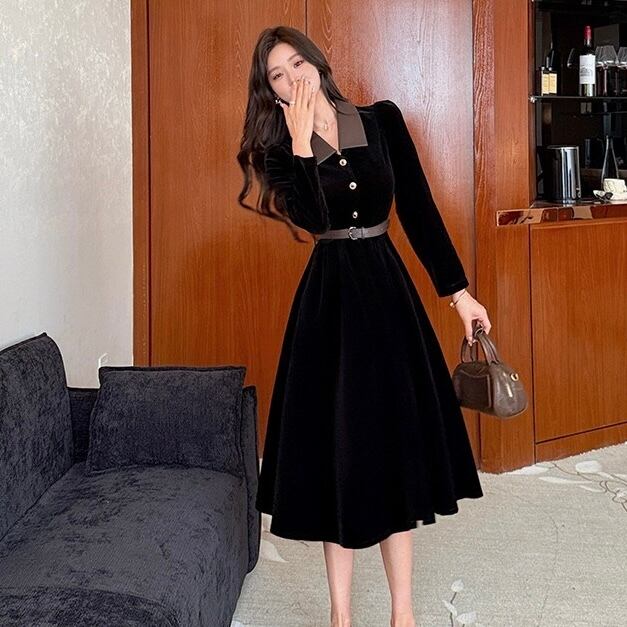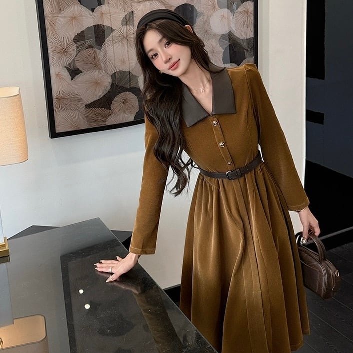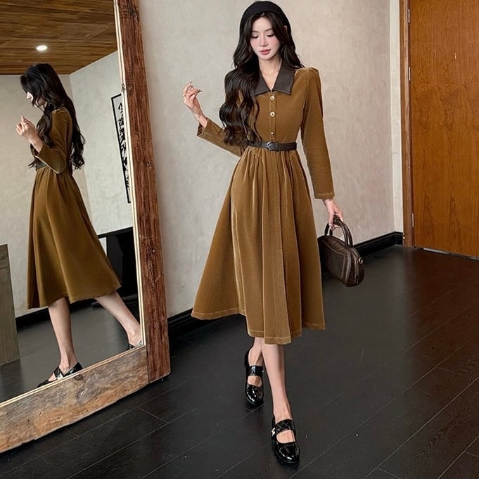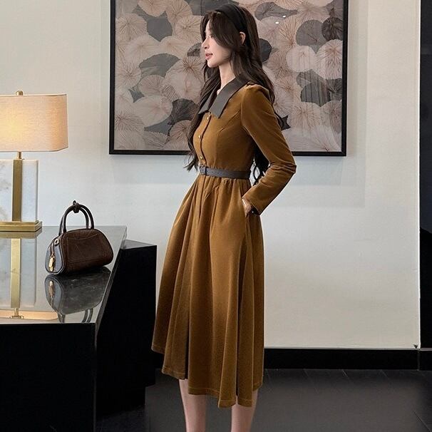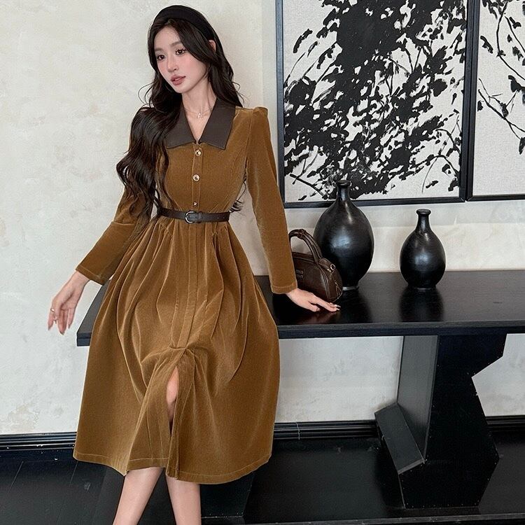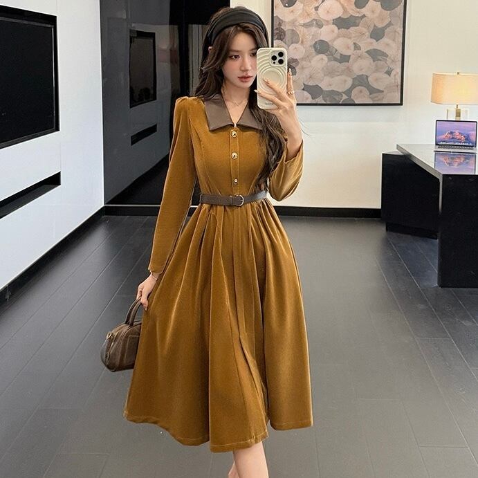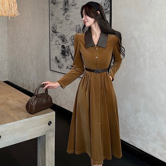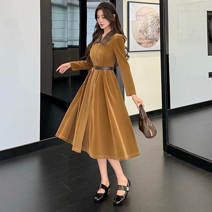 【dress】ベルト付きコーデュロイワンピース2色 HO2303