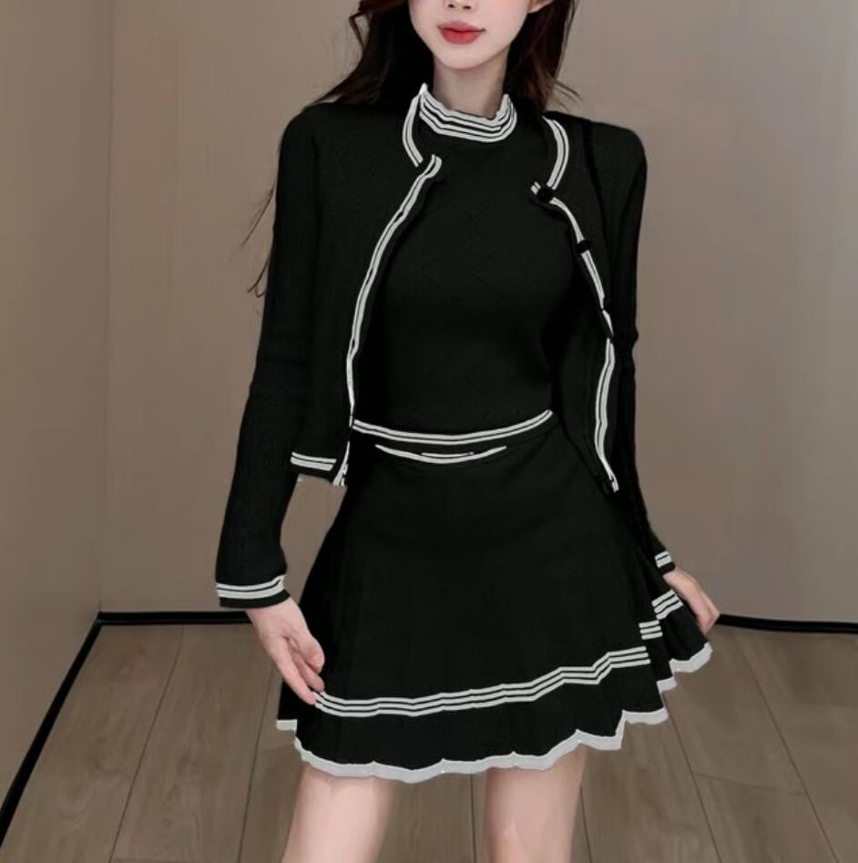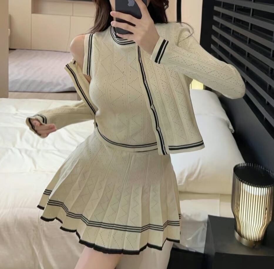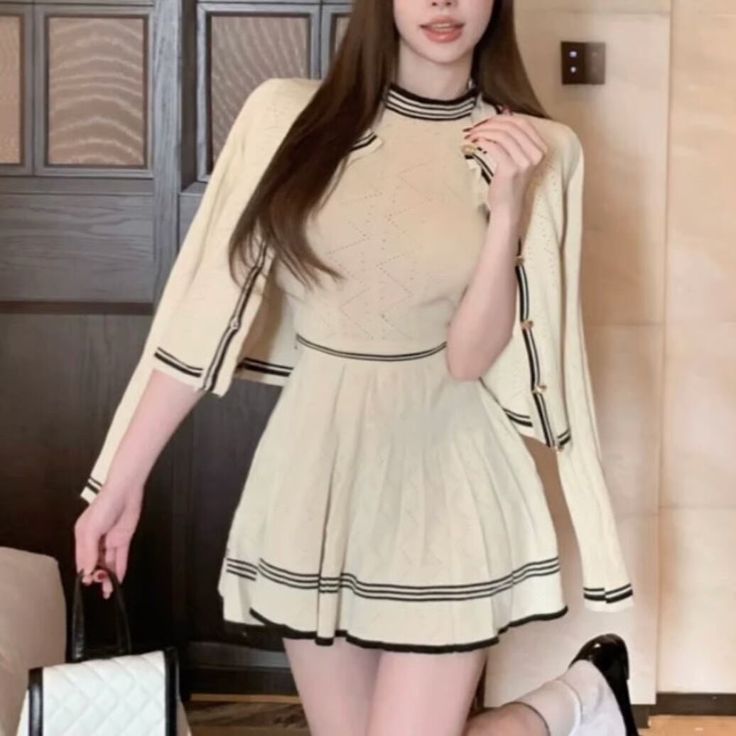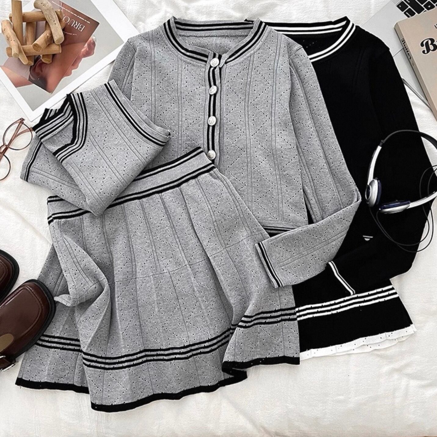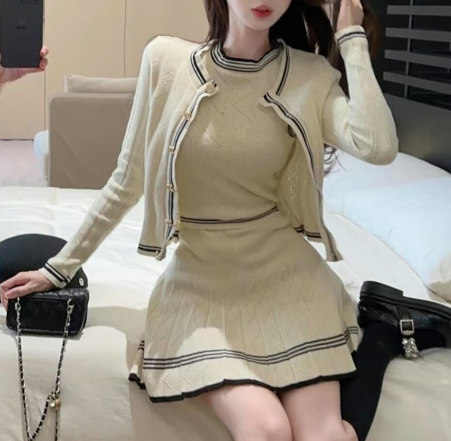 【set】ニットカーディガン×ニットノースリーブ×ニットミニスカート3色 HK0220