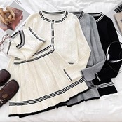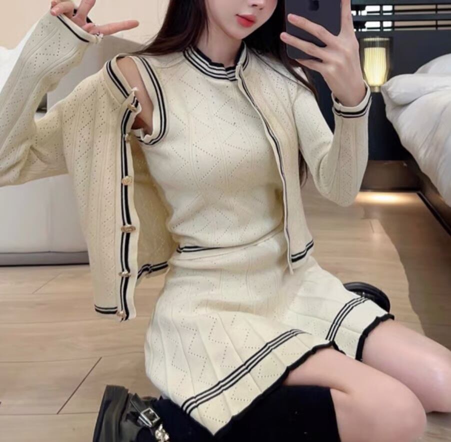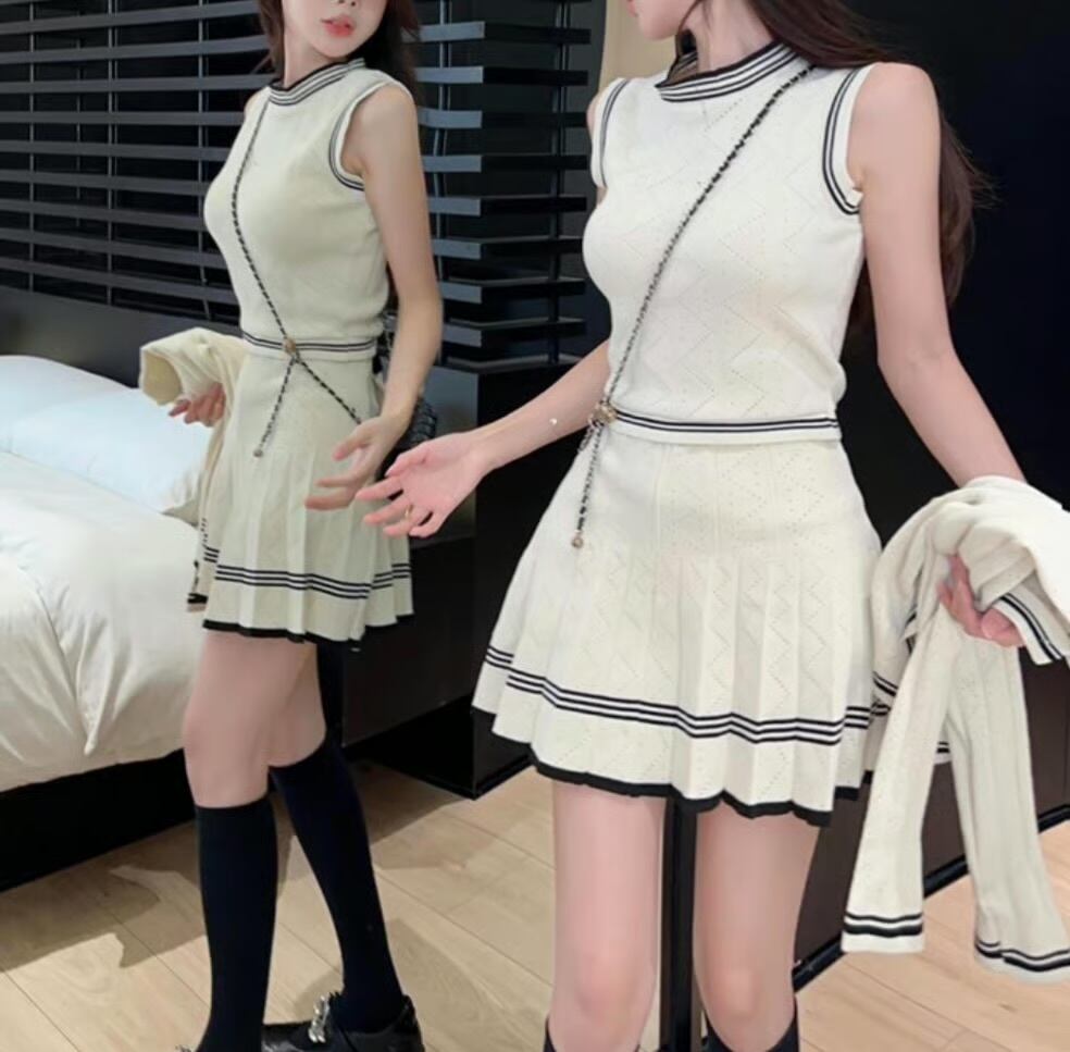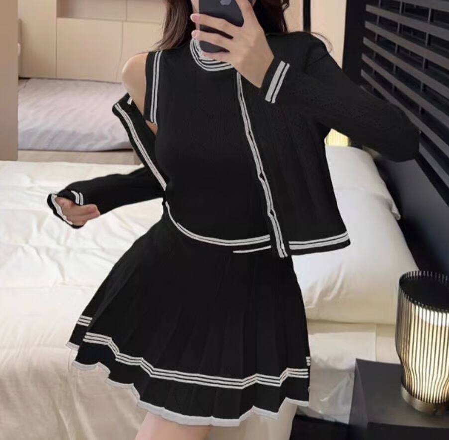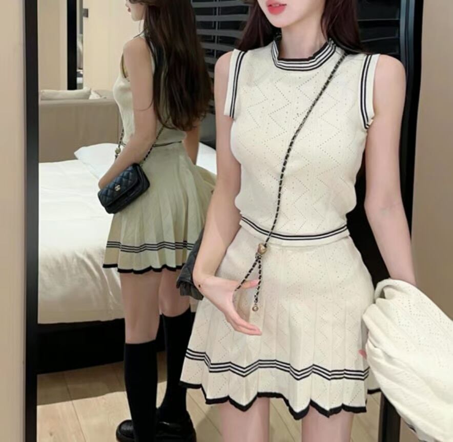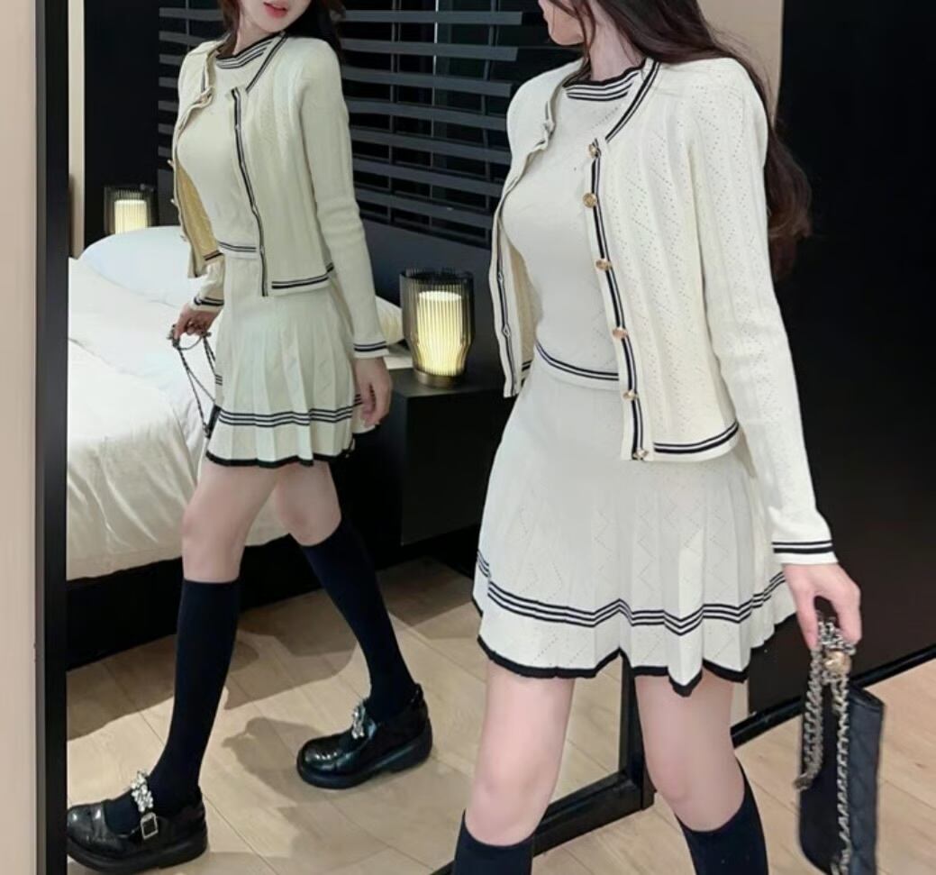 【set】ニットカーディガン×ニットノースリーブ×ニットミニスカート3色 HK0220