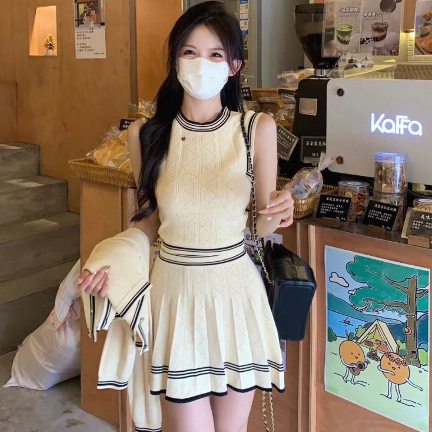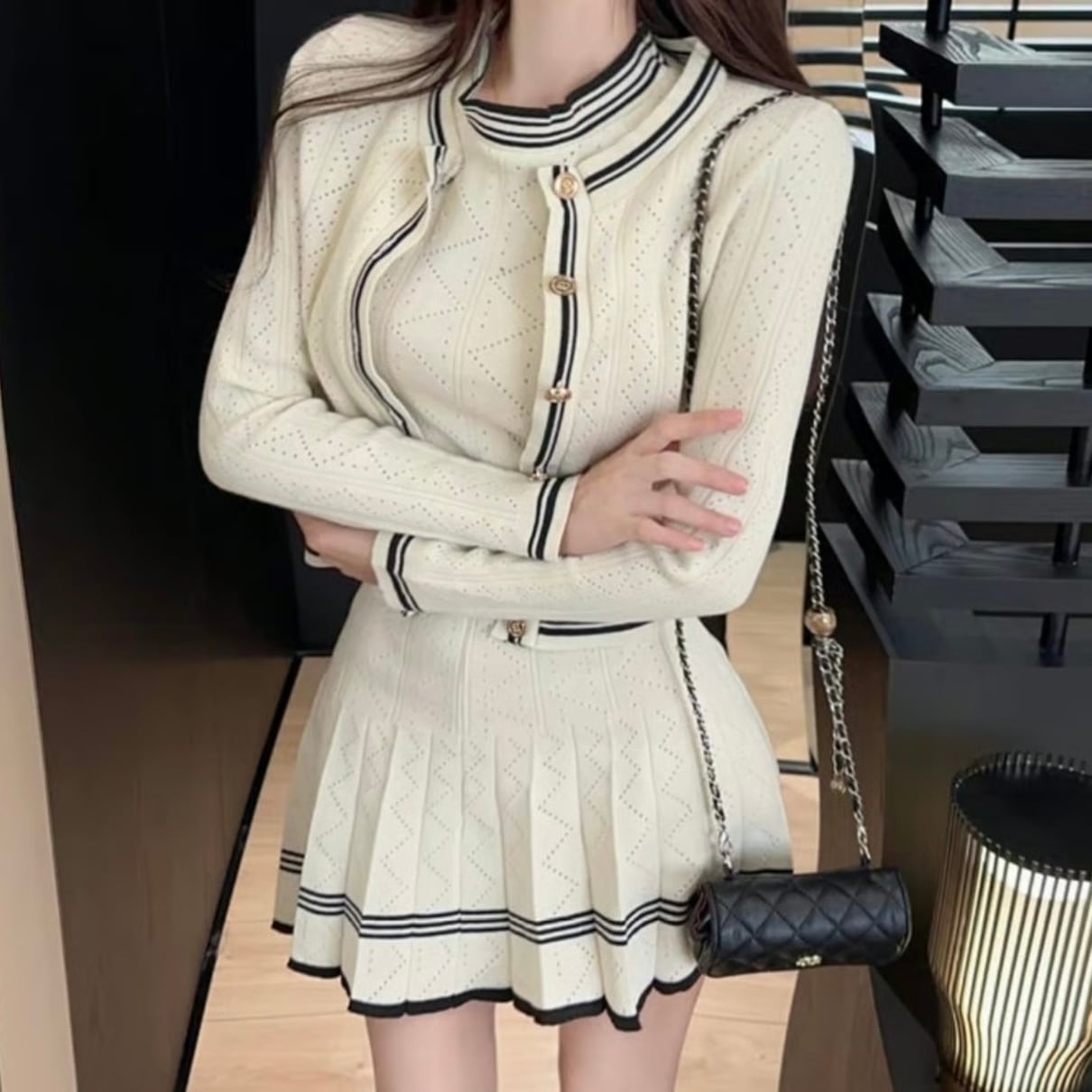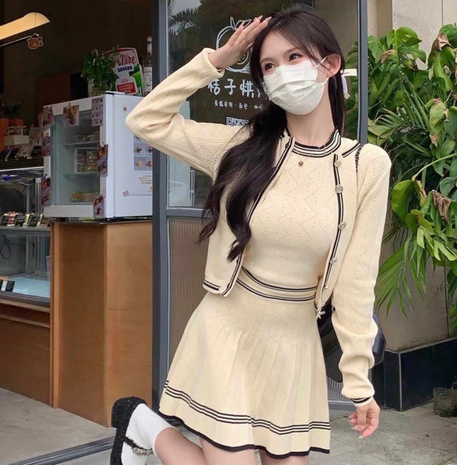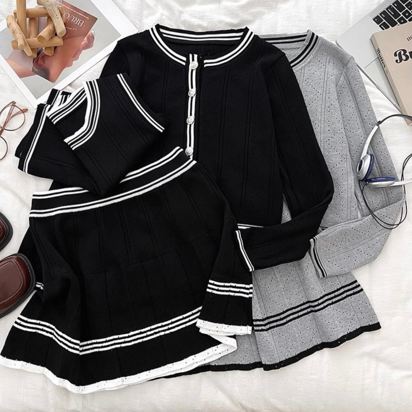 【set】ニットカーディガン×ニットノースリーブ×ニットミニスカート3色 HK0220