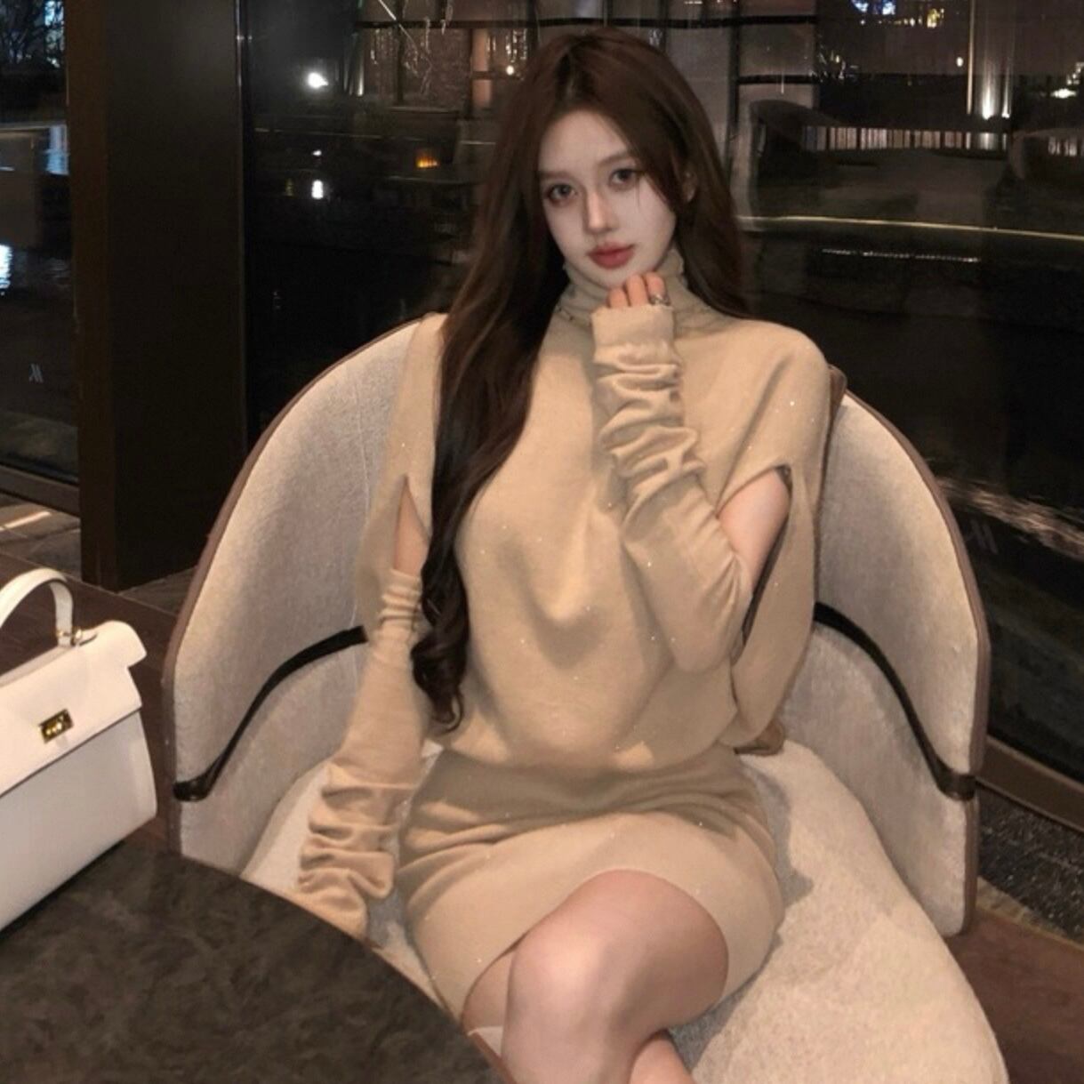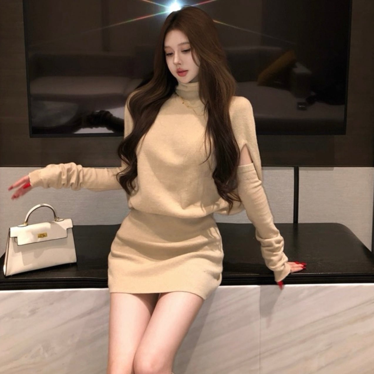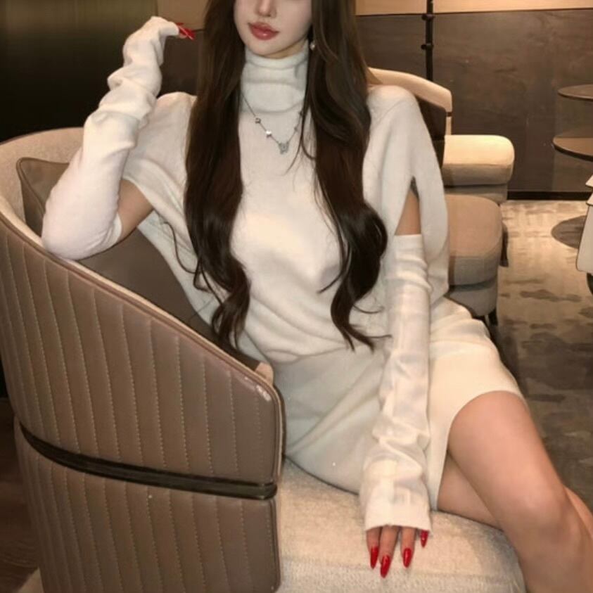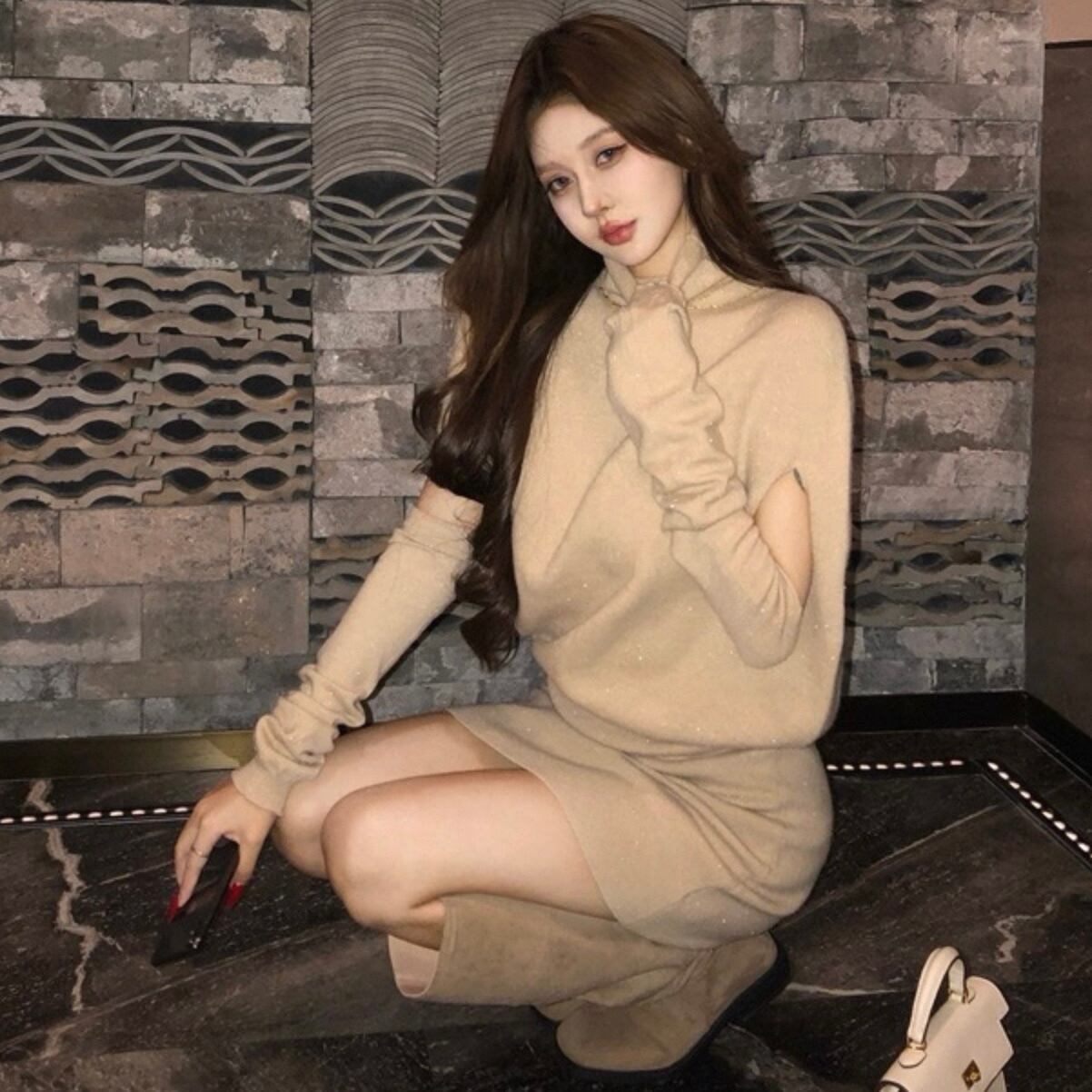 【dress】アームウォーム付きシンプルワンピース2色 HK0222