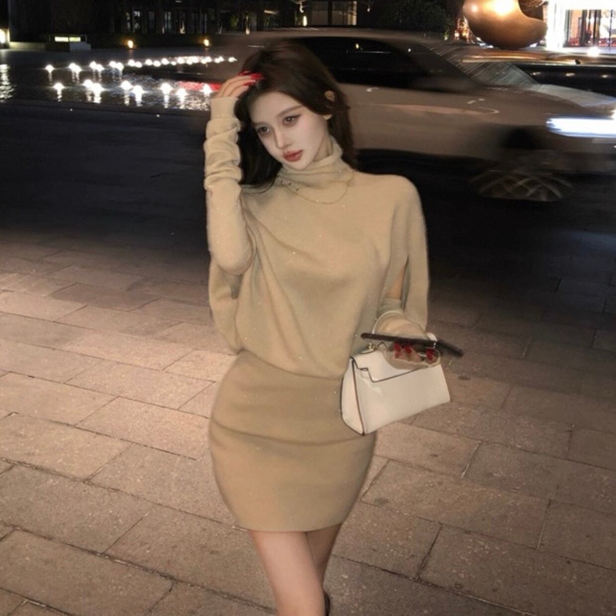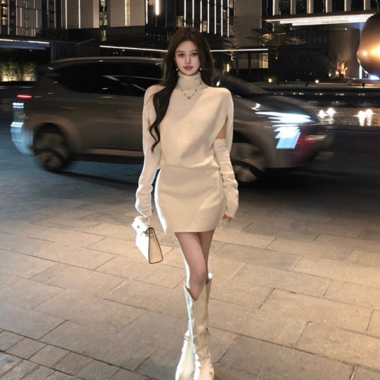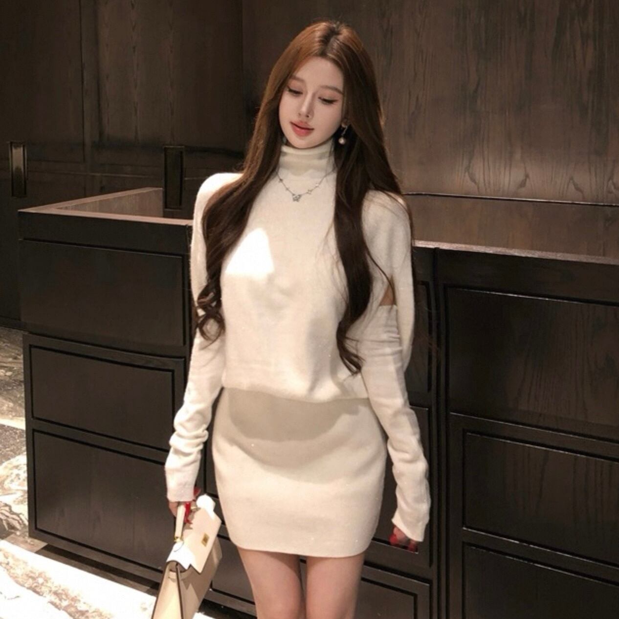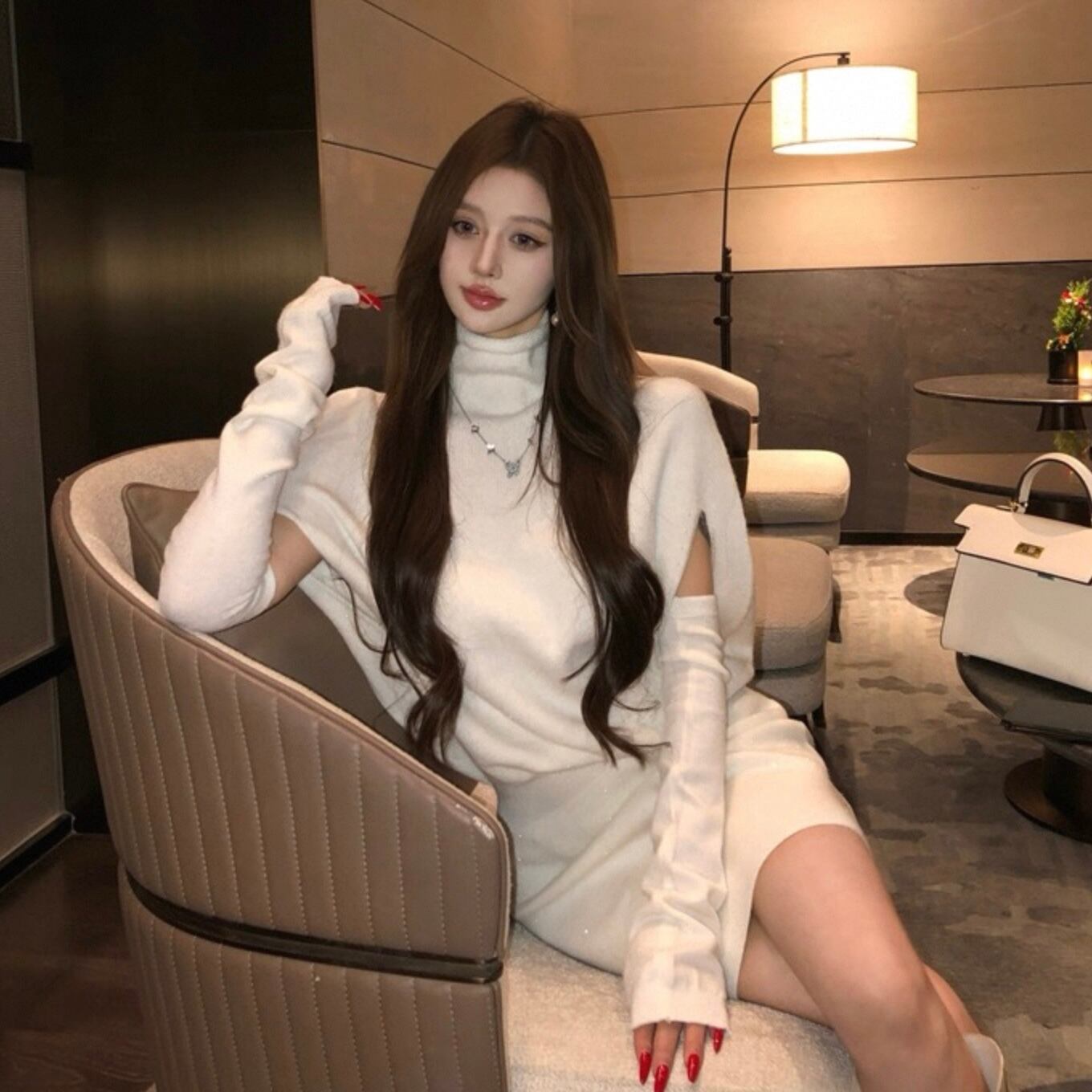 【dress】アームウォーム付きシンプルワンピース2色 HK0222