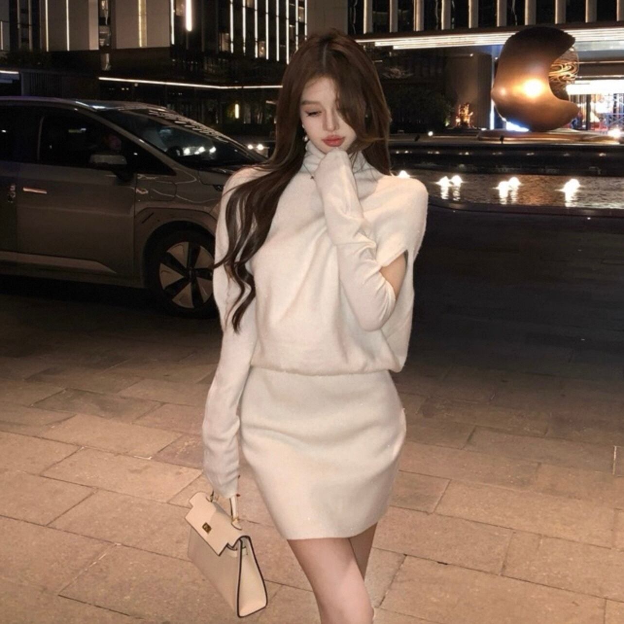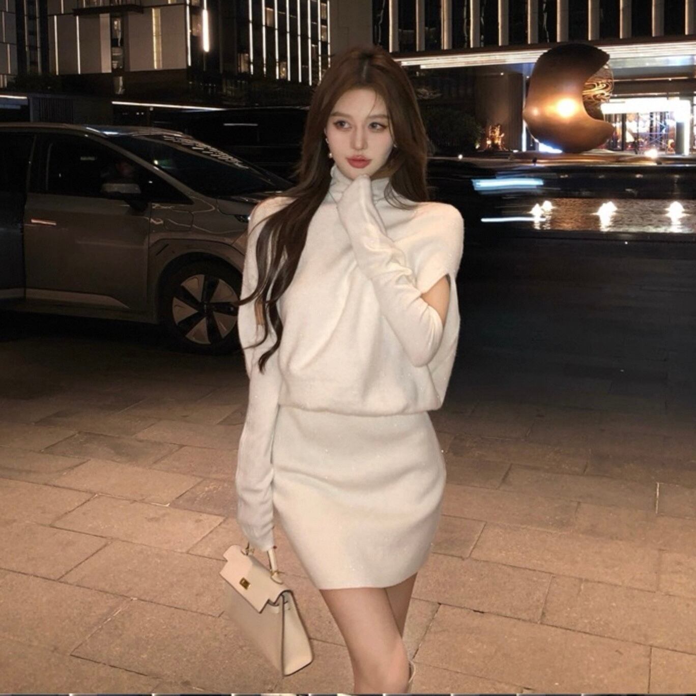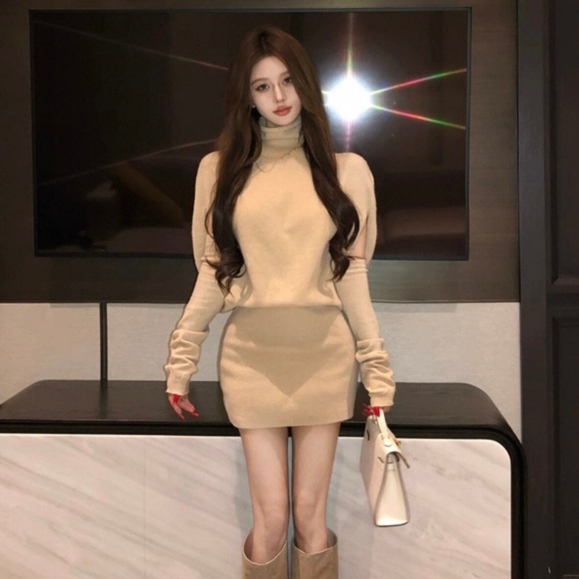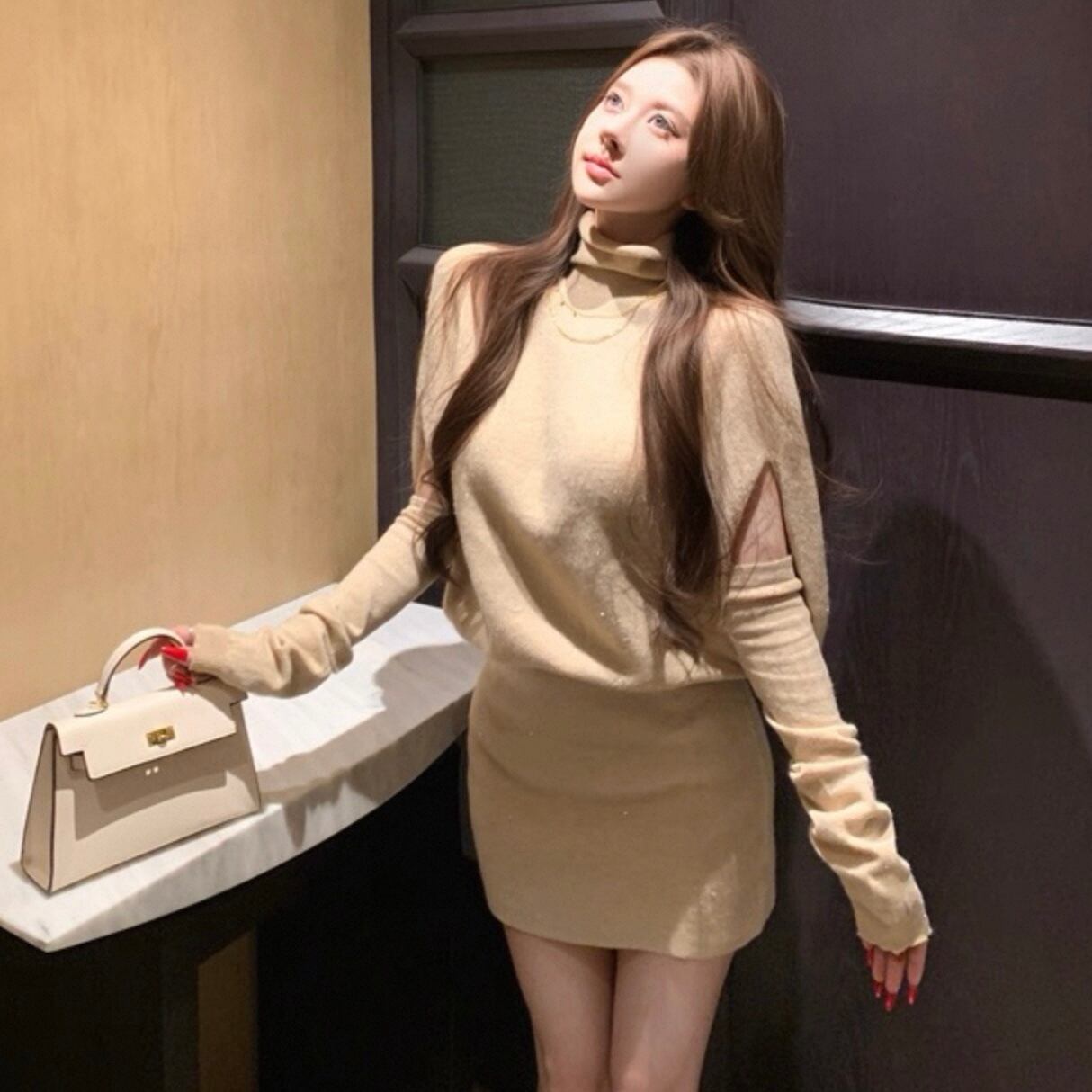 【dress】アームウォーム付きシンプルワンピース2色 HK0222