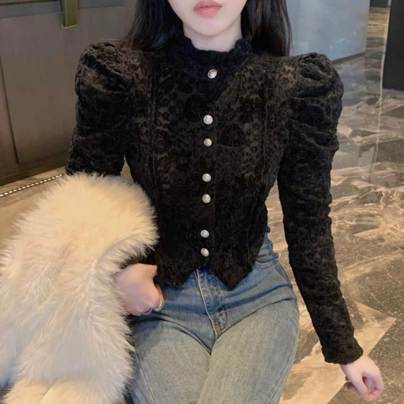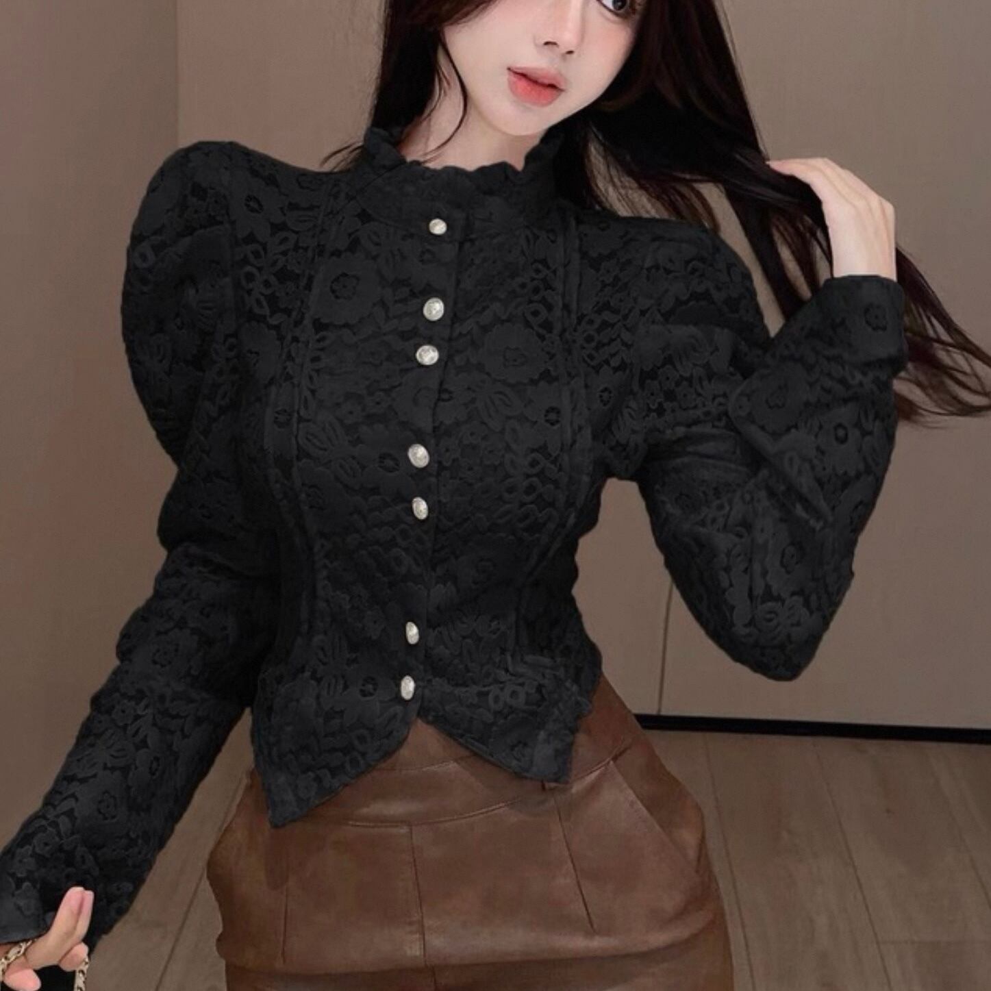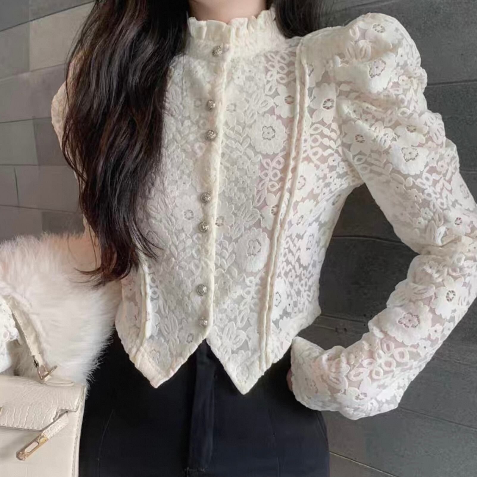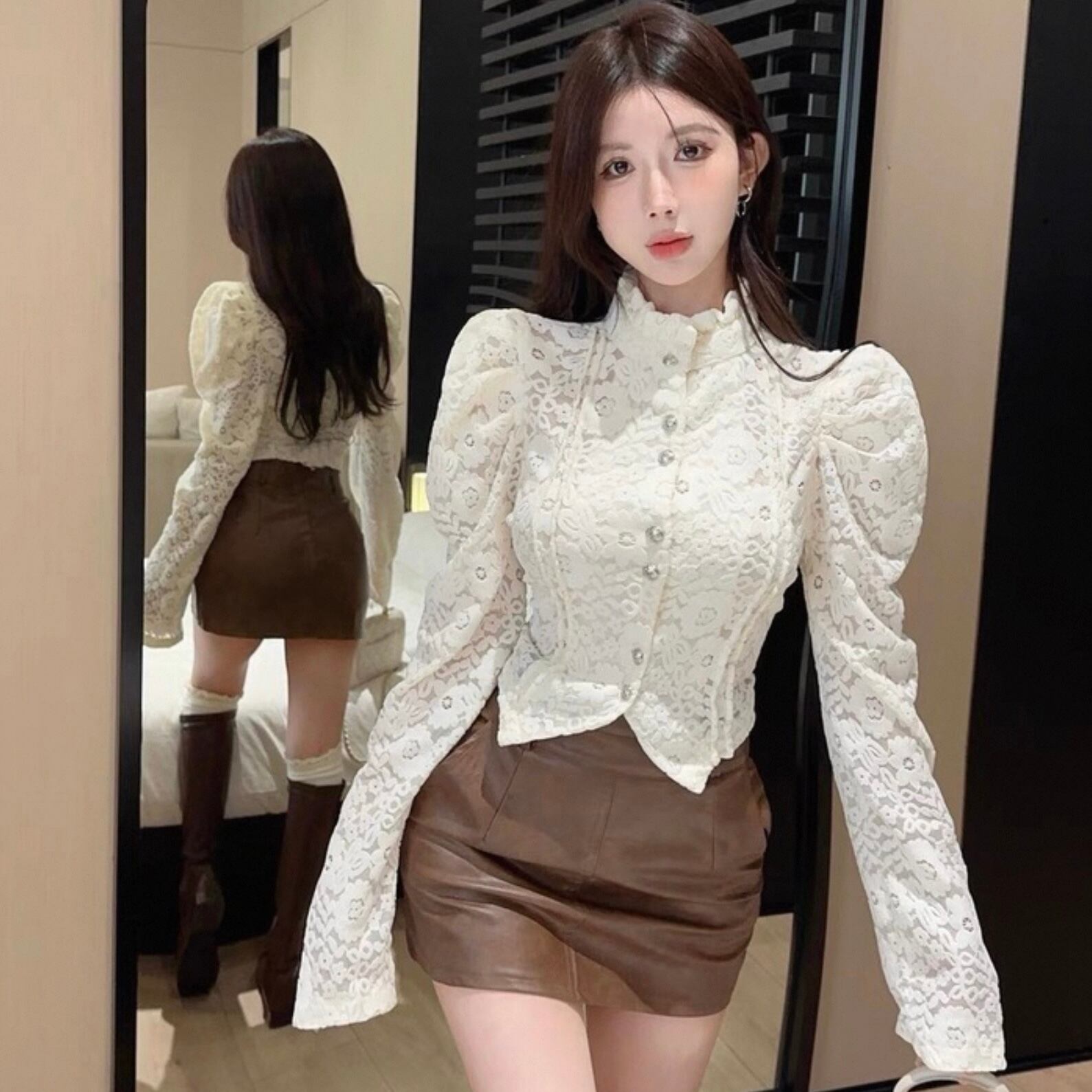 【tops】レースデザインタイトブラウス2色 HK0225